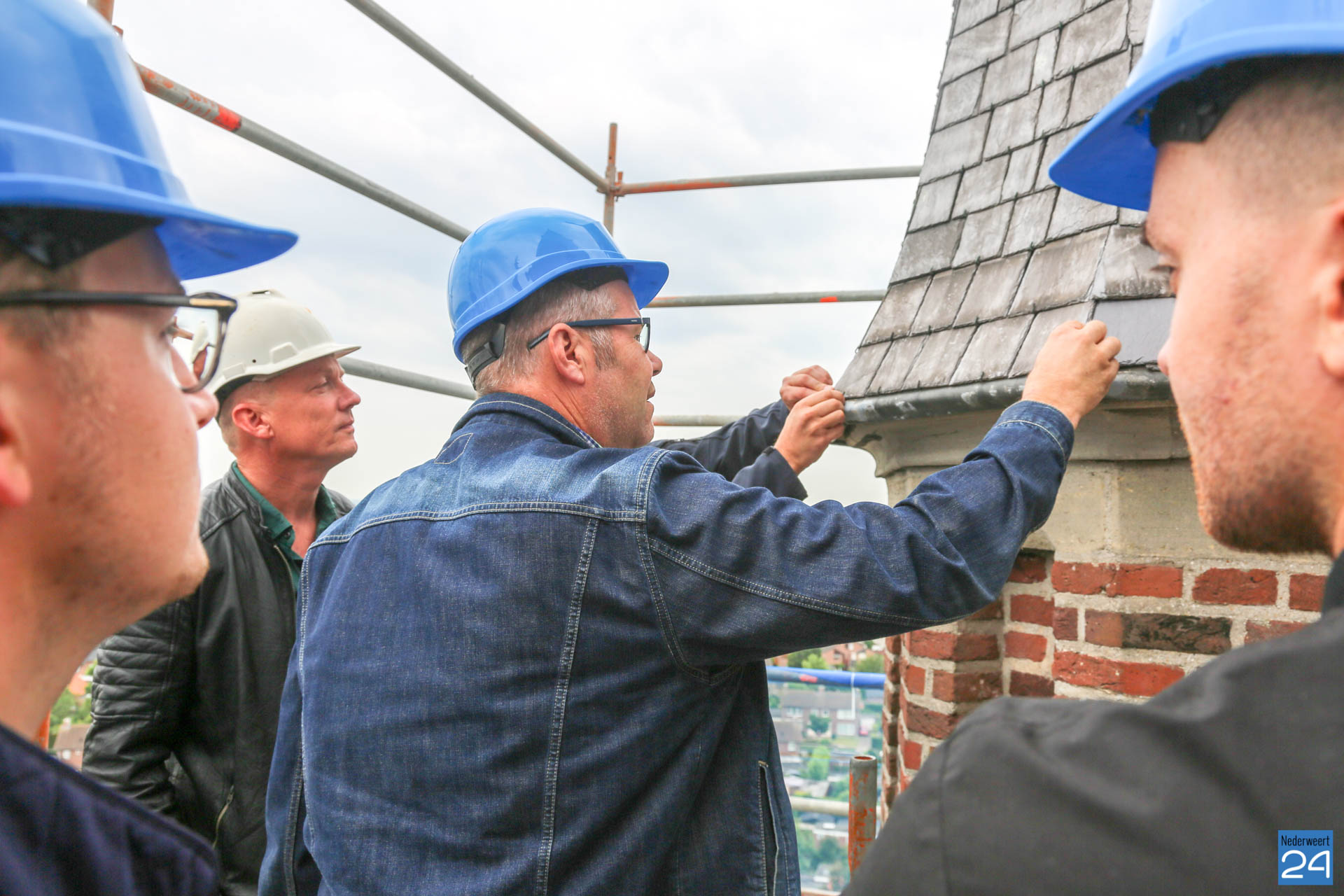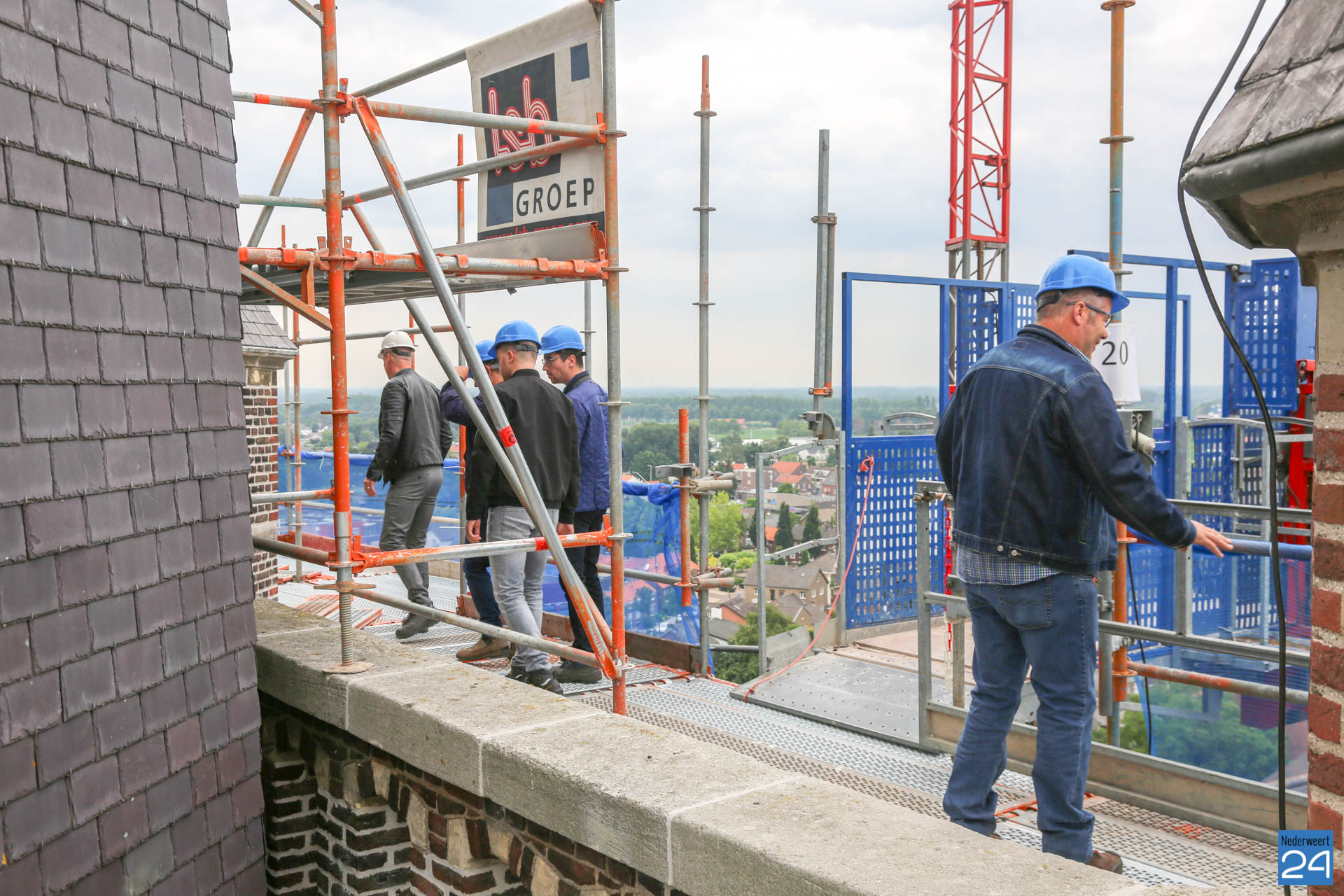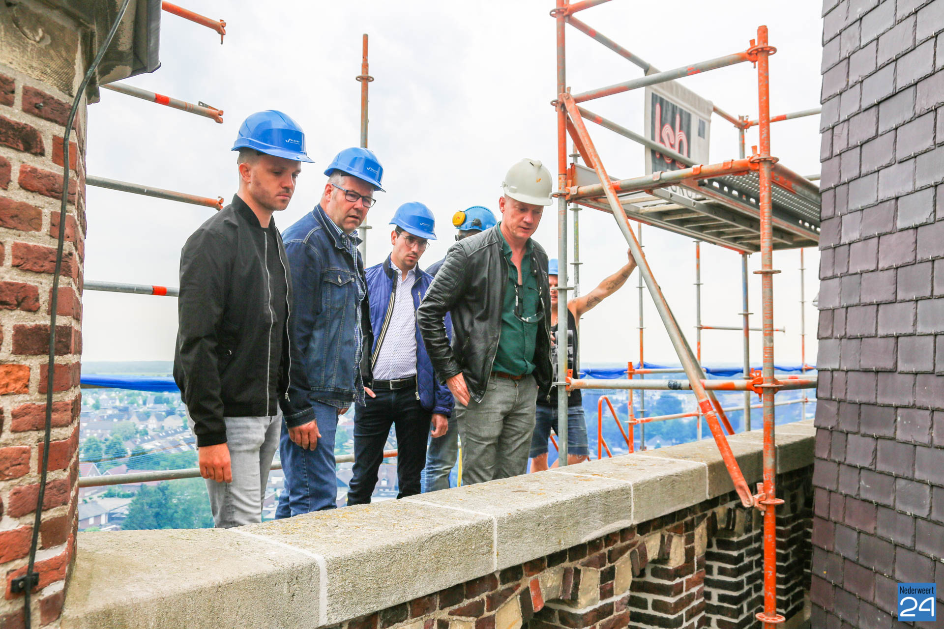 De restauratie van de Lambertustoren is nu halverwege en loopt voorspoedig. Vorige week donderdag, 11 juli, bezochten vertegenwoordigers van vier raadsfracties de toren. De raadsleden kregen van de gemeentelijke projectleider John Metselaars en uitvoerder Leon van Hoofwijk van bouwbedrijf Laudy, uitgebreid uitleg over de werkzaamheden. Ze waren onder de indruk van het werk dat verzet is en vonden dit een mooie manier om op de hoogte gebracht te worden van het restauratieproces.