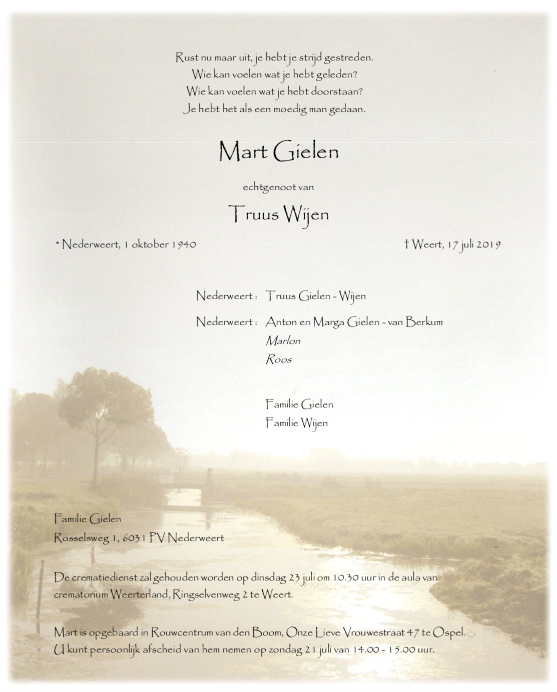 Overlijdensbericht: Mart Gielen