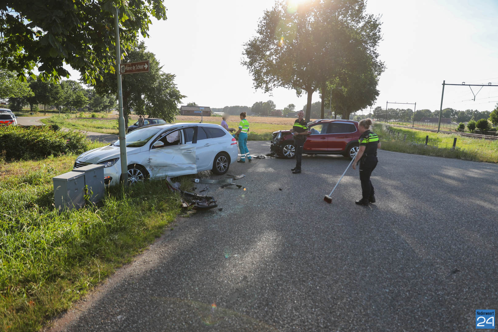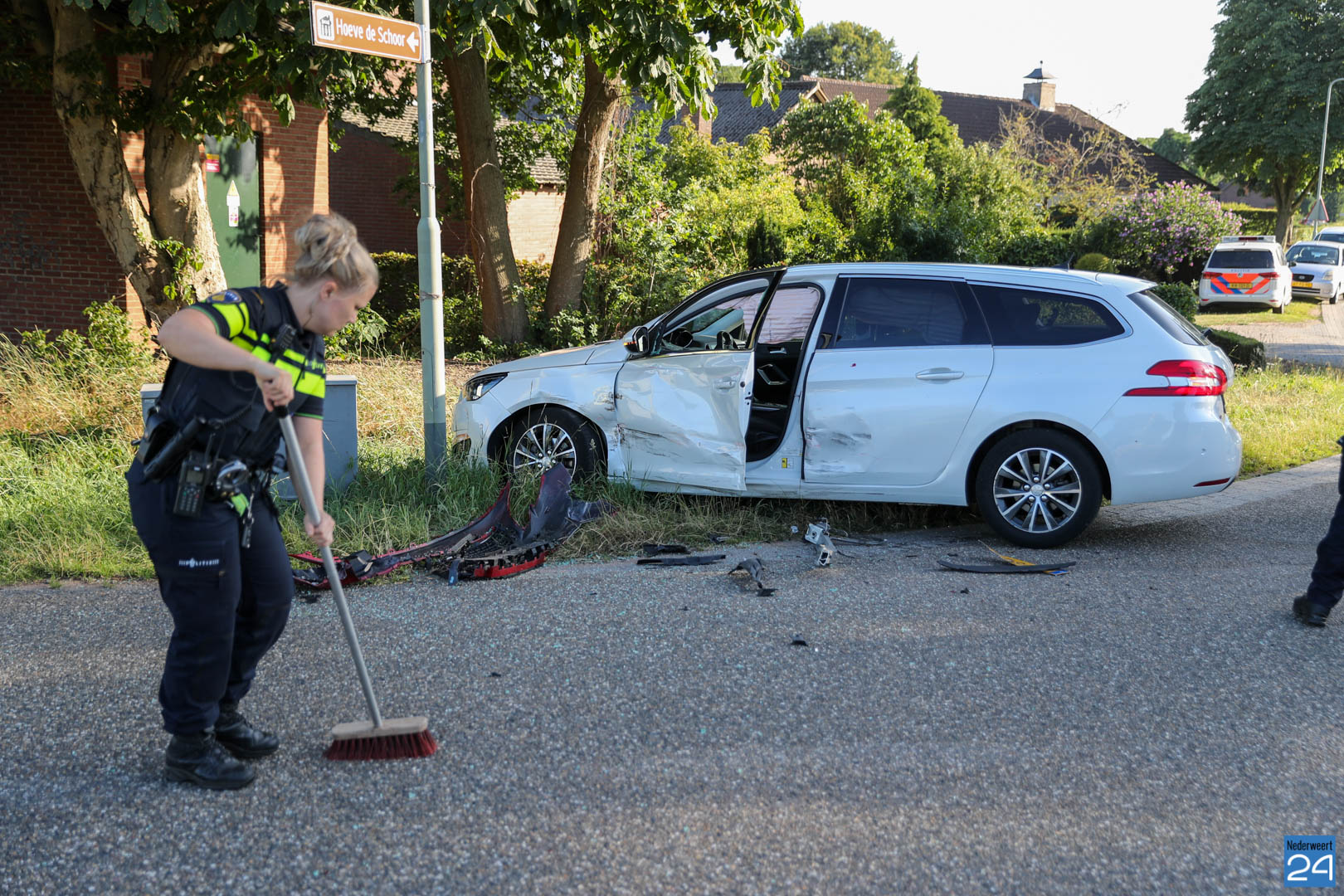 Een personenauto kwam vanuit de Schoorstraat, bij de spoorwegovergang, de Parallelweg op gereden. De bestuurder heeft daarbij waarschijnlijk de auto die van rechts kwam over het hoofd gezien. Twee personen zijn nagekeken door het ambulancepersoneel maar niemand hoefde mee naar het ziekenhuis.