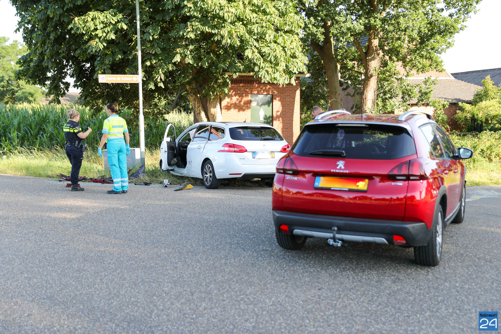 Maandagavond zijn twee personenauto’s met elkaar in botsing gekomen op de kruising Parallelweg – Schoorstraat in Baexem.