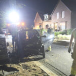Volgens omwonenden zou de personenauto met hoge snelheid door de straat zijn gereden. Een grote ravage is het gevolg. De geparkeerde personenauto is meters naar achteren geduwd door de klap.