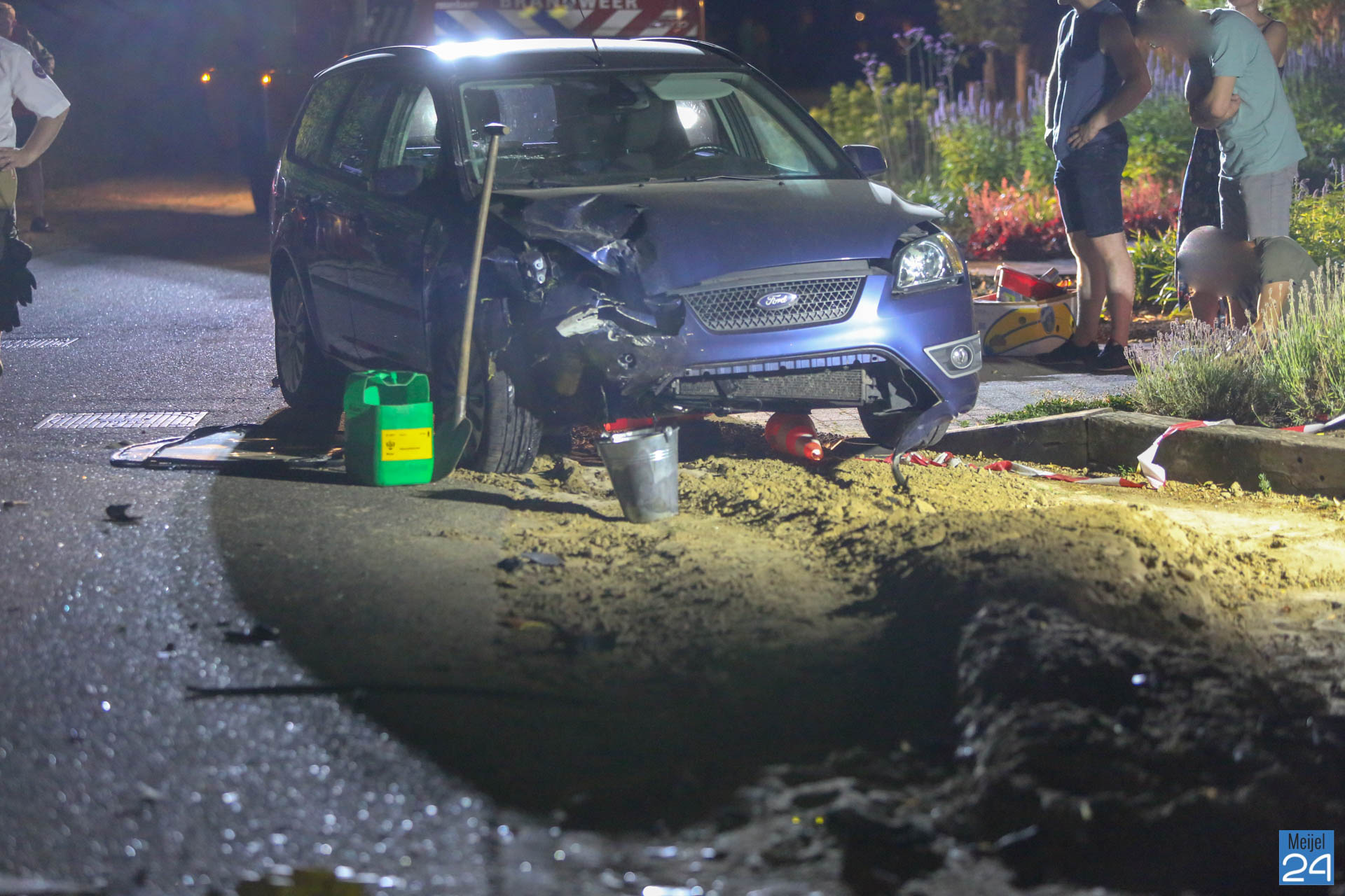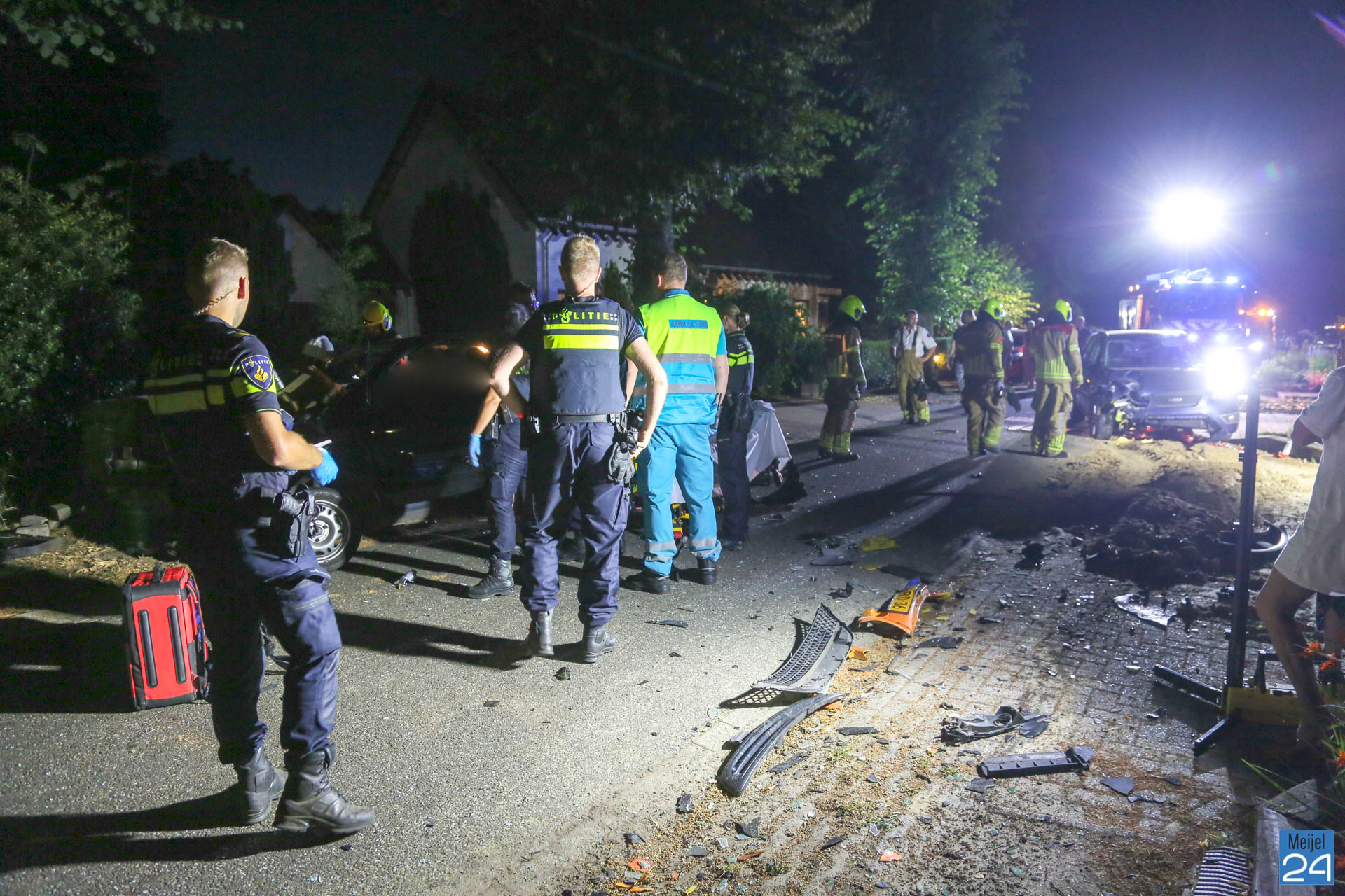 Volgens omwonenden zou de personenauto met hoge snelheid door de straat zijn gereden. Een grote ravage is het gevolg. De geparkeerde personenauto is meters naar achteren geduwd door de klap.