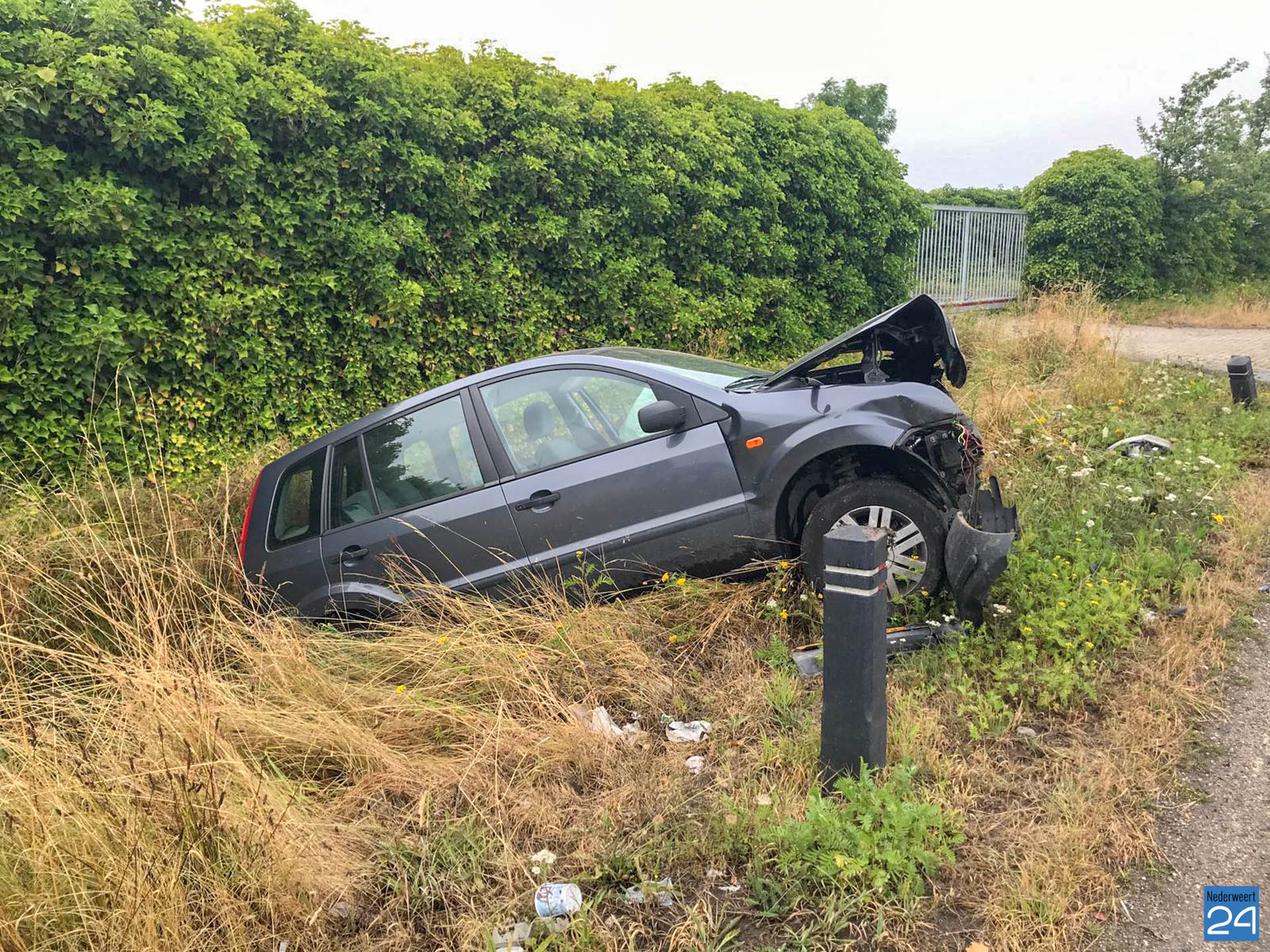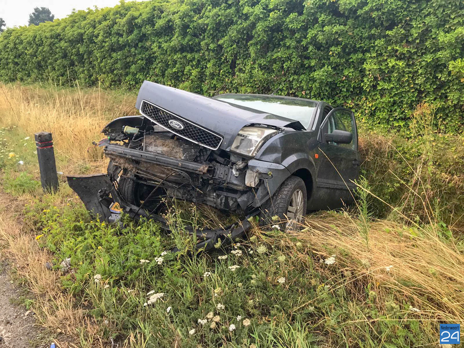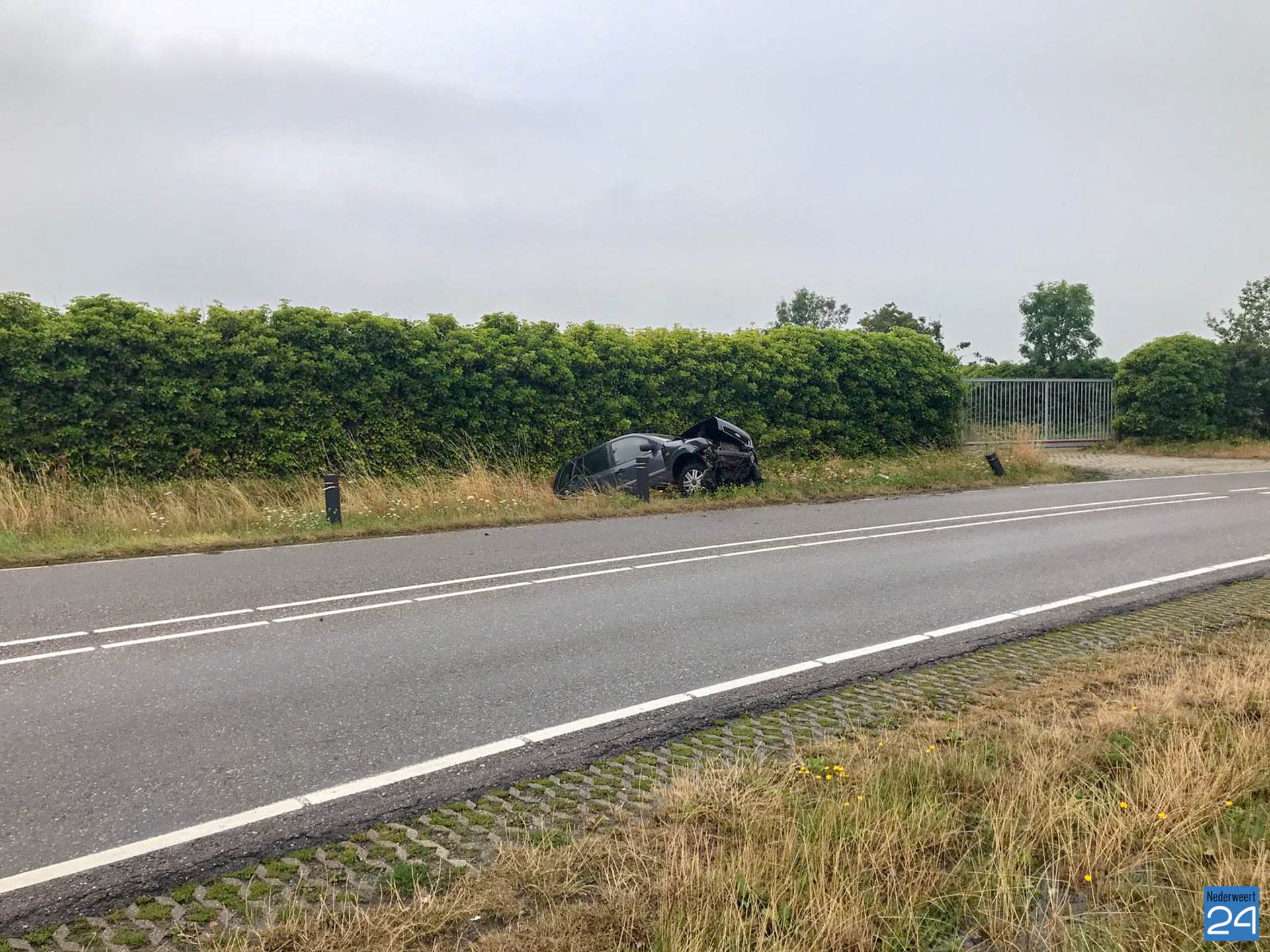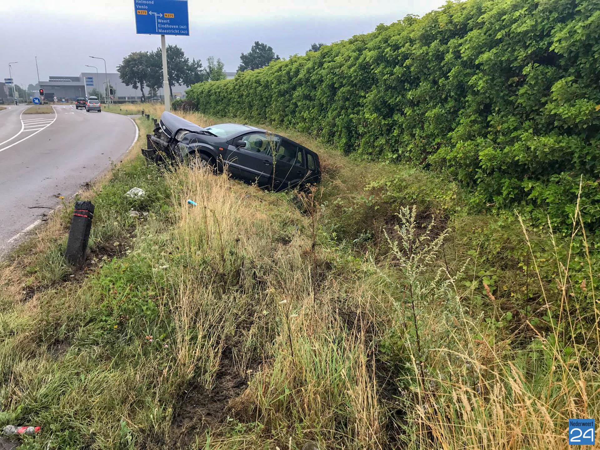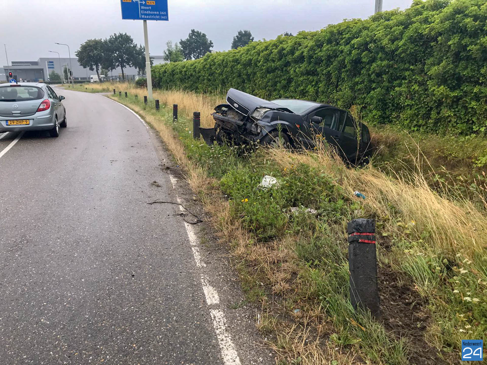 De vrouw raakte niet gewond, maar uit voorzorg heeft de politie een ambulance laten komen. De vrouw is ter plekke nagekeken. Haar auto raakte zwaar beschadigd door de klap. Ze kwam vanuit Nederweert gereden richting de stoplichten. Toen ze in de slip raakte botste ze eerst tegen een paaltje en belandde ze daarna in de sloot.