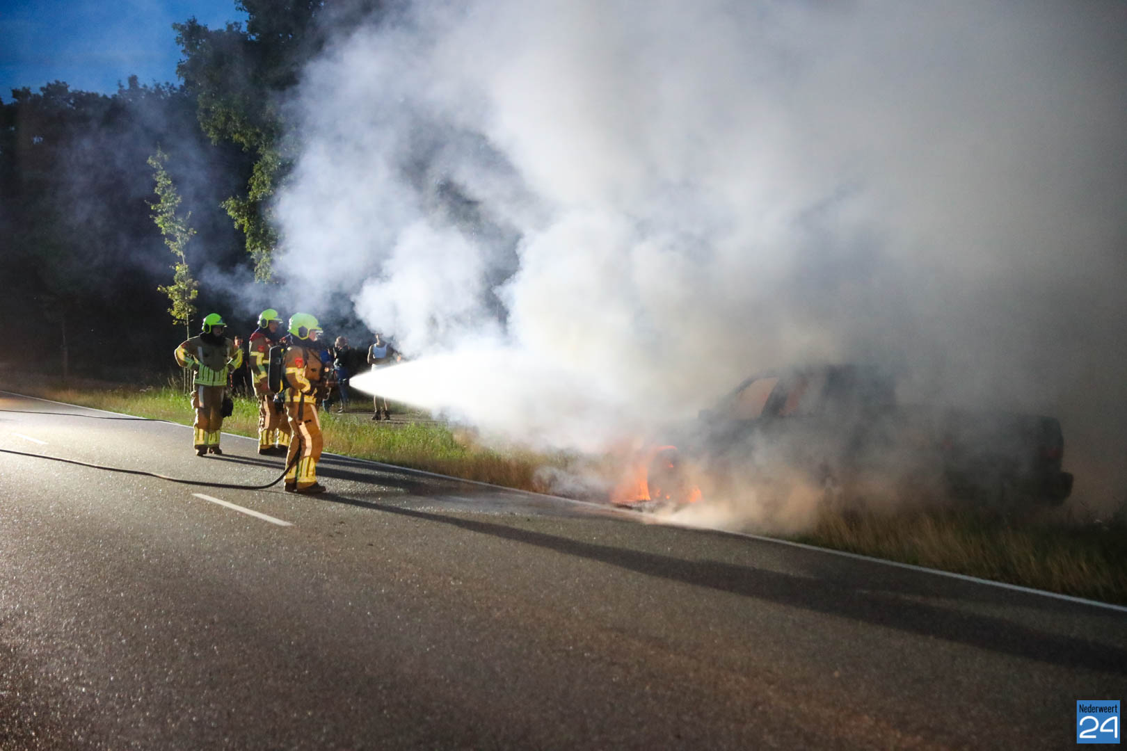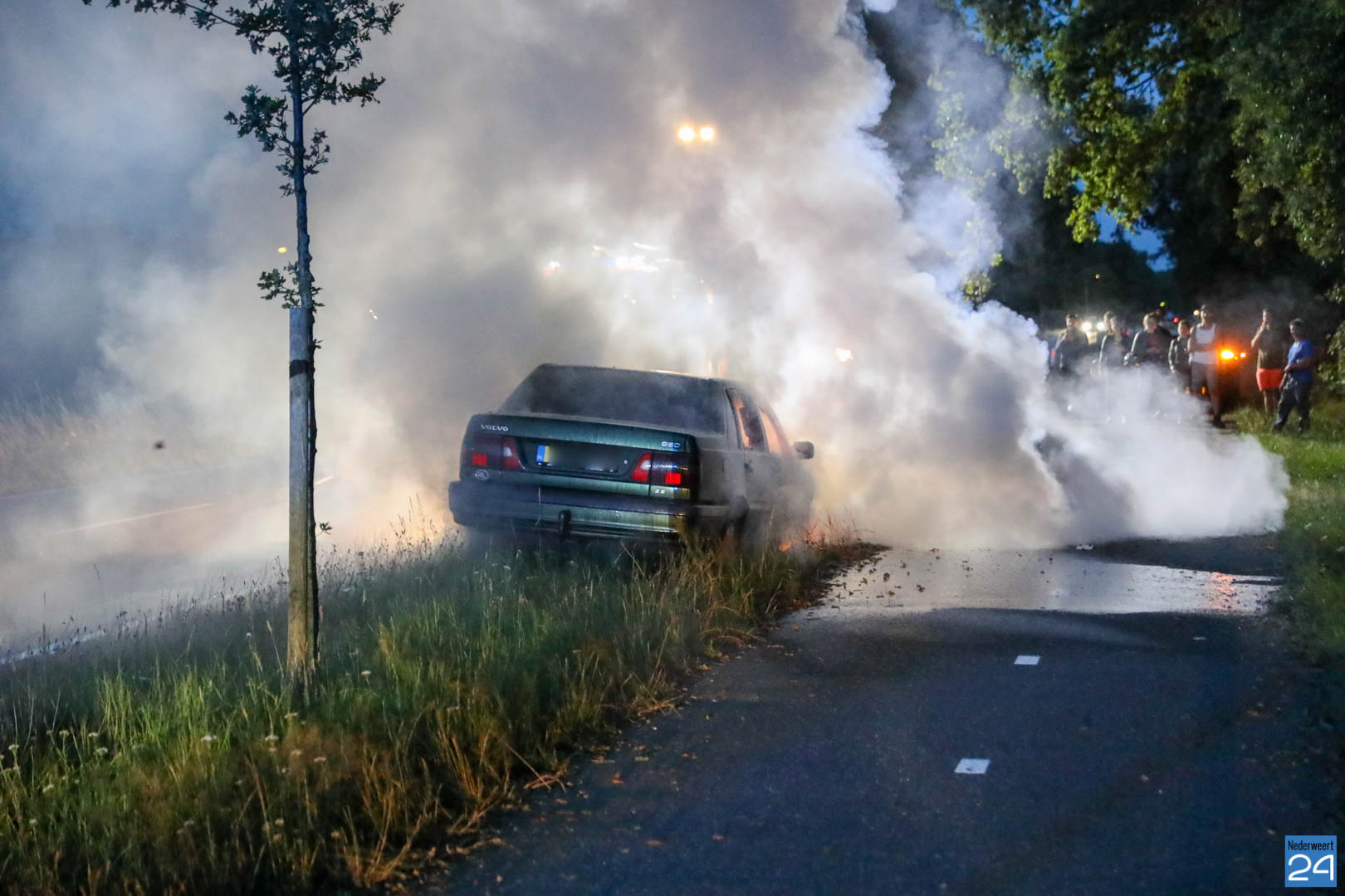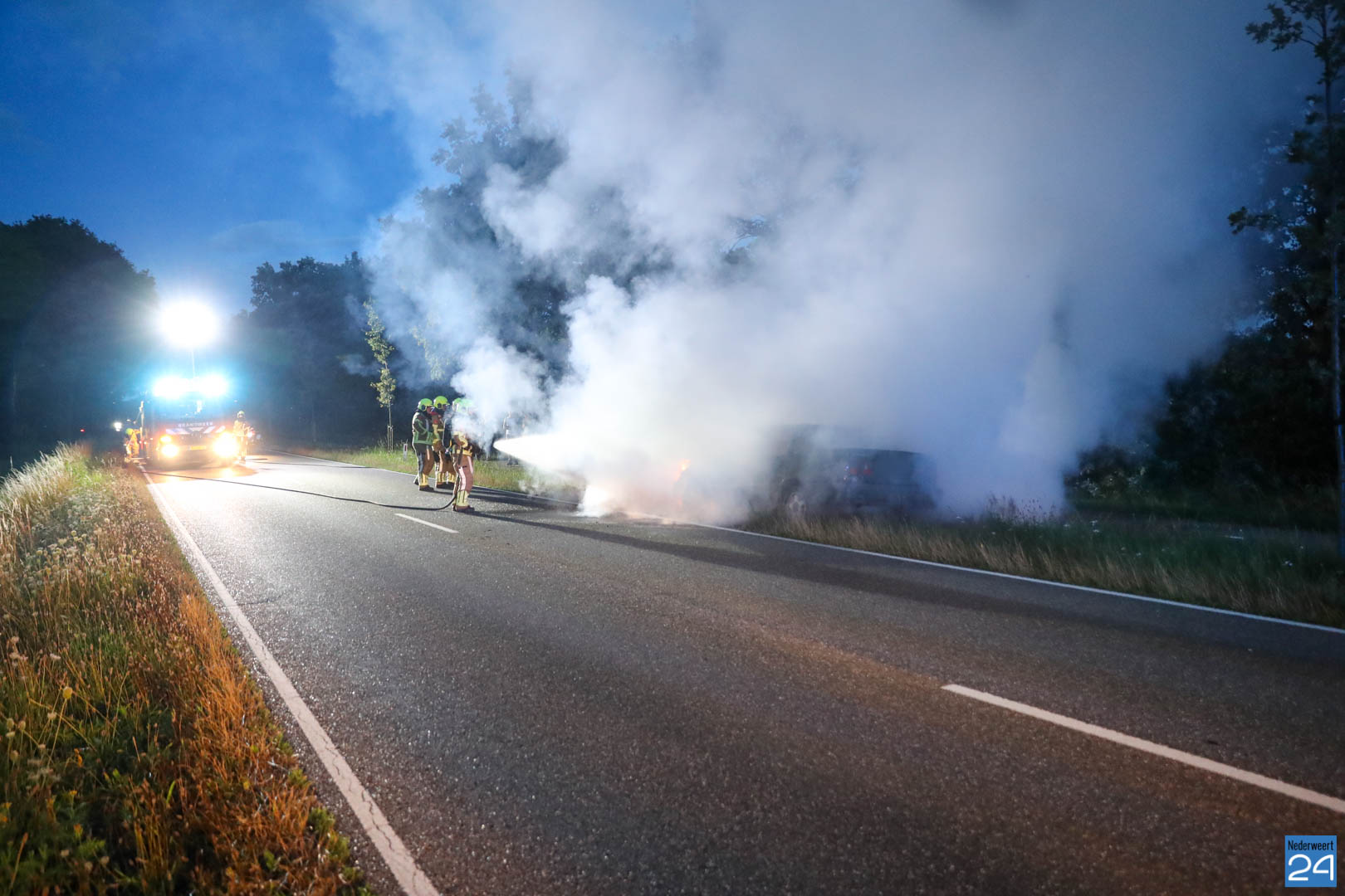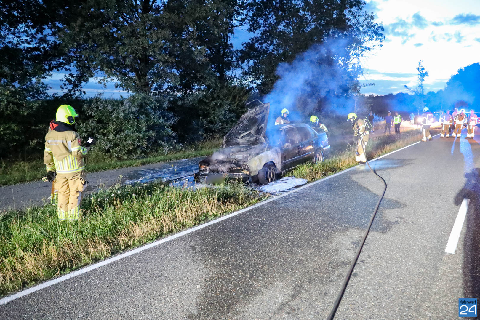 De bestuurder van de auto reed van Nederweert-Eind richting Leveroy toen hij net iets voorbij de Van Den Broekweg rook onder de motorkap vandaan zag komen. Nadat hij de auto in de berm parkeerde keek hij onder de motorkap en zag tot zijn schrik dat er benzine uit een slang spoot en op het motorblok terecht kwam. Hij bedacht zich geen moment, deed de motorkap dicht en belde de brandweer.