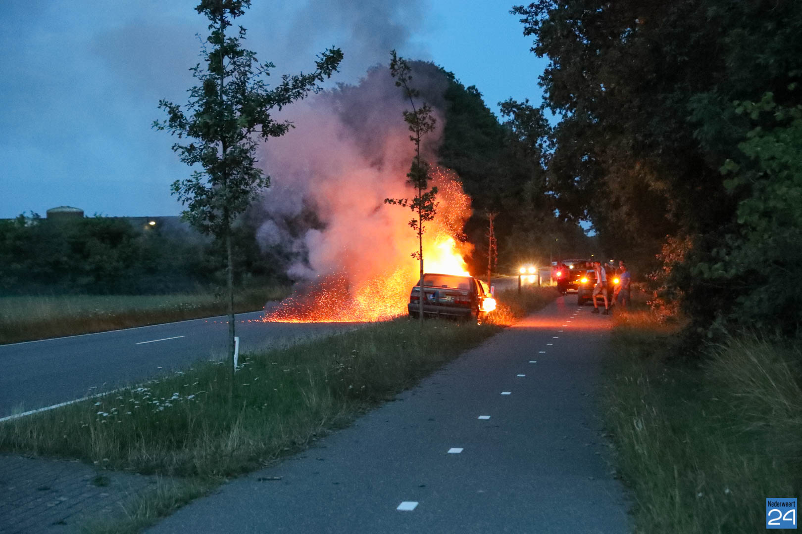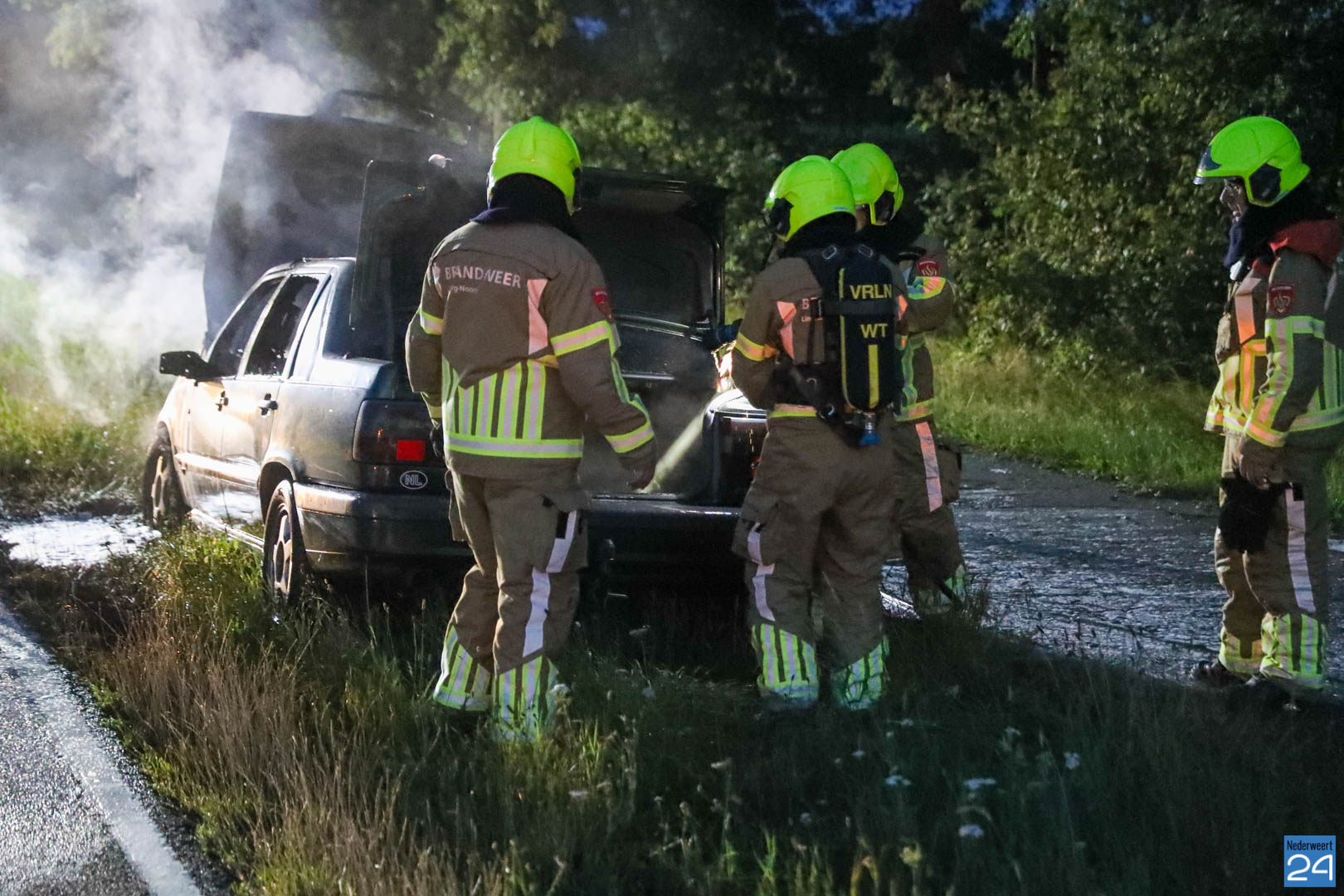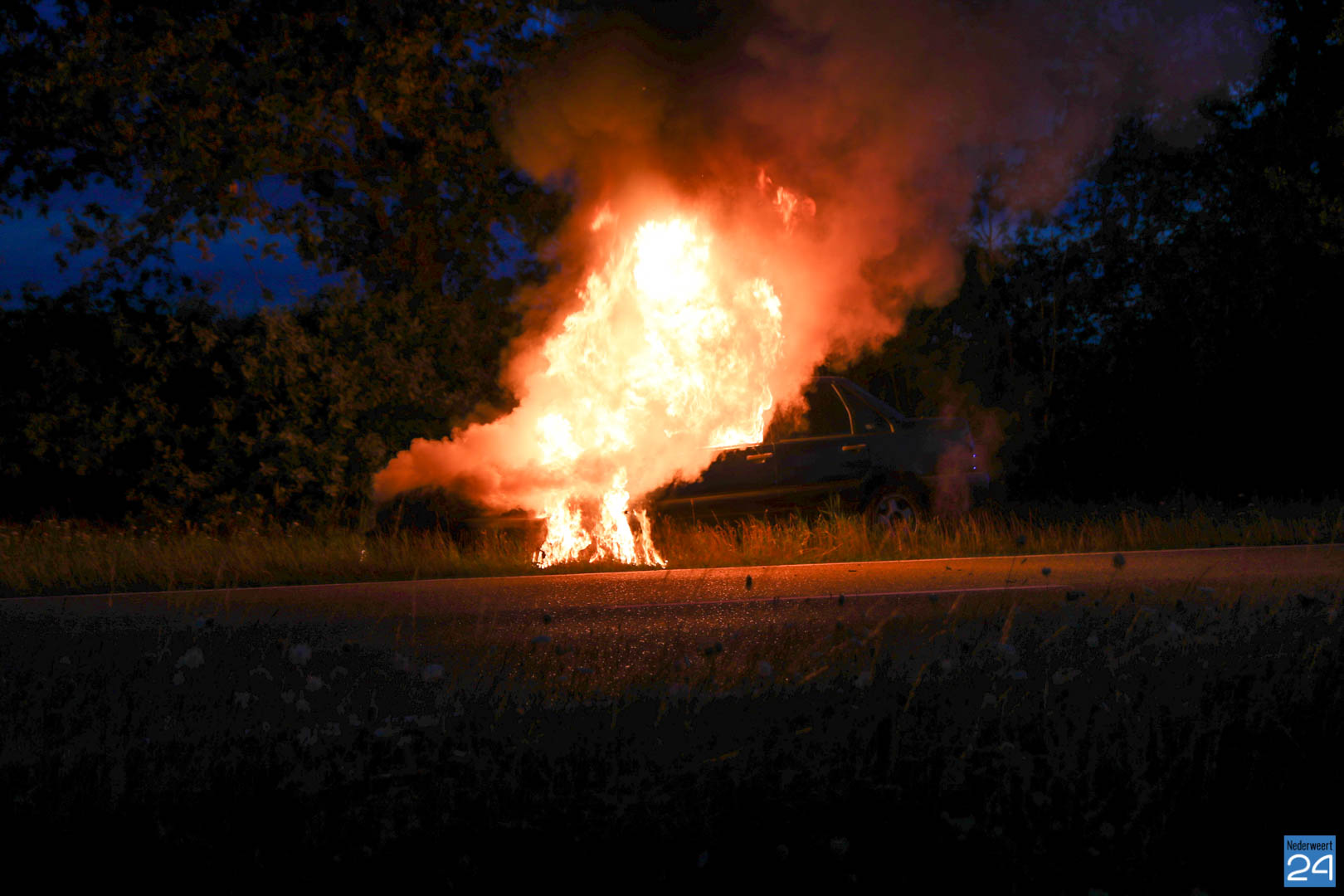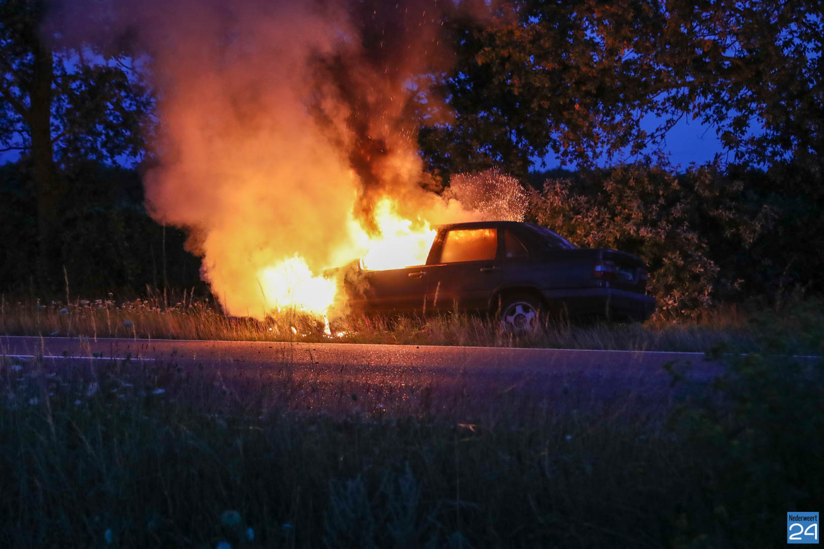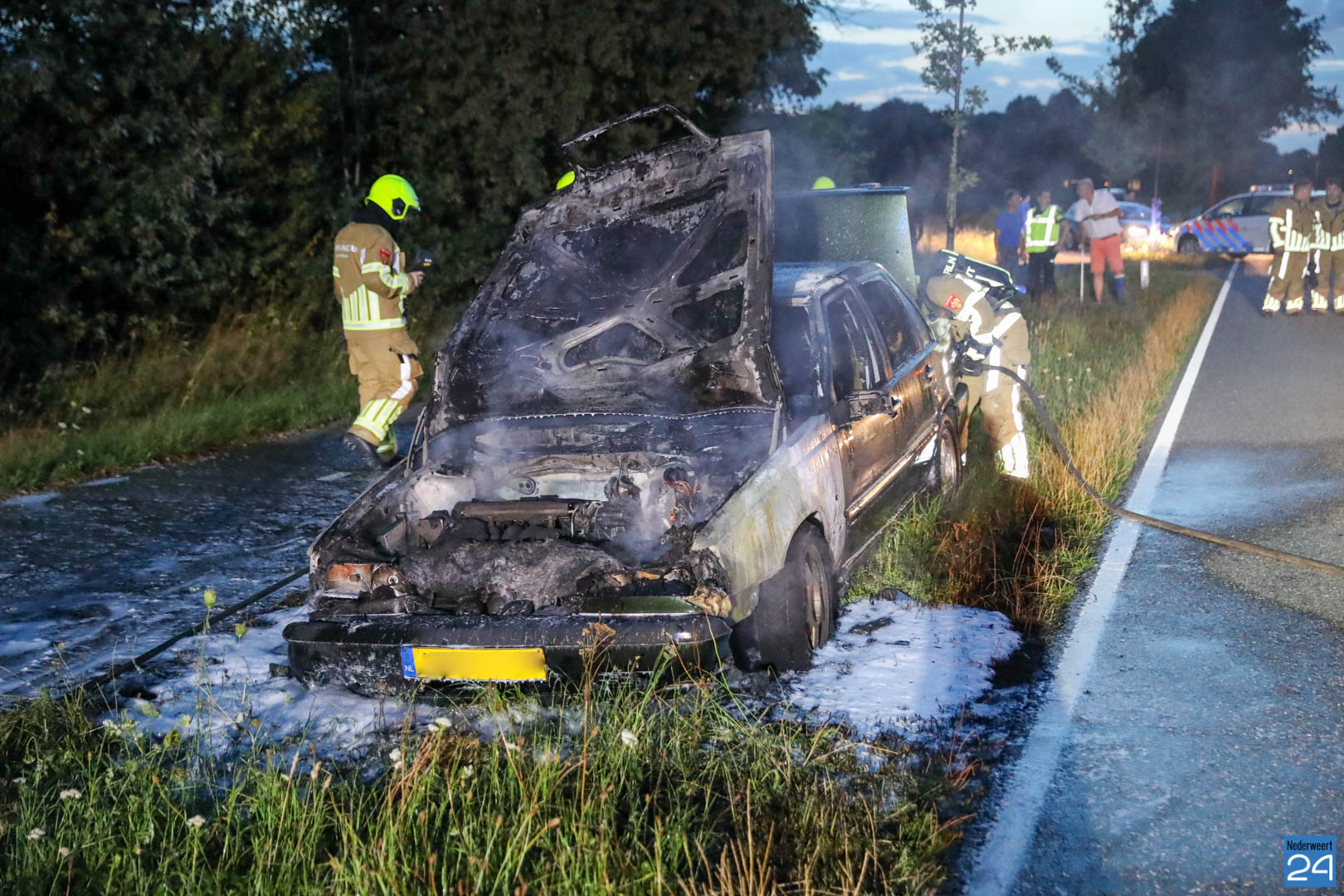 De bestuurder van de auto reed van Nederweert-Eind richting Leveroy toen hij net iets voorbij de Van Den Broekweg rook onder de motorkap vandaan zag komen. Nadat hij de auto in de berm parkeerde keek hij onder de motorkap en zag tot zijn schrik dat er benzine uit een slang spoot en op het motorblok terecht kwam. Hij bedacht zich geen moment, deed de motorkap dicht en belde de brandweer.
