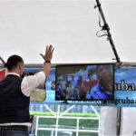 Om 16.00 uur werd er een pauze ingelast voor een toespraak van Mieke. Zij vertelde over het gedane werk van afgelopen jaar en het contact dat ze gehad hebben met NIRINT Shipping tijdens een bijeenkomst in Rotterdam. Deze rederij wil komende jaren drie keer een container verschepen naar Cuba voor enkele stichtingen voor Cuba hier uit Nederland. Ook ‘stichting Cuba Adelante‘ mag hiervan gebruikmaken. Tijdens de toespraak werd er al videocontact gelegd met Carlos, hun contactpersoon in Holguin. Hij had enkele kinderen uit een weeshuis meegenomen en ook mensen van zeer arme families waar de stichting al projecten had gedaan en nog gaat doen. Helaas was de verbinding van dien aard dat later toch alleen telefonisch contact mogelijk was. Het publiek was toch weer onder de indruk om die mensen rechtstreeks vanuit Cuba te zien, ook al was het beeld niet scherp.