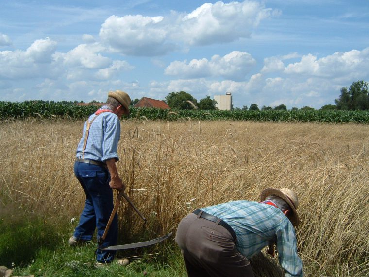 De boeren moeten hard werken om een eerlijke boterham te verdienen. Maar om die boterham te bakken is graan nodig dat vroeger na de oogst met een dorsvlegel uit de aren geslagen werd. Dat proces noemt men dorsen. Gezellig, mannen onder elkaar, in een mooi ritme om en om de vlegel hanteren. Dat spel kun je tegenwoordig nog maar op een beperkt aantal plekken zien. Uiteraard demonstreren echte vlegels het regelmatig voor de bezoekers in het leukste en spannendste openluchtmuseum in Nederweert Eind.