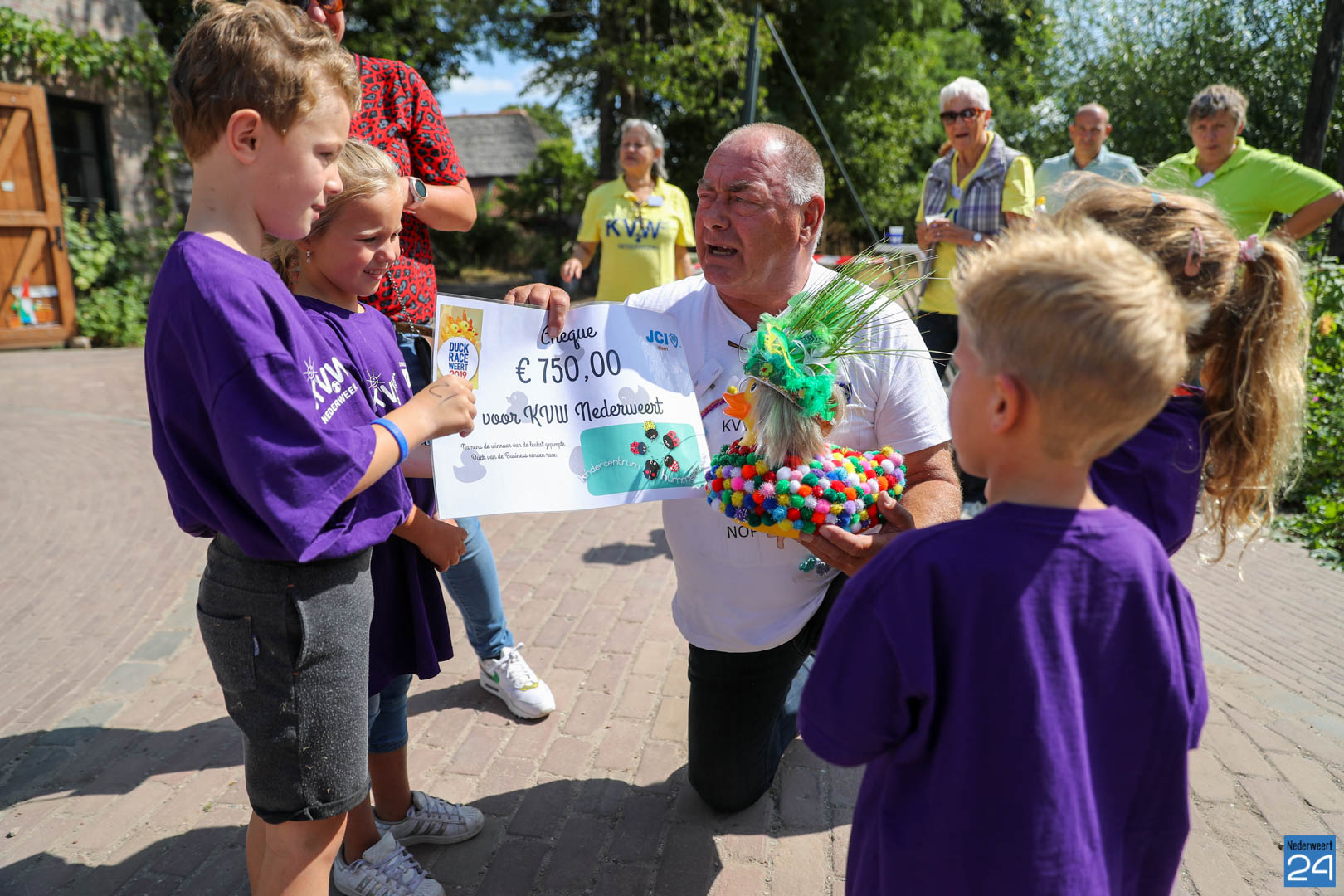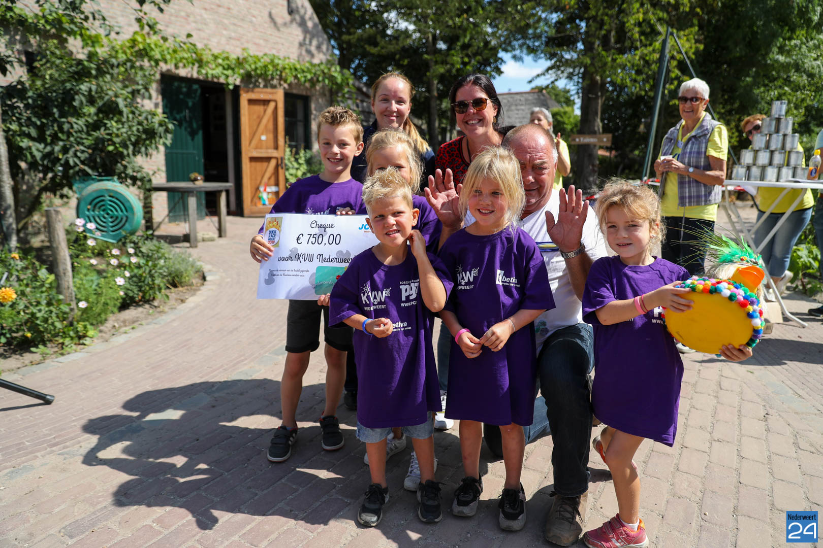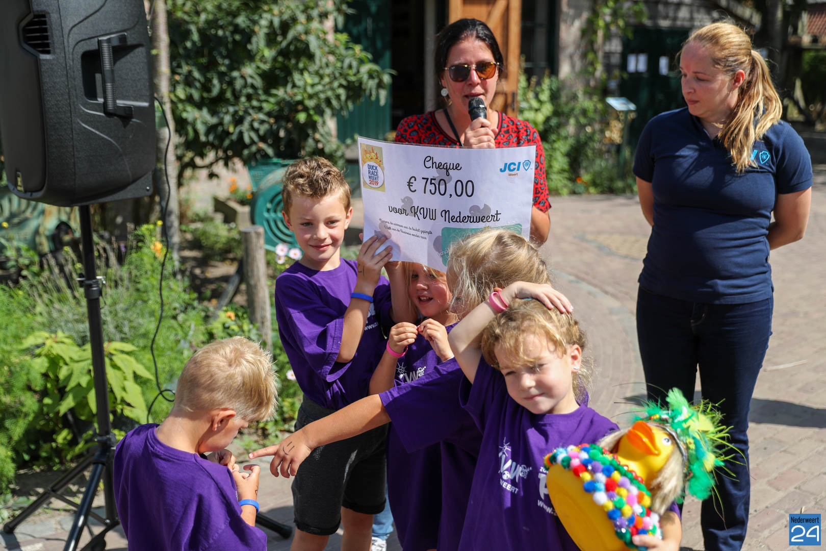 Kindercentrum Hummelhoeve overhandigde maandagmiddag een cheque van 750 euro aan de organisatie van KVW Nederweert. Marlous Verboogen nam op 8 juni als onderneemster in de kinderopvang deel aan de Business Edition van de Duck Race en won de originaliteit prijs. De race werd georganiseerd door de Junior Kamer Weert.