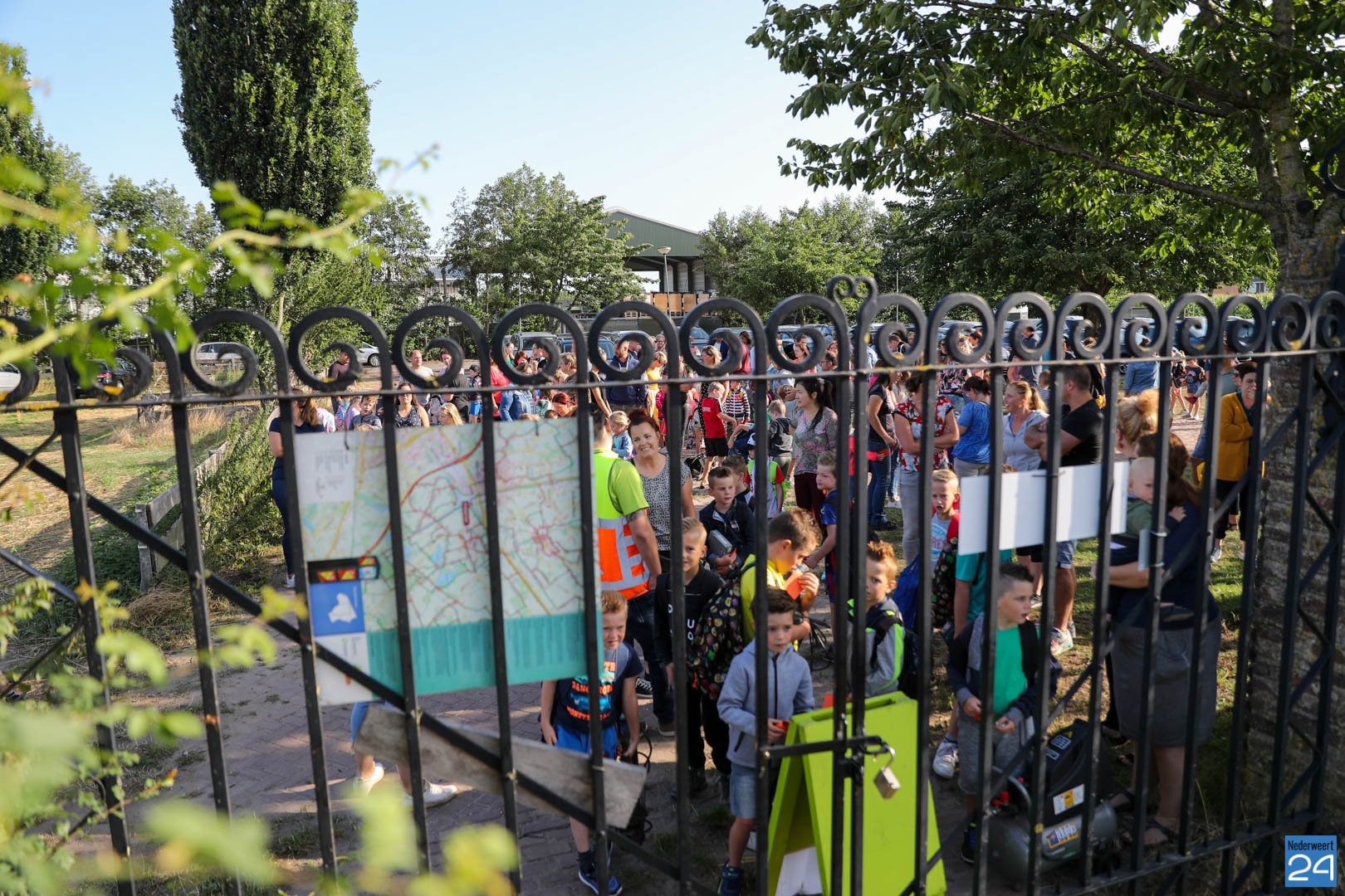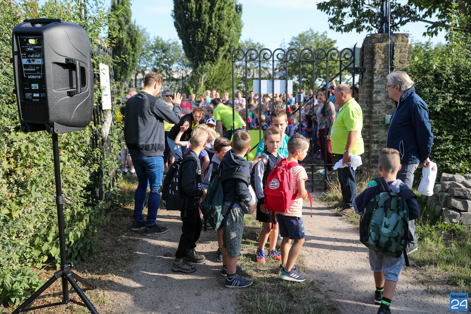 Tjeu Stultiens én wethouder Frank Voss van de gemeente Nederweert verzorgden de opening door de poort van Eynderhoof te openen. Daarna werden de groepjes gevormd en gingen de kinderen aan de slag met hun oude, kapotte, apparaten.