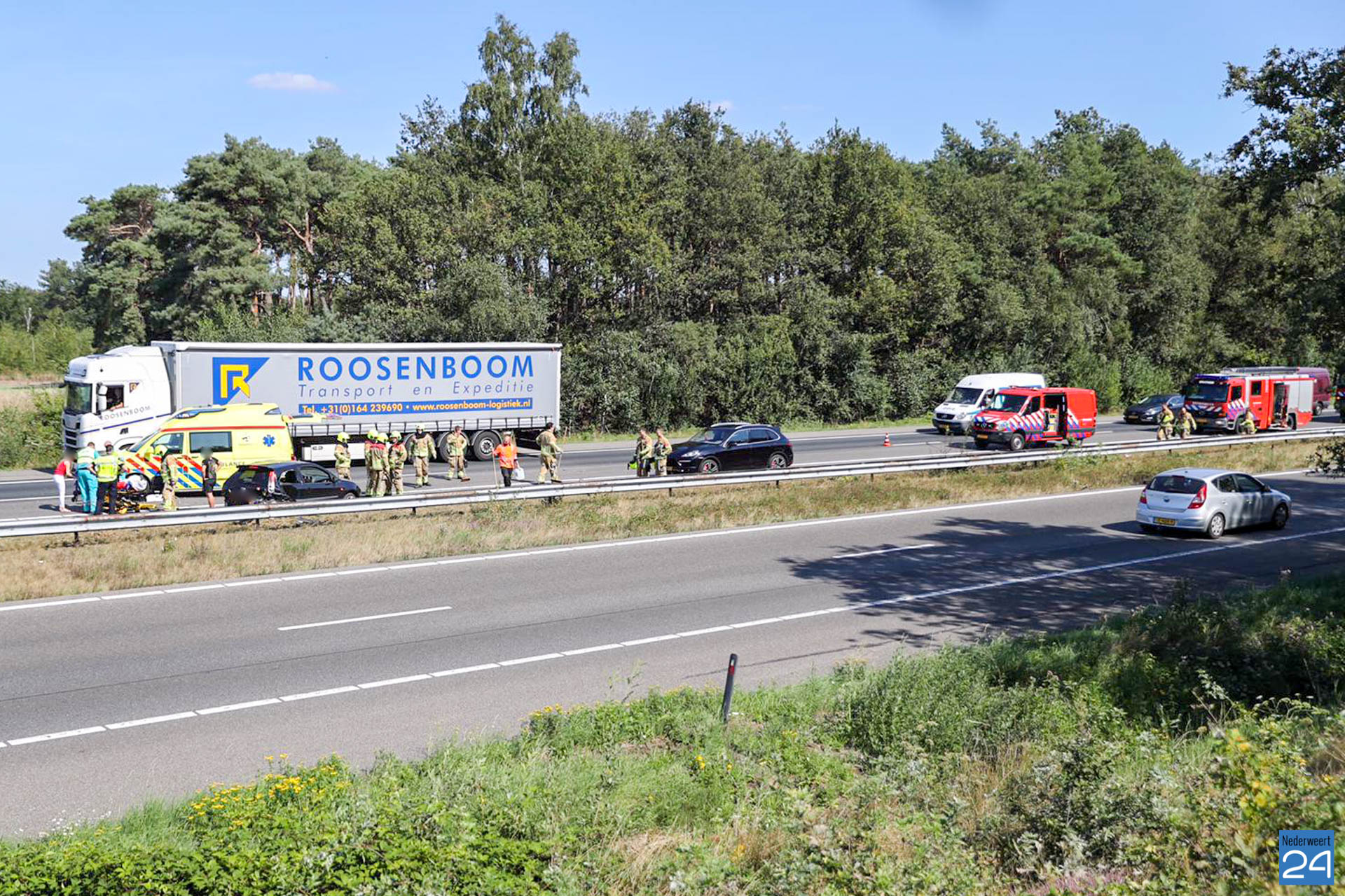 Politie, ambulances en ook de brandweer werden gealarmeerd. Eén van de inzittenden is per ambulance met onbekende verwondingen overgebracht naar het ziekenhuis. Door het ongeval ontstond er een flinke file.