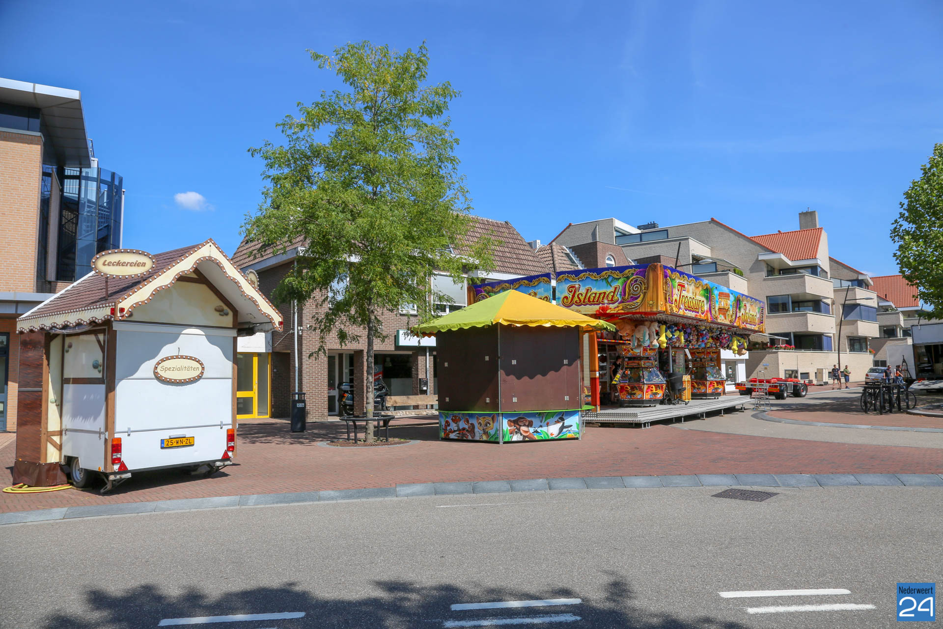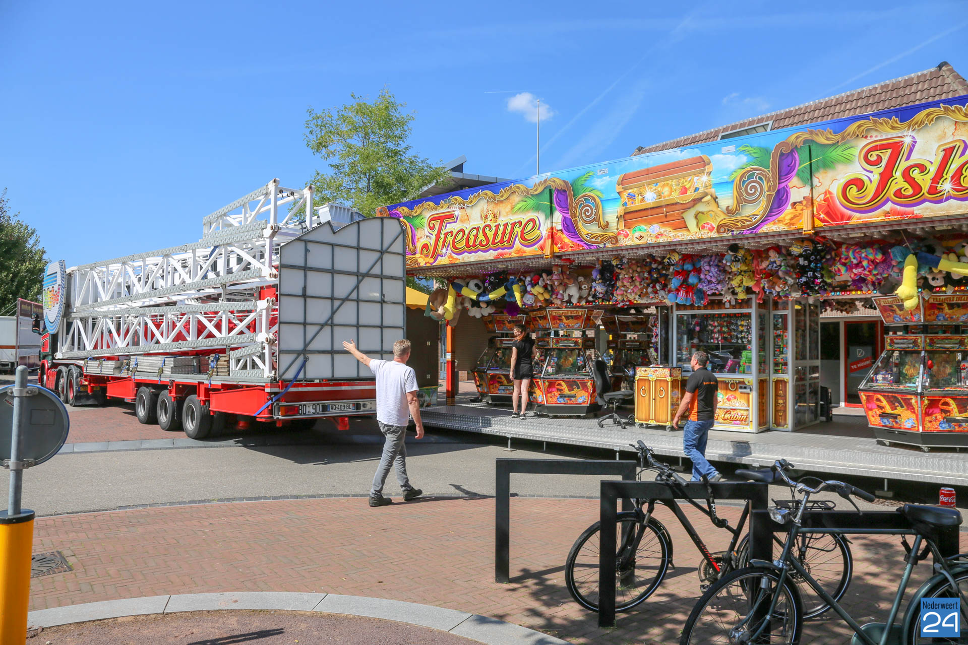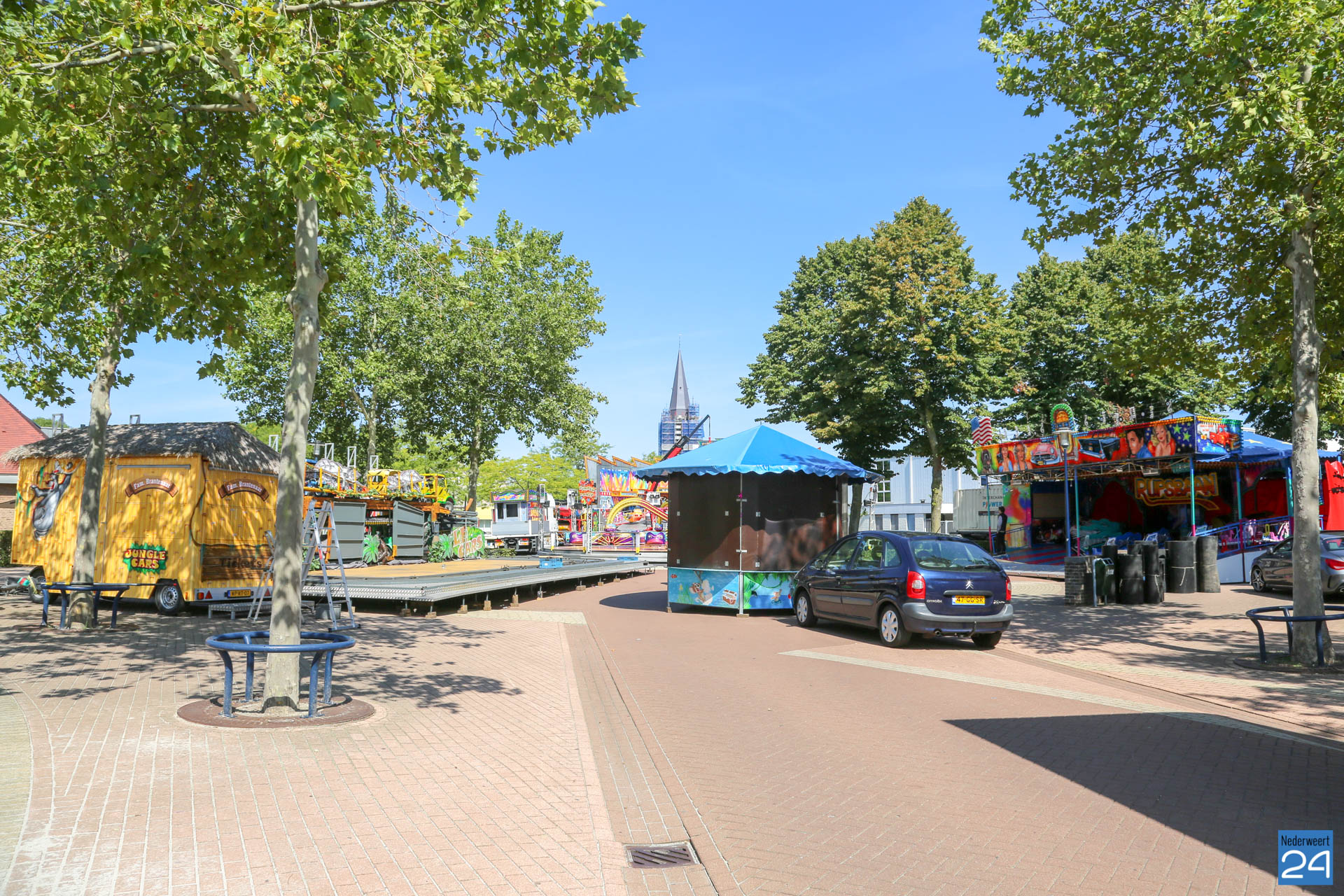 De opbouw van de kermis in Nederweert is van start. Woensdagmiddag arriveerden de eerste kermisexploitanten met hun attracties op het Raadhuisplein en Geenestraat. Donderdag was het een drukte van jewelste op het kermisterrein.