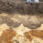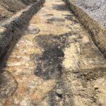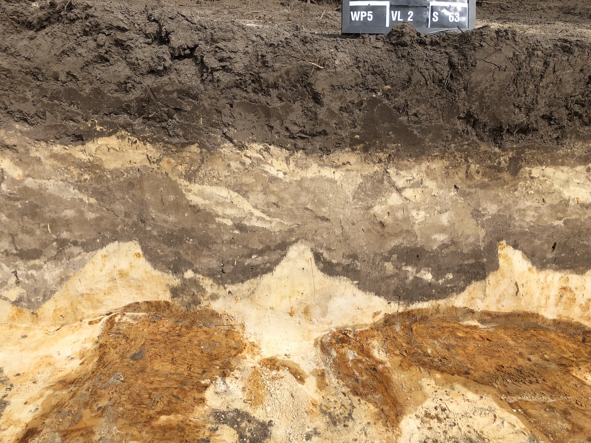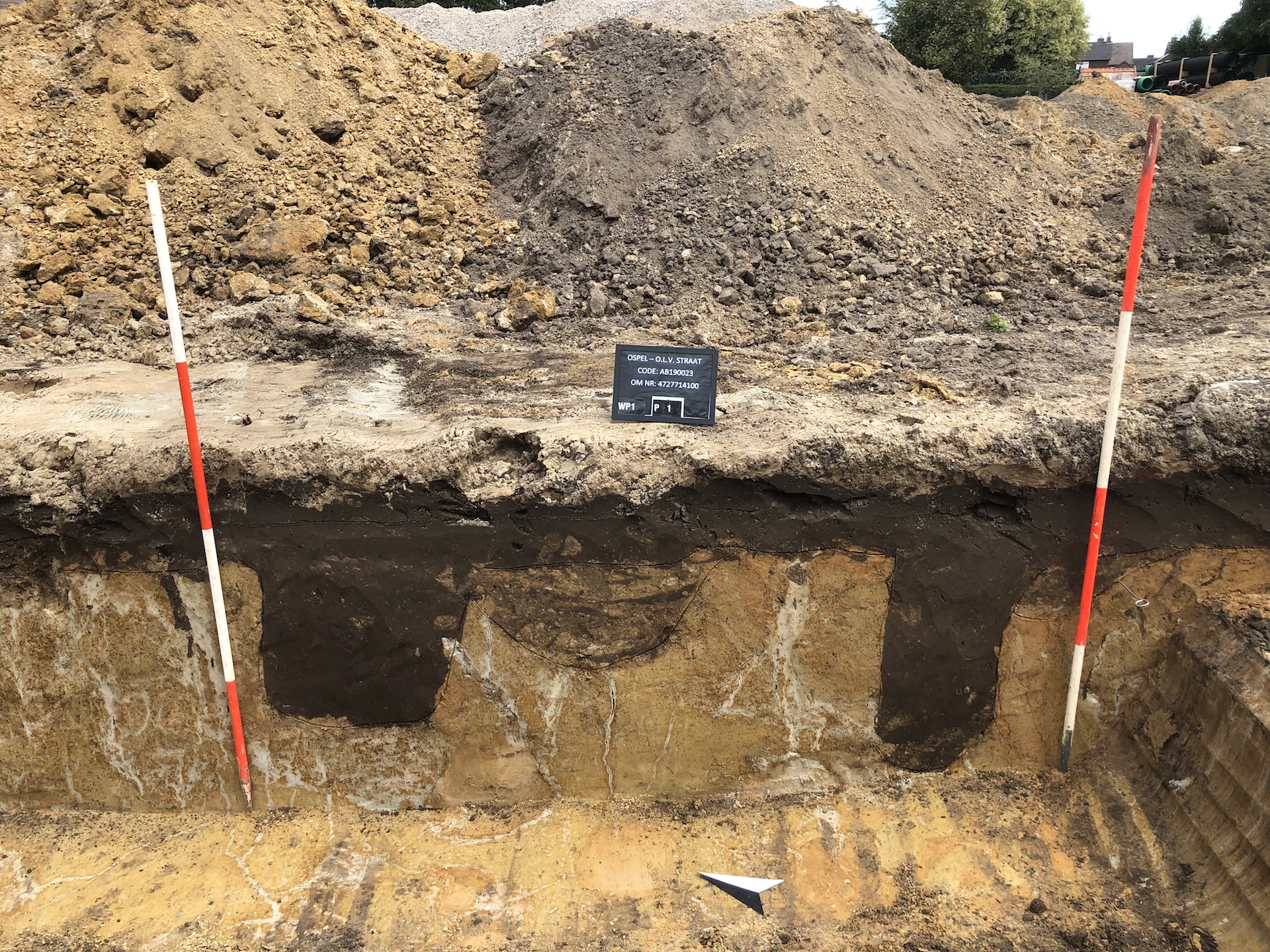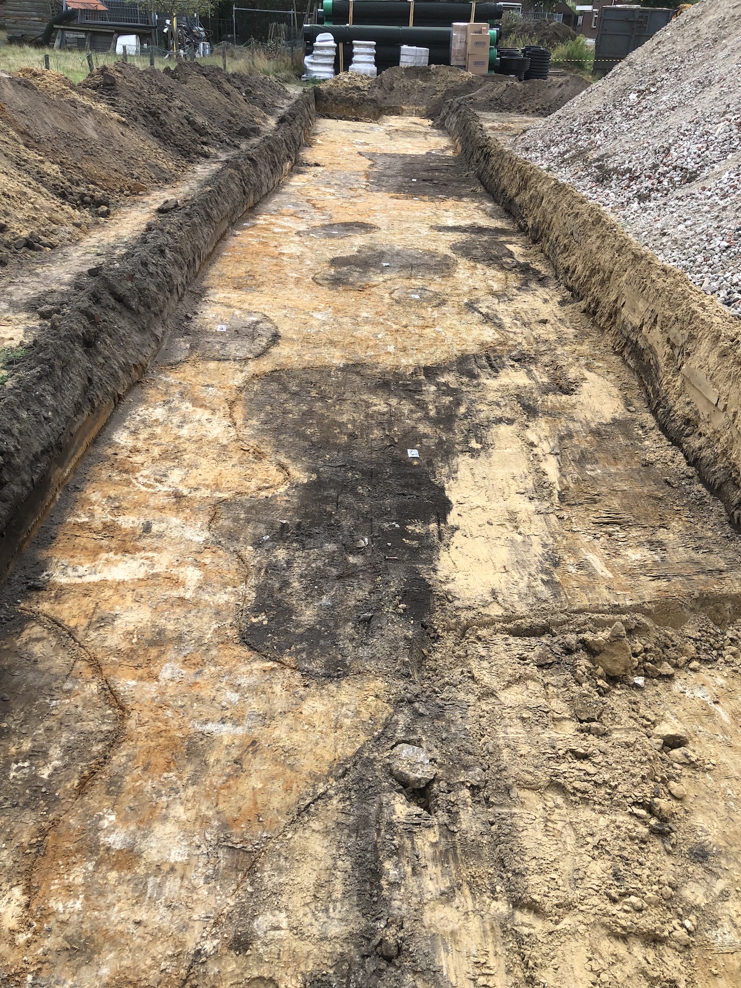 Een deel van de bodem bleek verstoord te zijn door tamelijk recente sporen die samen hangen met de bedrijfsactiviteiten op deze plaats. Maar er werden ook veel oudere grondsporen gevonden. Sommige daarvan kunnen zelfs nog uit de middeleeuwen dateren. Zoals een omheiningsgreppel, sporen van leemwinning en ‘spitsporen’. Dat laatste zijn de zichtbare restanten van het spitten waarbij dit voormalige heidegebied door de eerste Ospelnaren in gebruik is genomen als landbouwgebied. Die sporen teken zich af als donkere sikkelvormige sporen in de gele, steriele ondergrond.