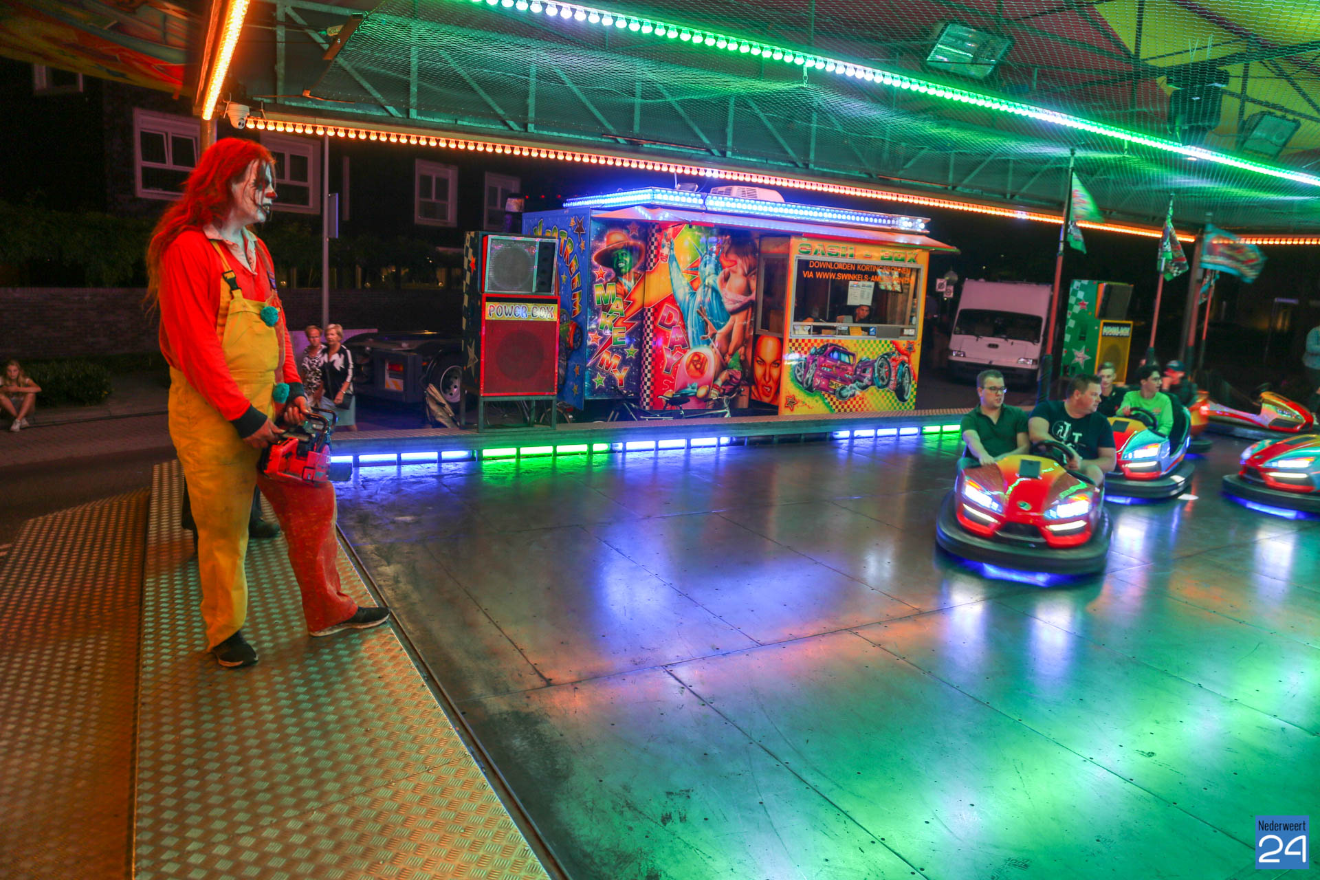 De kermis in Nederweert is vrijdagavond van start gegaan met Fright Night en Euroavond. Geheimzinnige wezens bezochten de kermis om de bezoekers de stuipen op het lijf jagen. Dat lukte regelmatig! Er heerste vrijdagavond een gezellige sfeer en de attracties zaten goed vol.