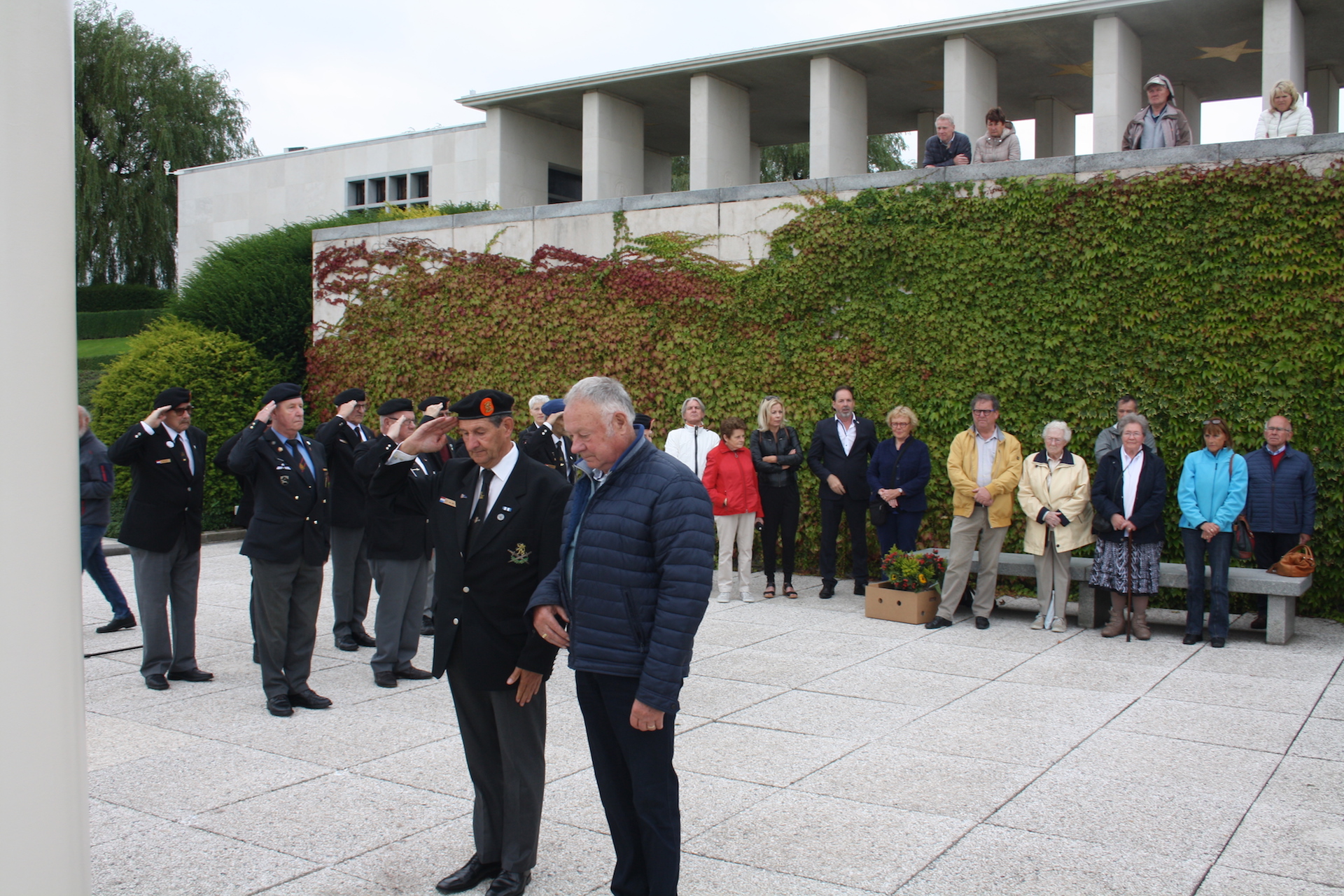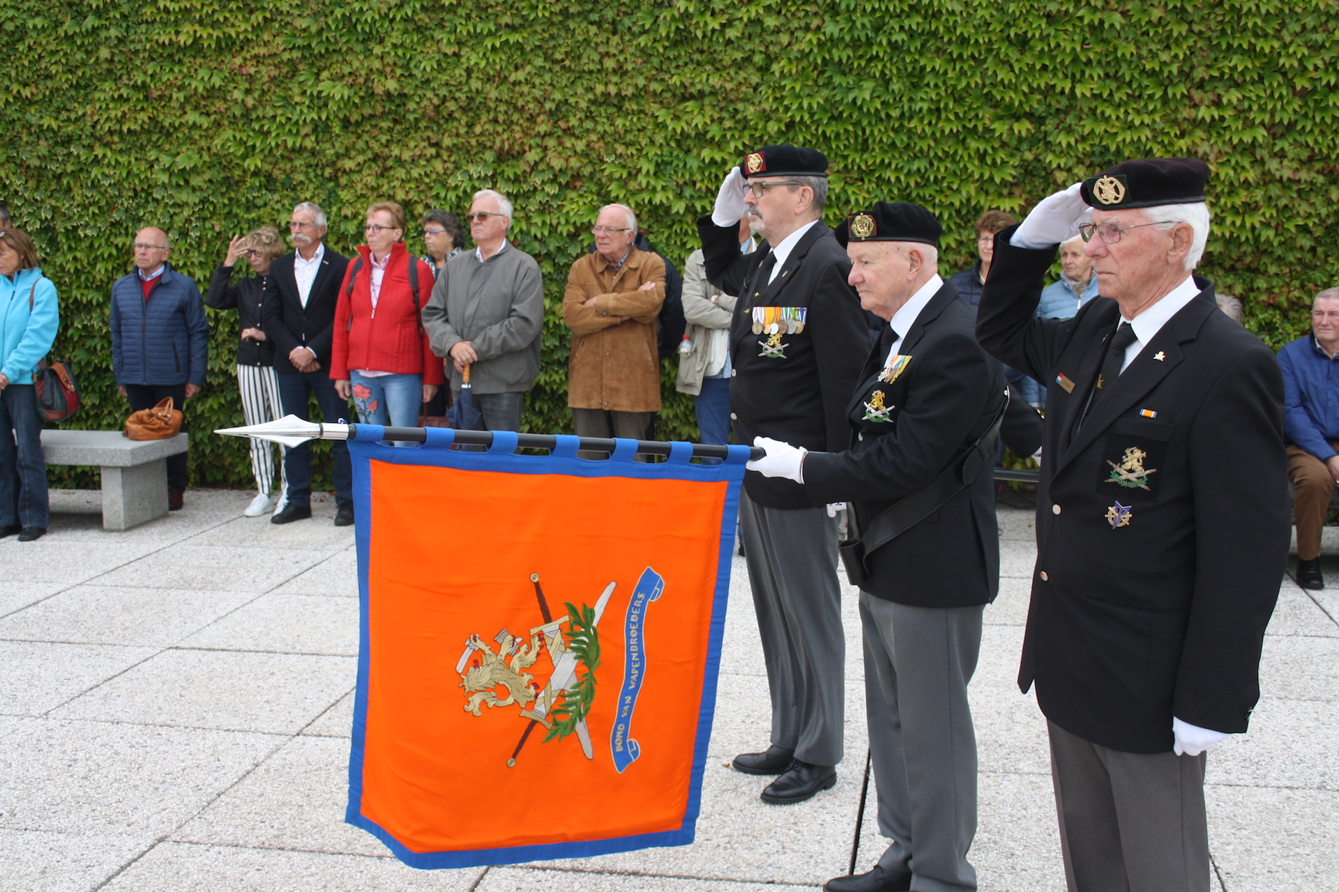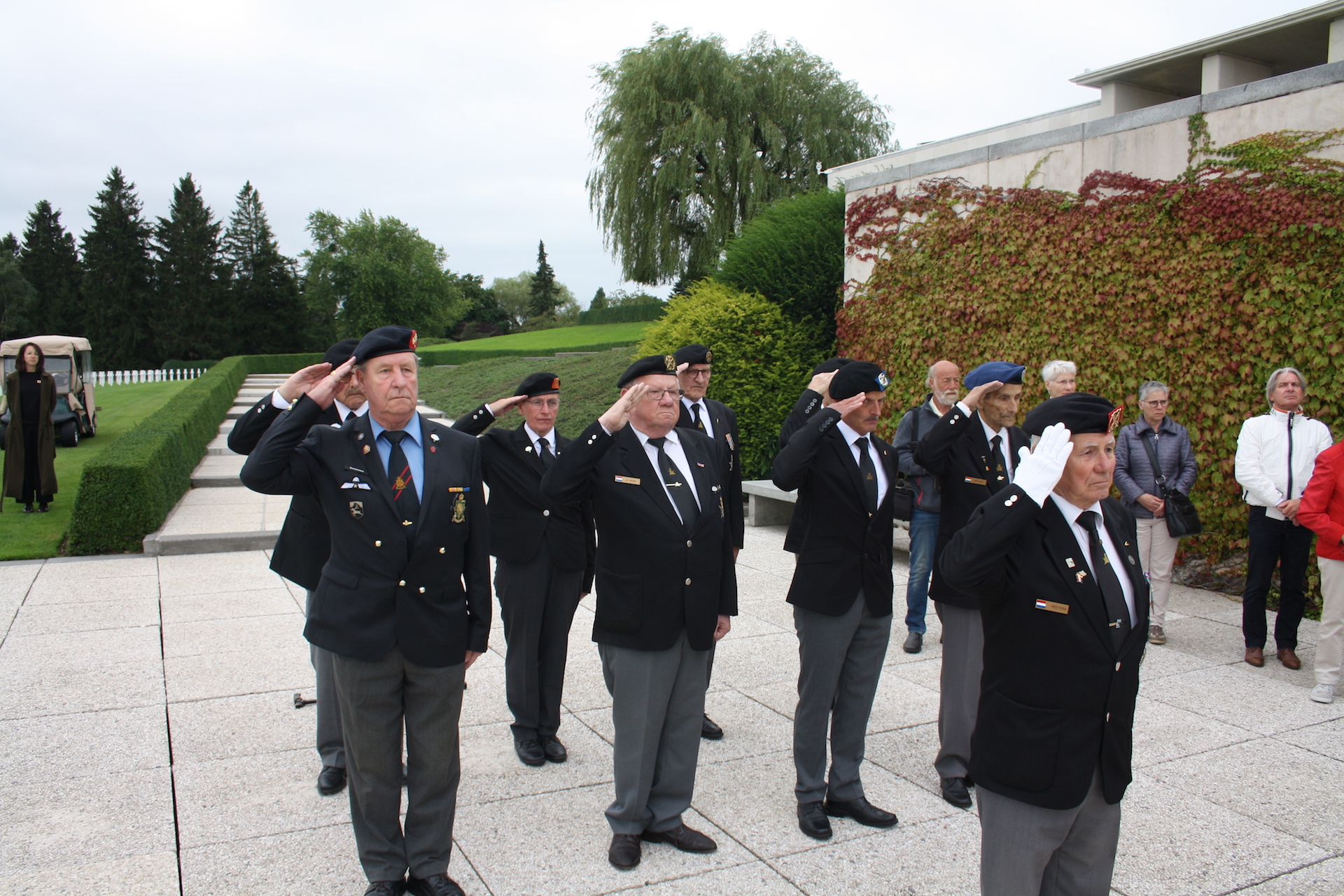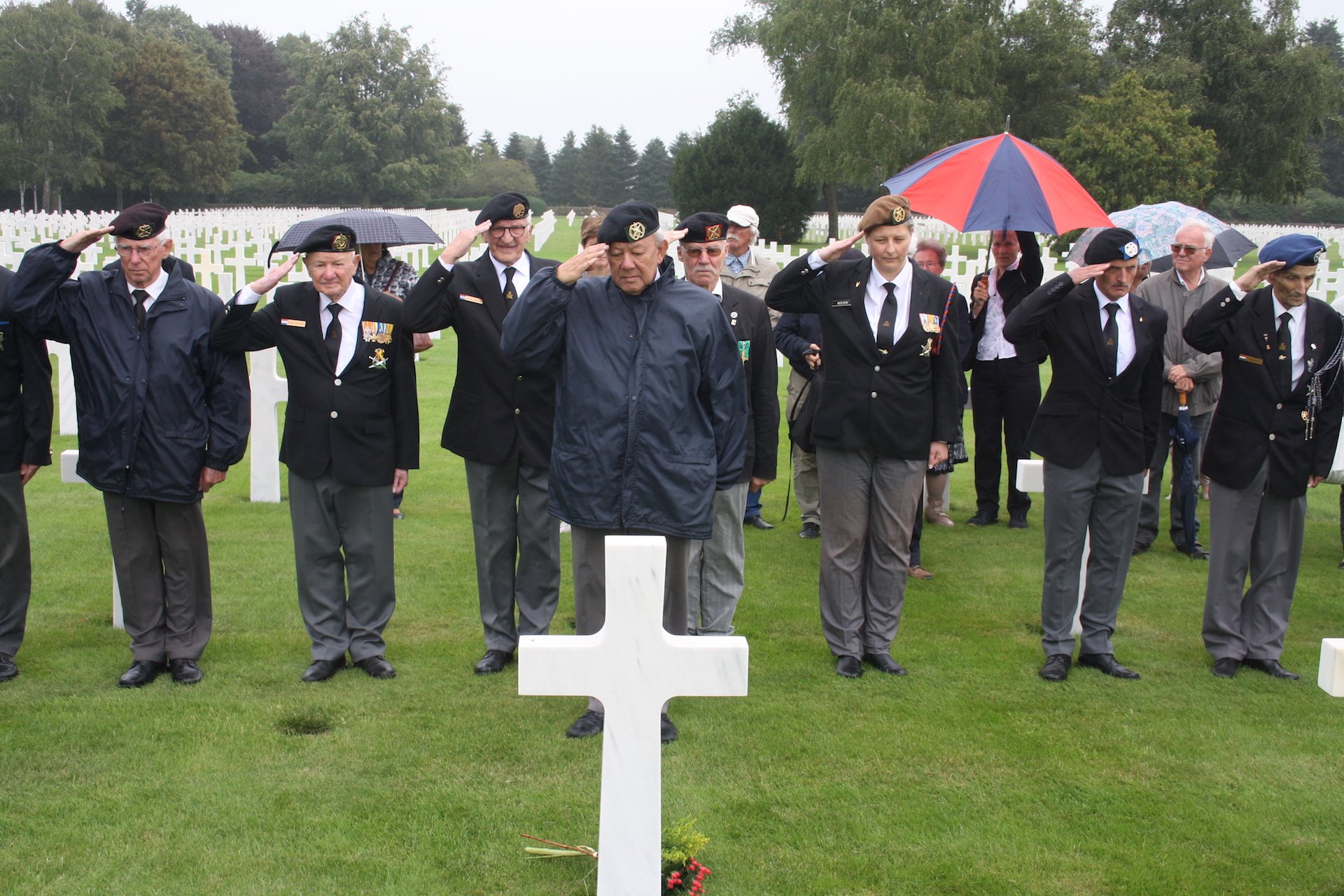 Ze gingen samen op weg naar de Militaire Amerikaanse begraafplaats in Henri-Chapelle voor de jaarlijkse herdenking ter ere van de Amerikaanse soldaten die hun leven verloren tijdens de strijd in Ospel en omgeving en hier hun laatste rustplaats vonden. De voorzitter van de Wapenbroeders Arie van der Lee en Pastoor Marcus Vankan spraken de aanwezigen en de meegereisde banierwacht toe. Na de indrukwekkende ceremonie werden er kransen gelegd op de graven.