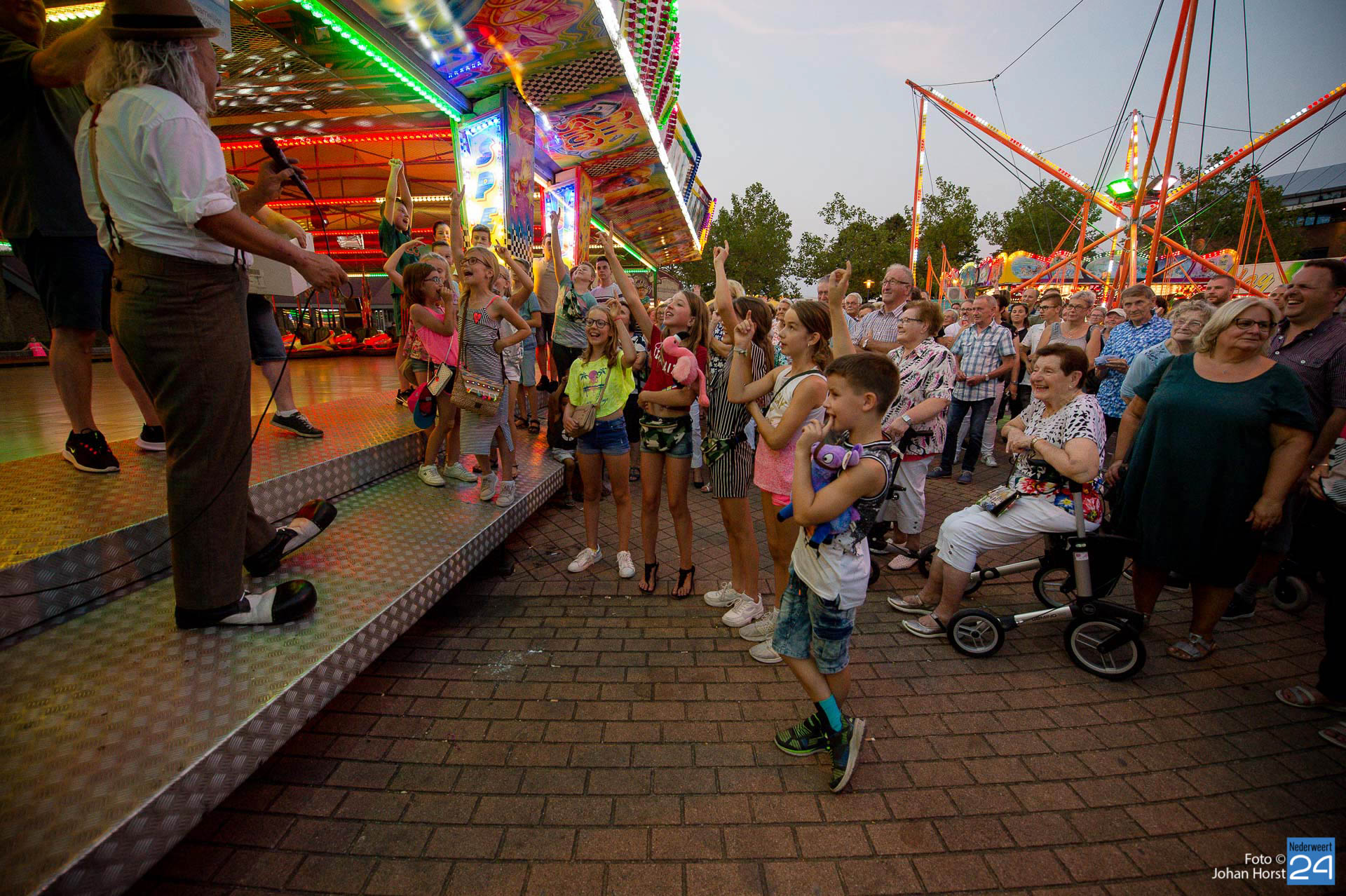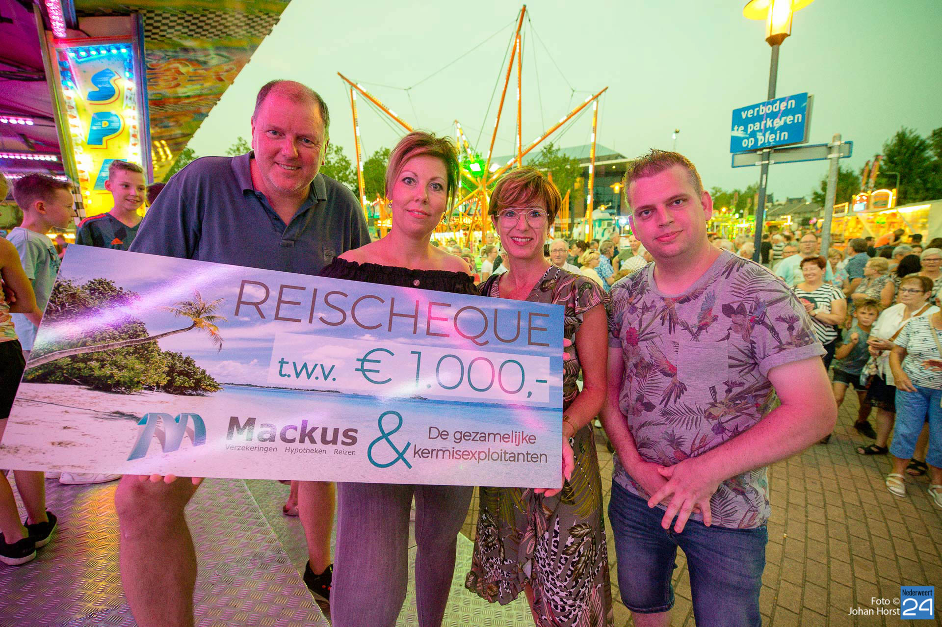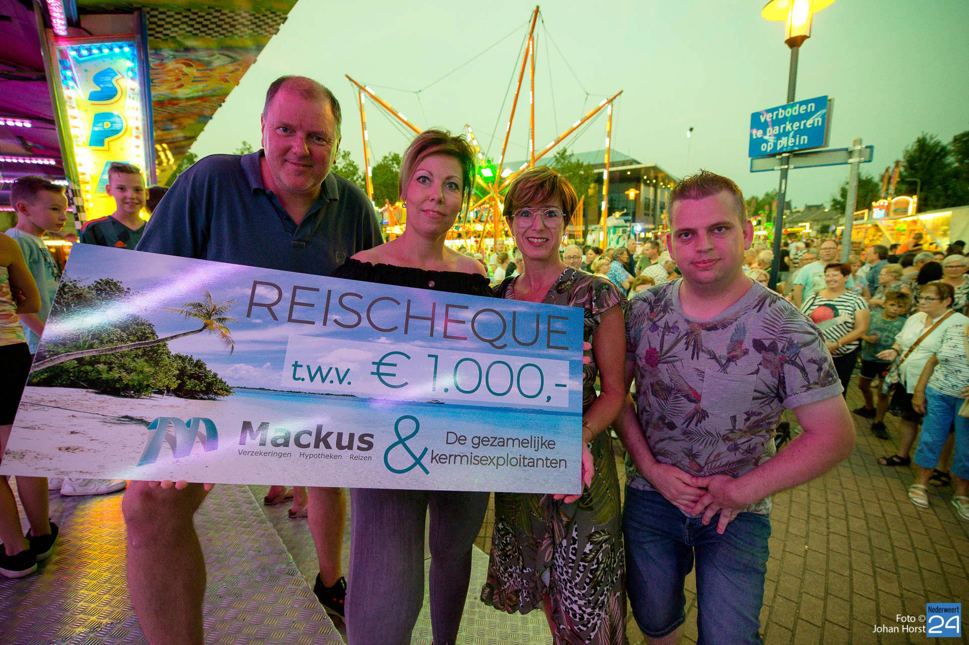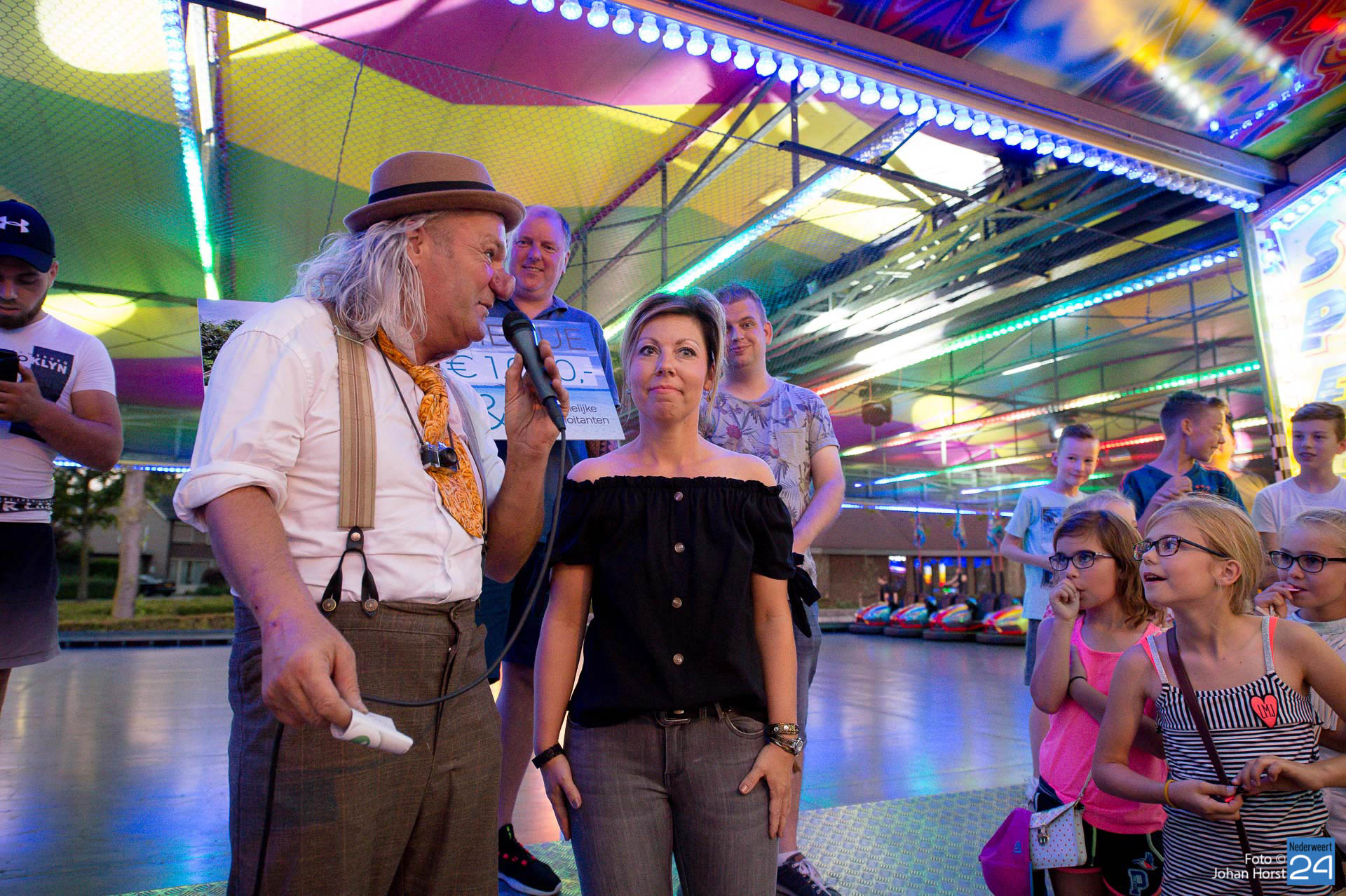 Maandagavond om half negen was het tijd voor de grote kermisloterij. De kermisexploitanten hebben gezorgd voor grote prijzen. Bij de botsauto’s verzamelde tientallen wachtende deelnemers voor de loterij. Clown Des Alles verzorgde de trekking. De hoofdprijs was een reischeque ter waarde van €1000,- samengesteld door Mackus Financiële Dienstverlening en Reisbureau in Nederweert en de gezamenlijke kermisexploitanten. Ook een flatscreen TV en een winkelwagen vol boodschappen werden weggegeven aan de gelukkige winnaars.