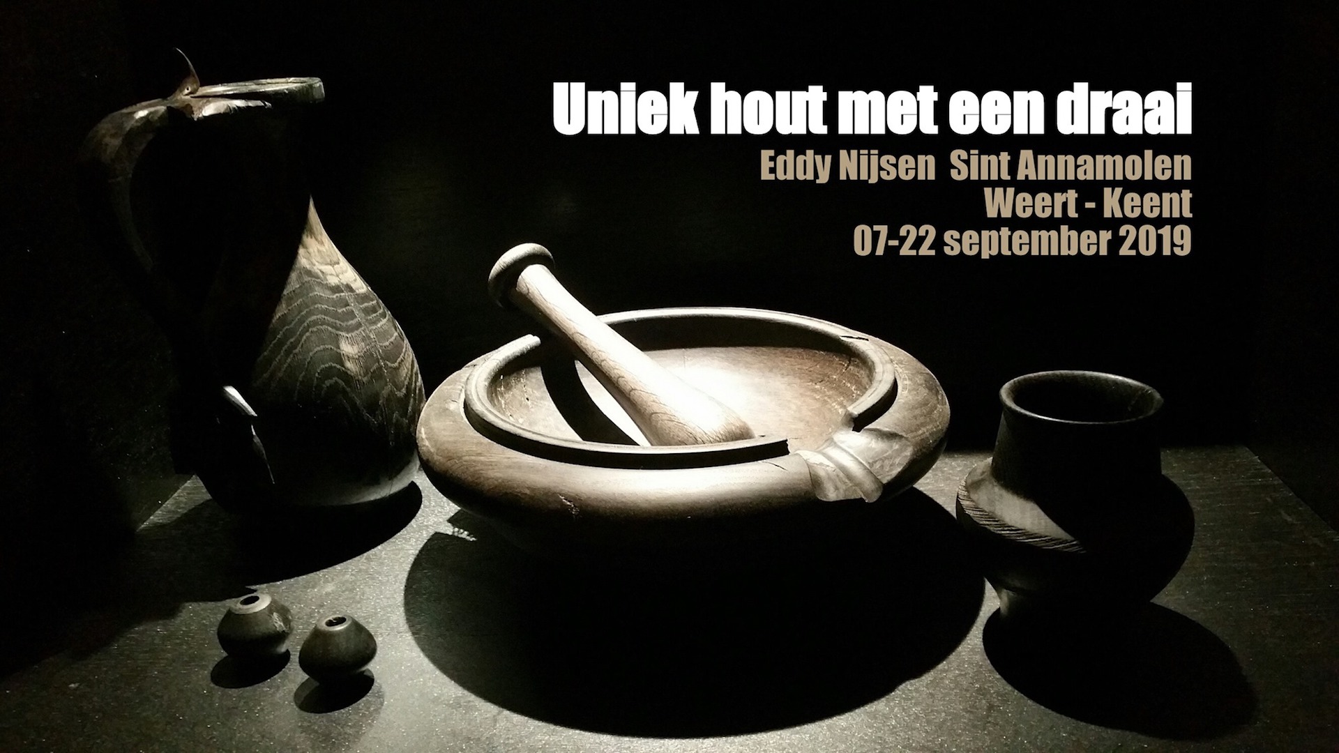 De monumentale omgeving van de Sint Annamolen, de molen van Keent is vanaf zaterdag 7 september de locatie voor een bijzondere tentoonstelling. Weertenaar Eddy Nijsen toont in de molen kunstobjecten en gebruiksvoorwerpen die hij uit het hout van talloze Weerter bomen, maar ook uit bijzondere houtsoorten uit andere delen van deze aardbol en uit archeologisch hout, gedraaid en gevormd heeft. Met recht ‘Uniek hout met een draai’ dat tot en met 22 september iedere woensdagmiddag, zaterdag en zondag in de Sint Annamolen aan de Keenterstraat 1a te zien is.