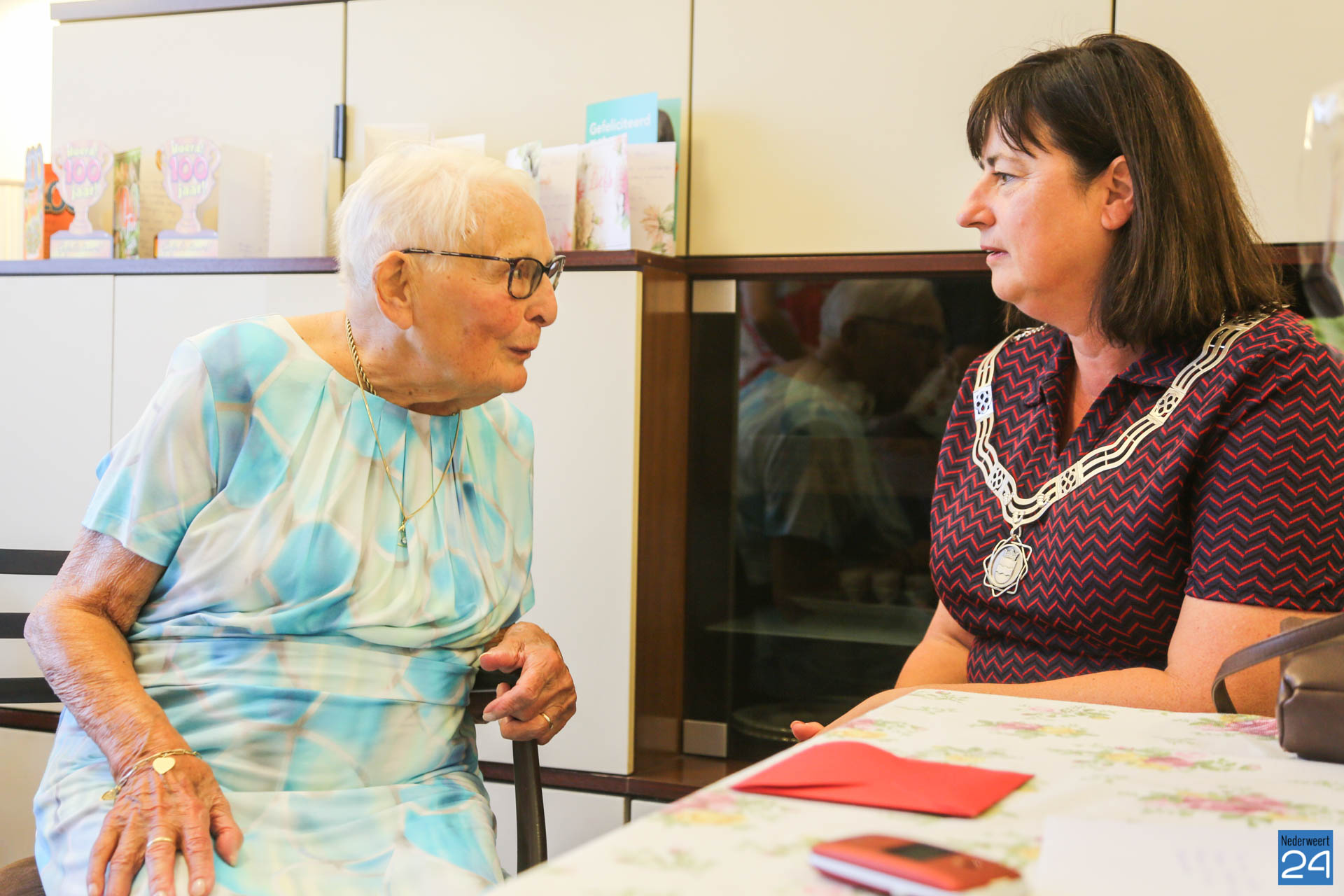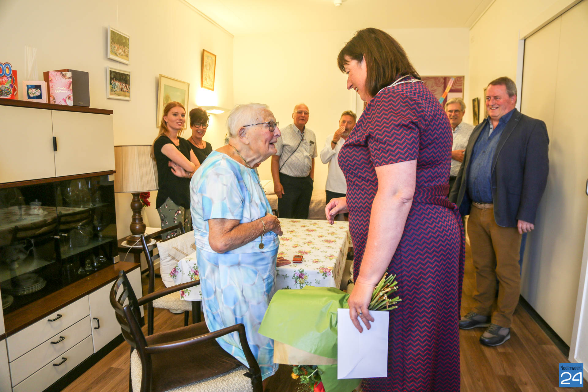 Alida Alberts van het Hof bereikte vandaag, vrijdag 30 augustus, de uitzonderlijke leeftijd van 100 jaar. En dus was het feest in zorgcentrum St. Joseph waar mevrouw Alberts sinds oktober 2016 woonachtig is. Het college van de gemeente Nederweert verraste de 100-jarige met een bezoek en een bos bloemen.
