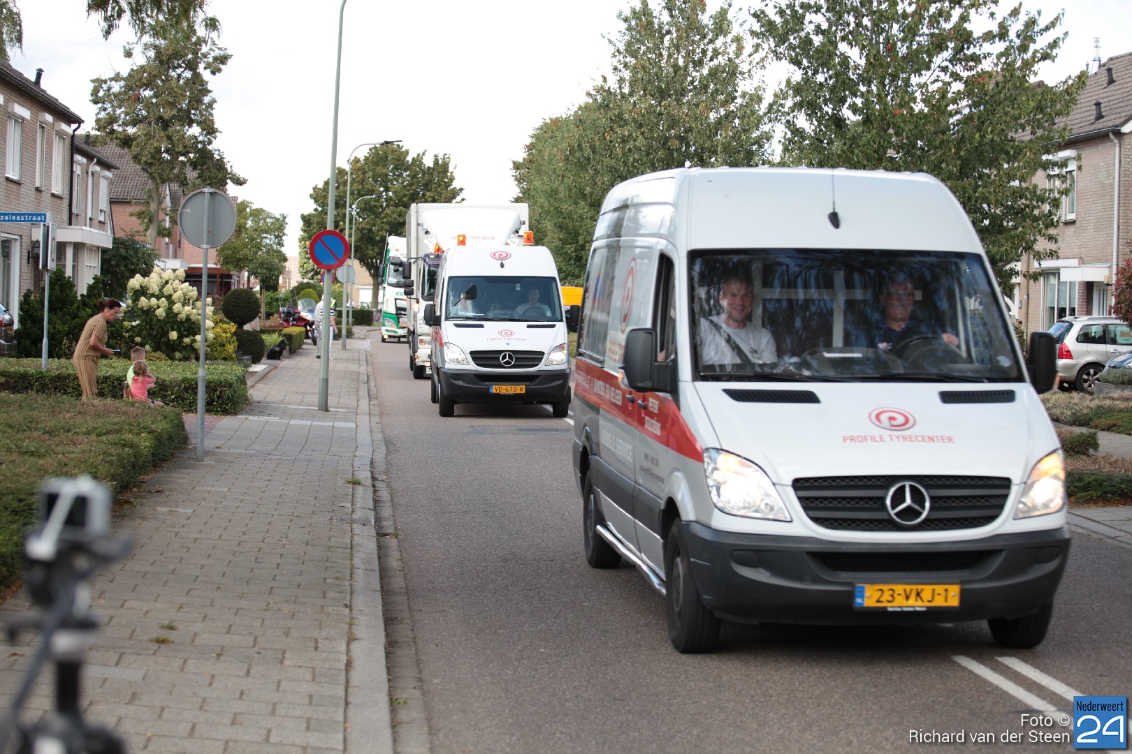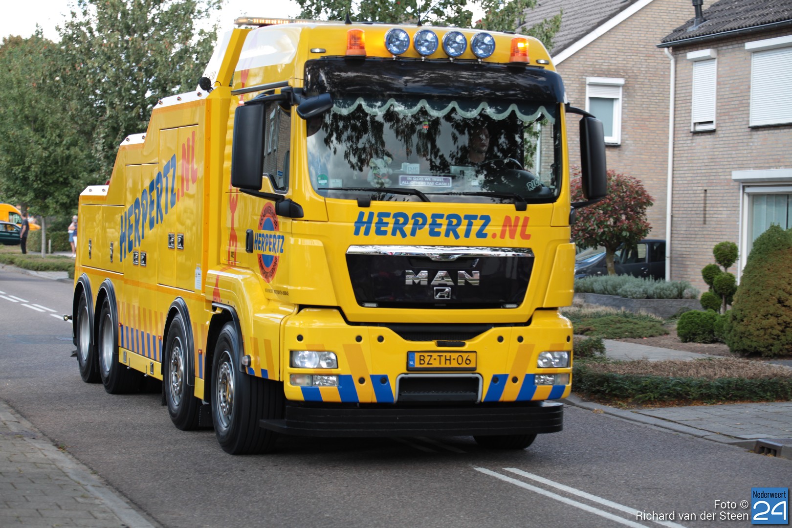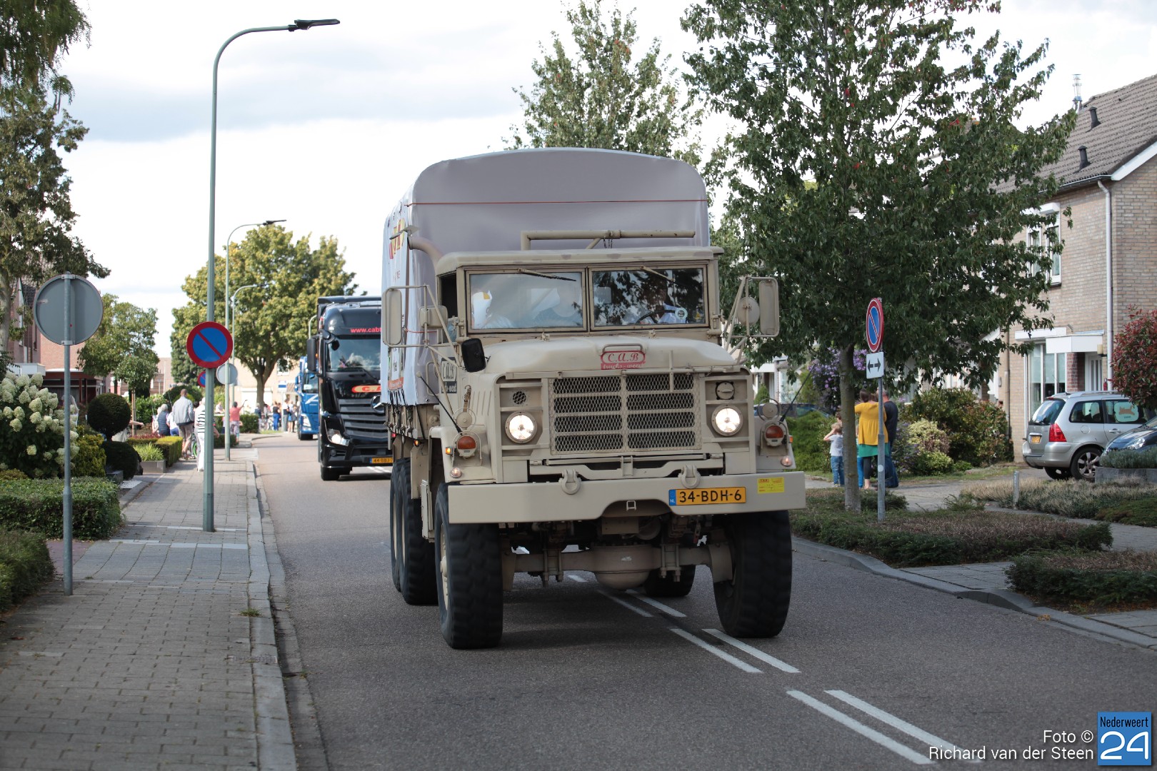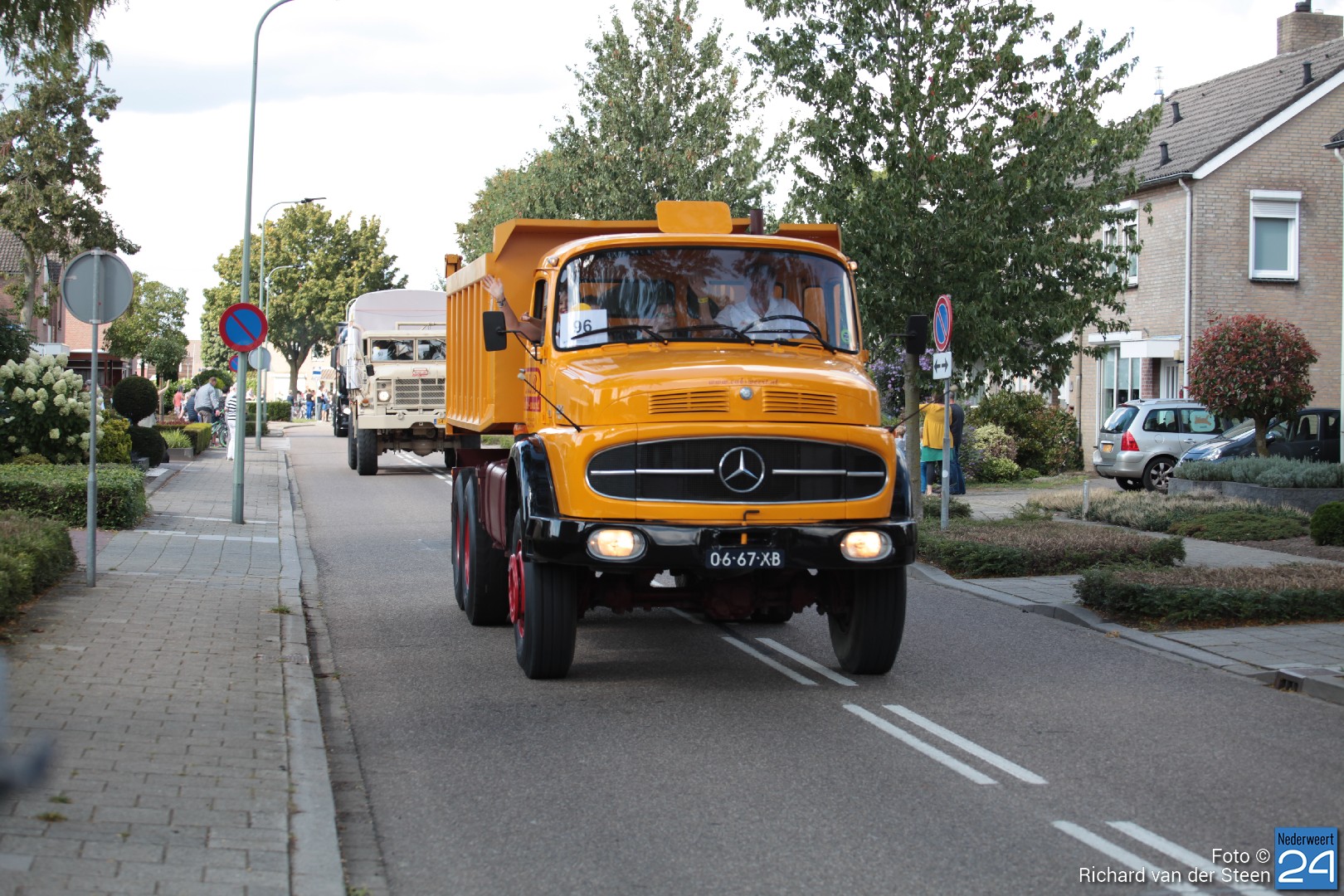 Onder luid getoeter van de vrachtwagens trok de stoet al toeterend voorbij. Wat een plezier voor de bijrijder, de chauffeurs en de toeschouwers naast de weg.