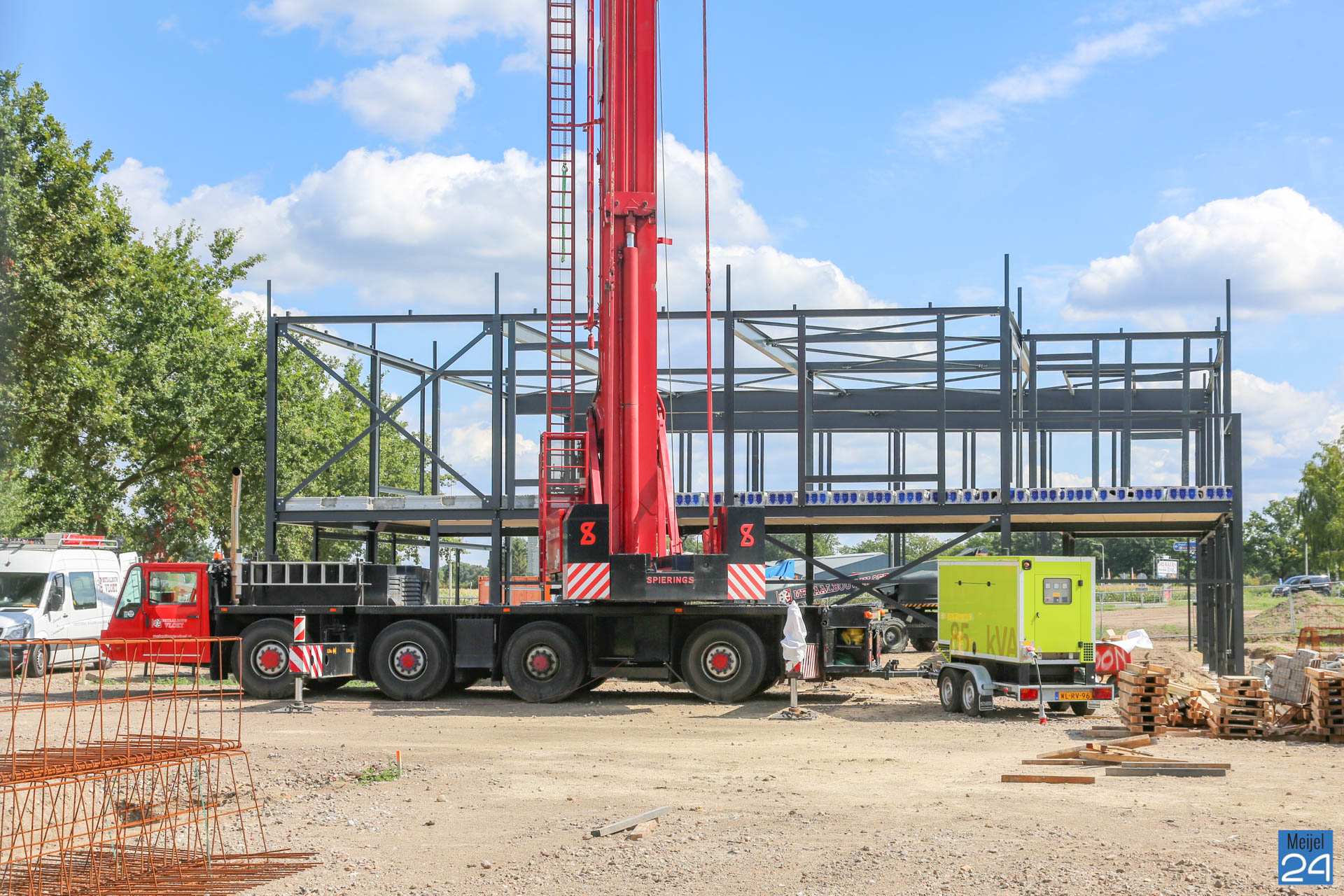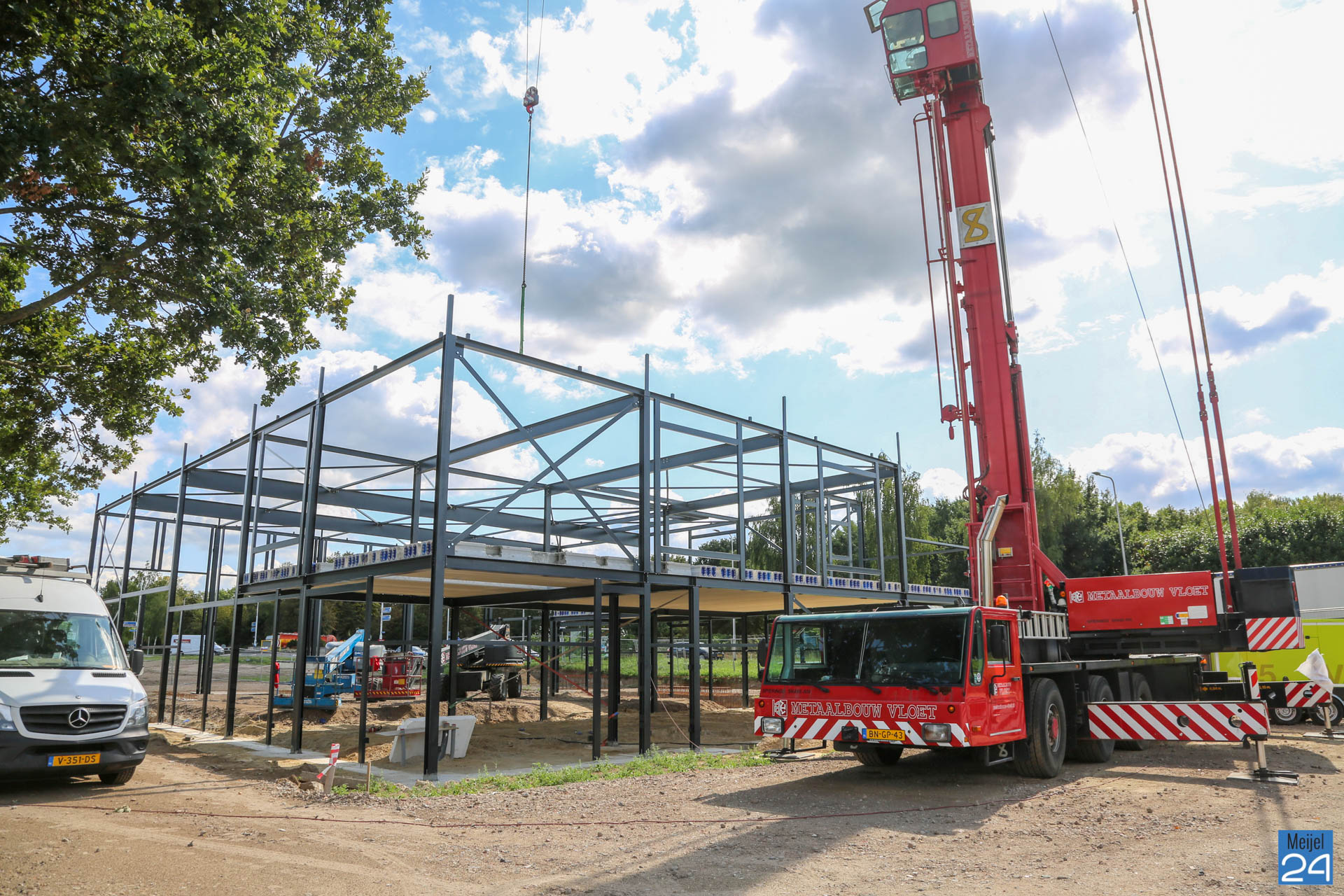 De bouw van de nieuwe brandweerkazerne verloopt voorspoedig. Men is afgelopen dagen begonnen met het in elkaar zetten van de stalen constructie. De bouw van de nieuwe kazerne neemt regelmatig veel bekijks met zich mee.