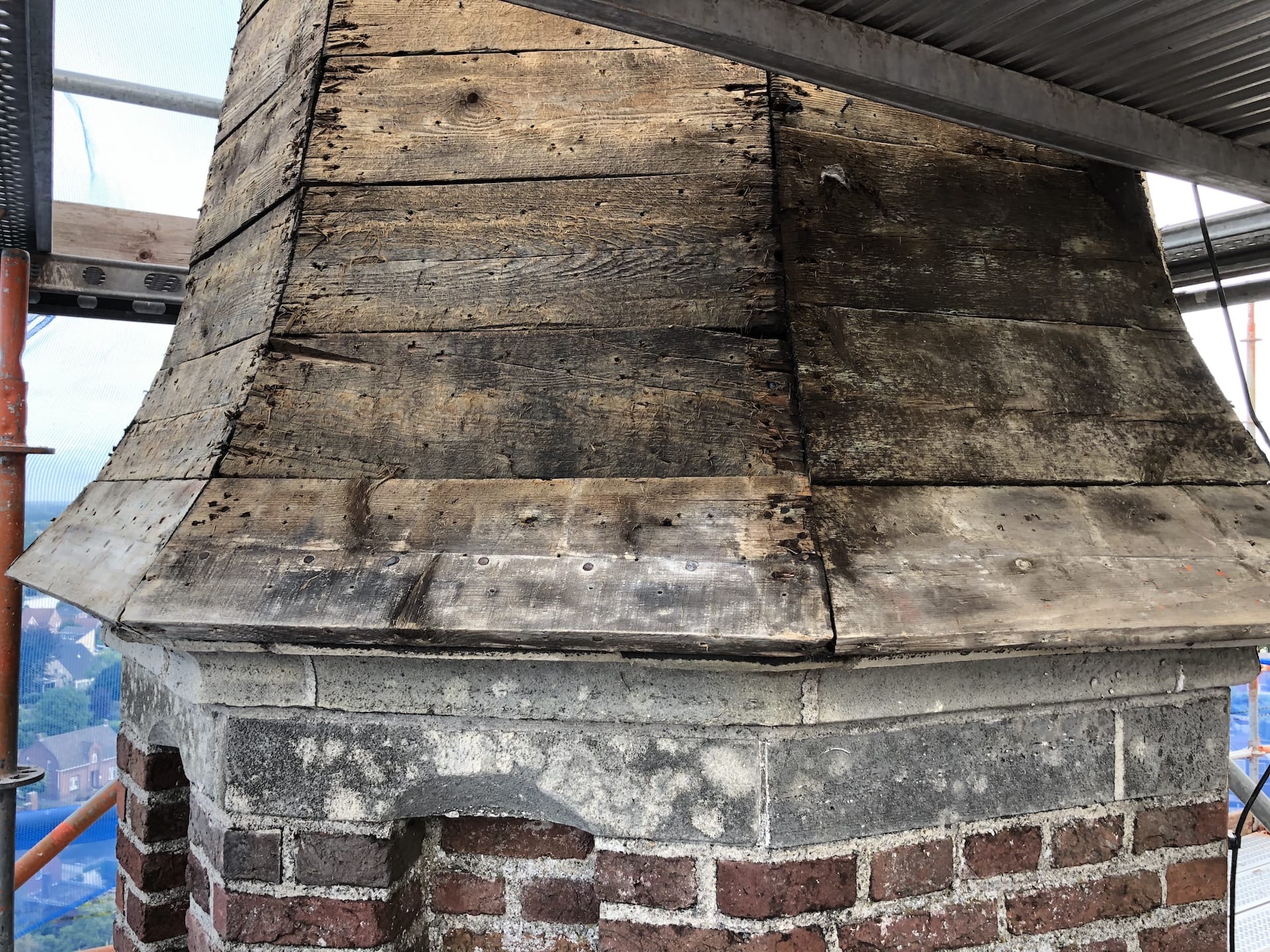Ook in het binnenste van de toren bruist het van de ambachtelijke activiteiten. De majestueuze en eeuwenoude houten klokkenstoel, dat is de ophangconstructie van de luidklokken, wordt eveneens hersteld. Dat gebeurt door molenmakers, die van nature immers goed bedreven zijn in dit soort traditioneel vakwerk met hout op grote hoogte.