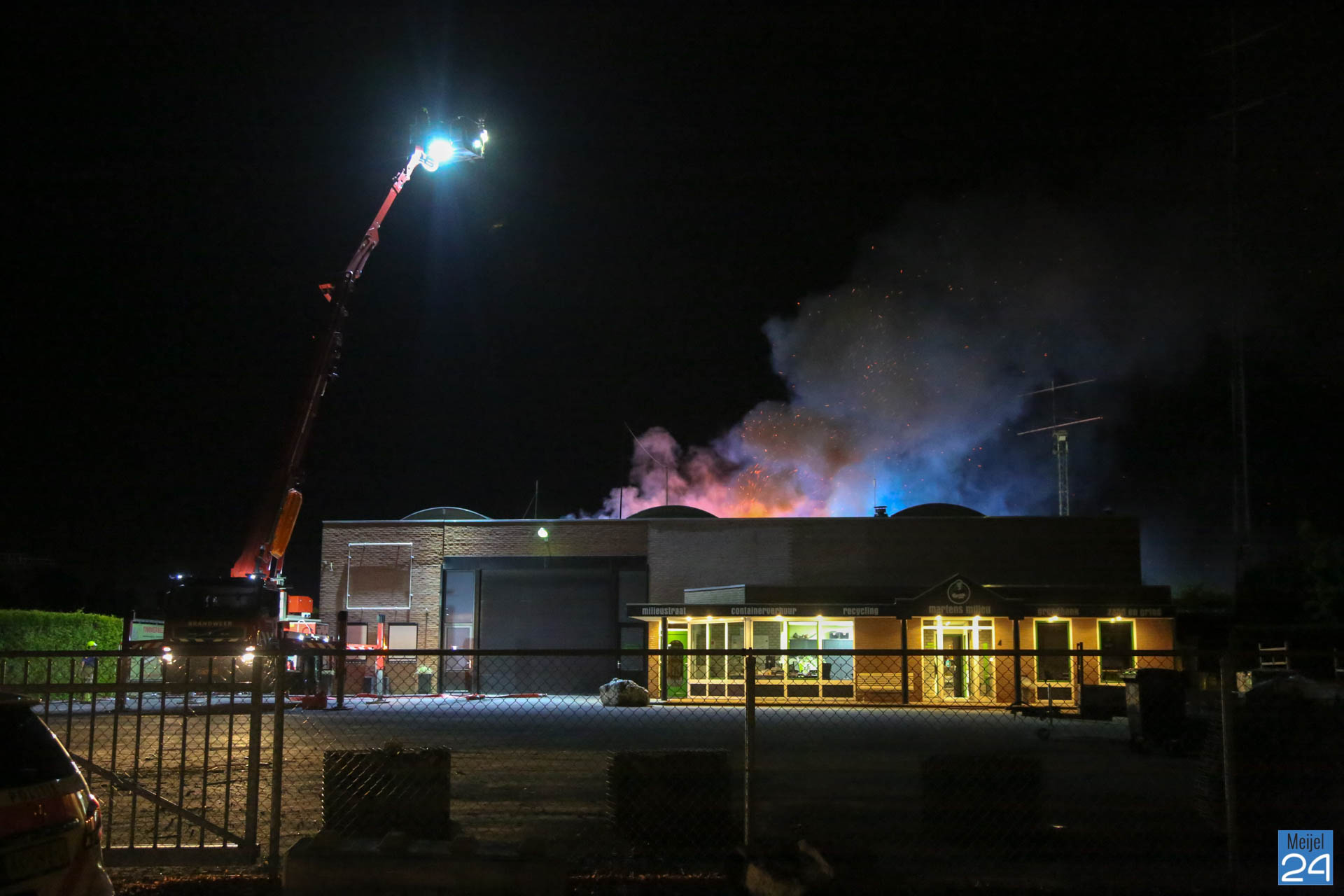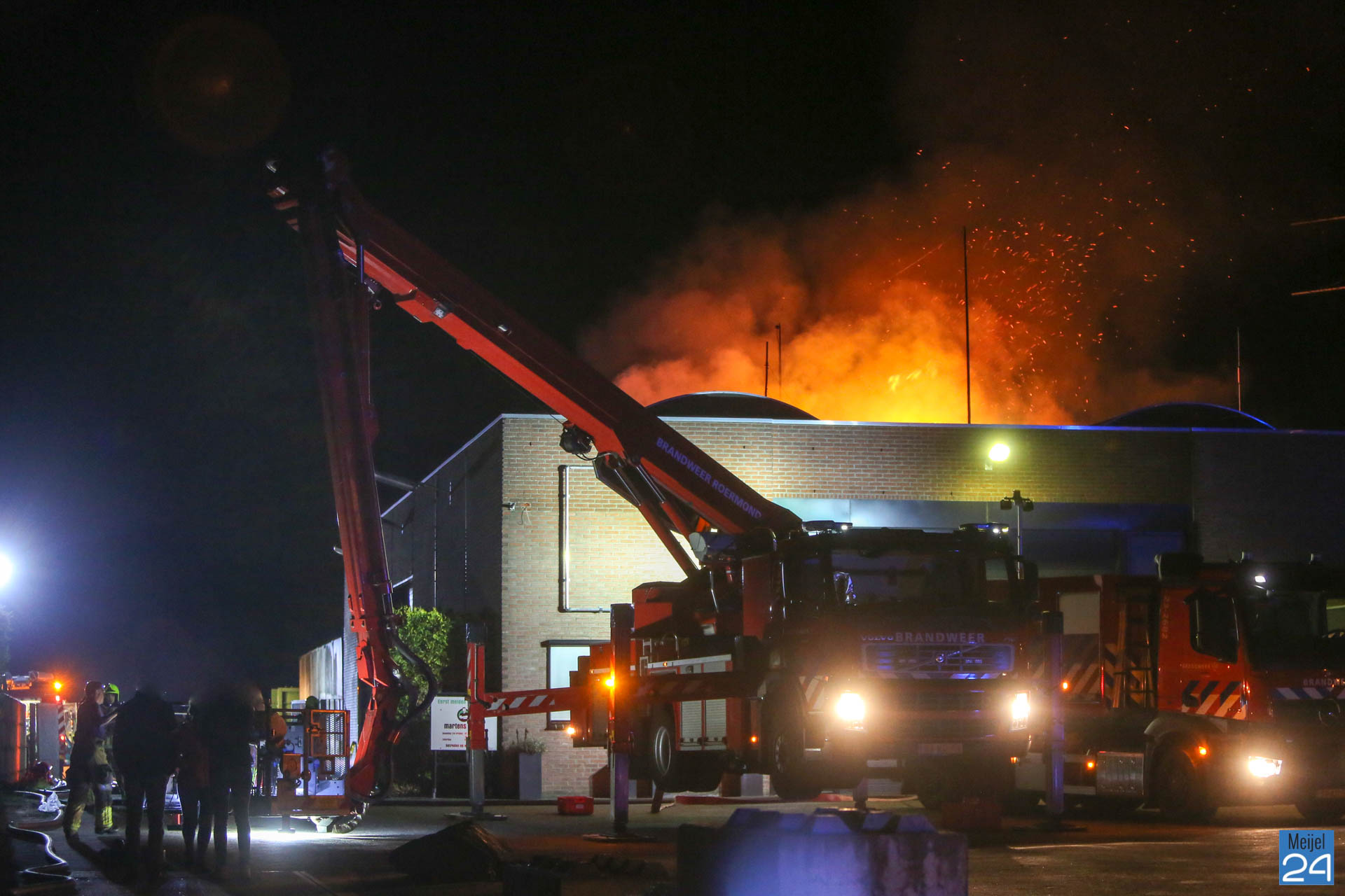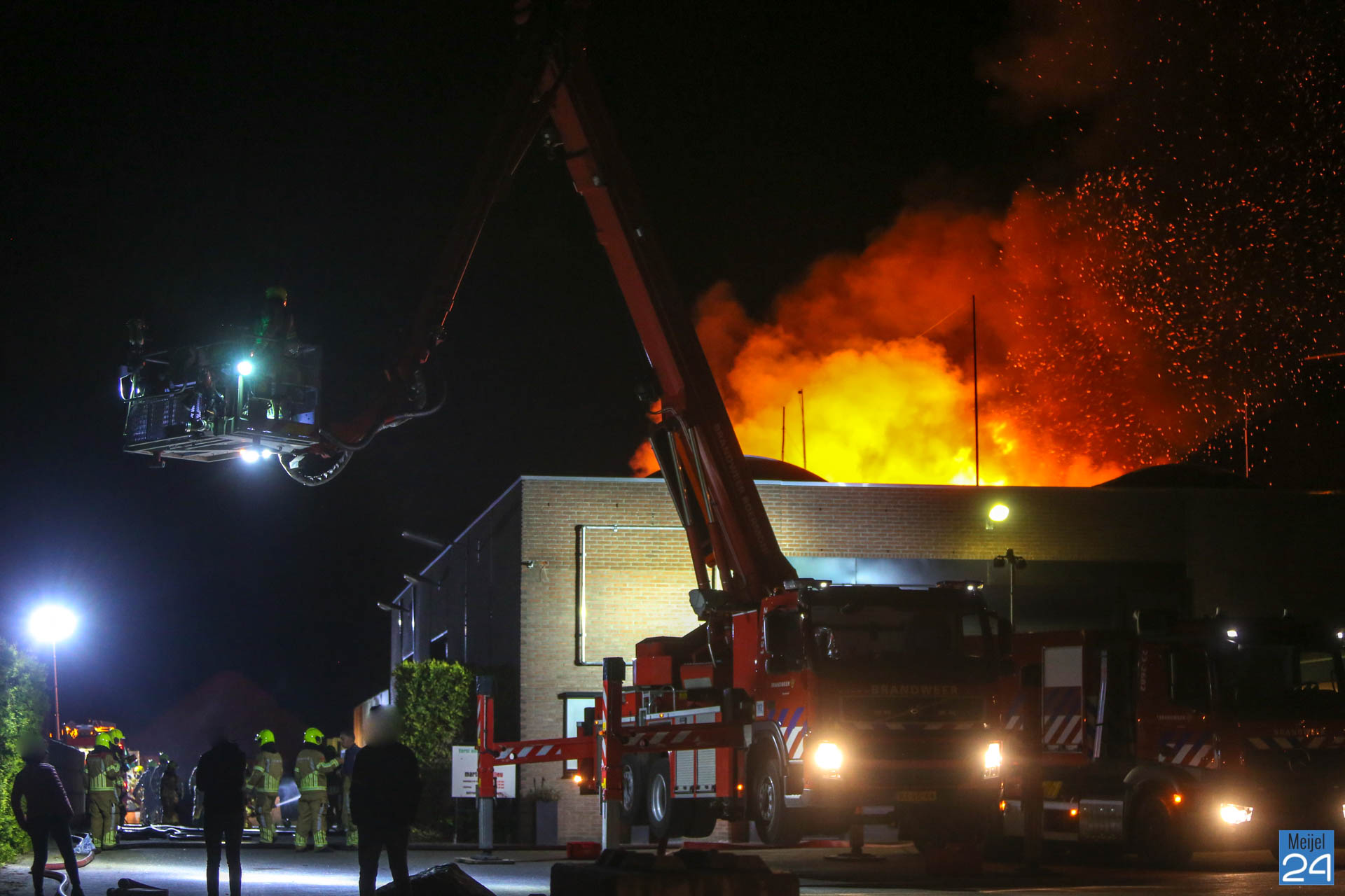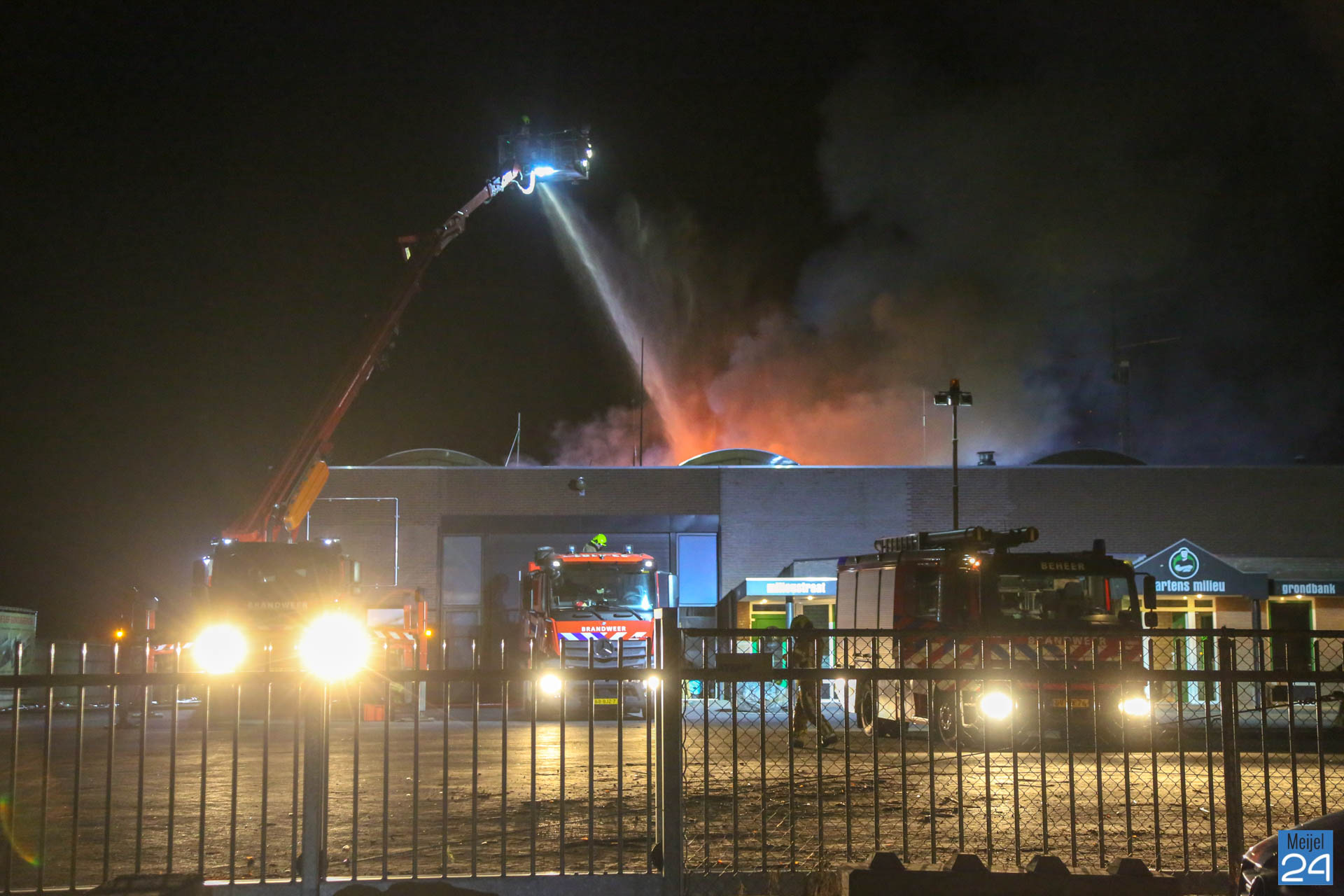 In de nacht van vrijdag op zaterdag heeft er een zeer grote brand gewoed in een bedrijfsverzamelgebouw aan de Simonshoek in Meijel. In het gebouw zijn vier bedrijven gevestigd; een stukadoorsbedrijf, een zeilmakerij, een timmerbedrijf en een afval inzamelingsbedrijf, zo meldde een woordvoerder van de brandweer. Of er bij alle vier de bedrijven ook daadwerkelijk brand heeft gewoed, is niet duidelijk.