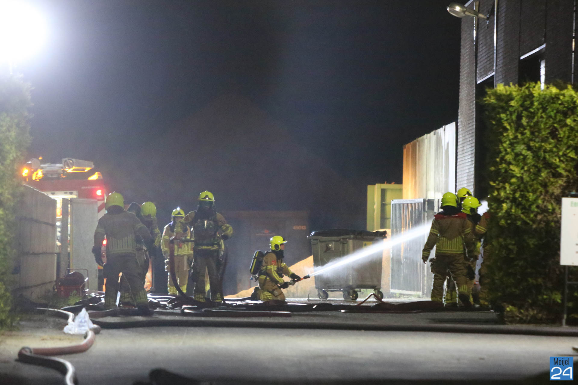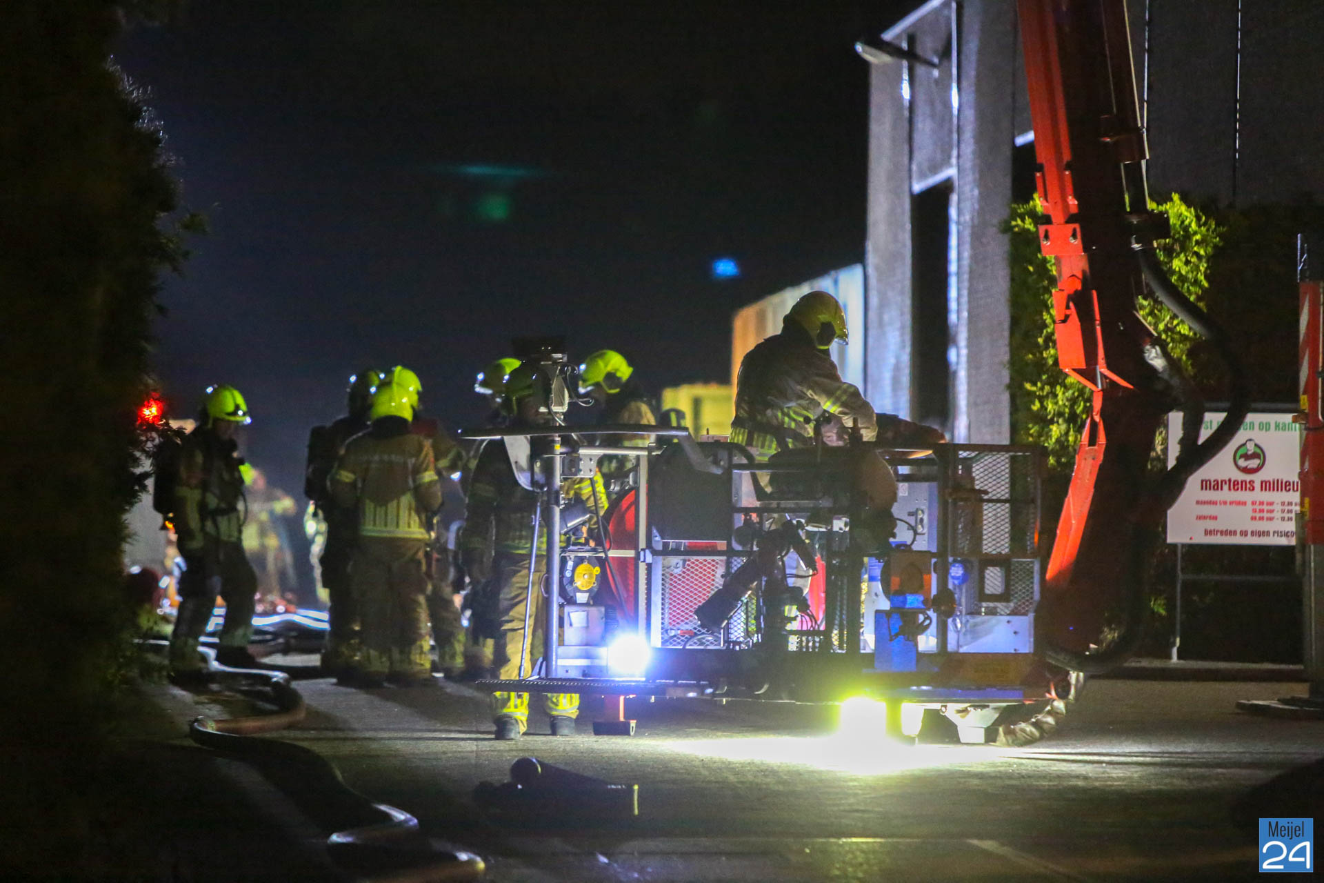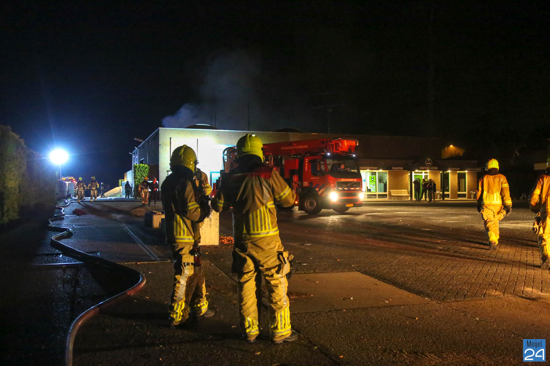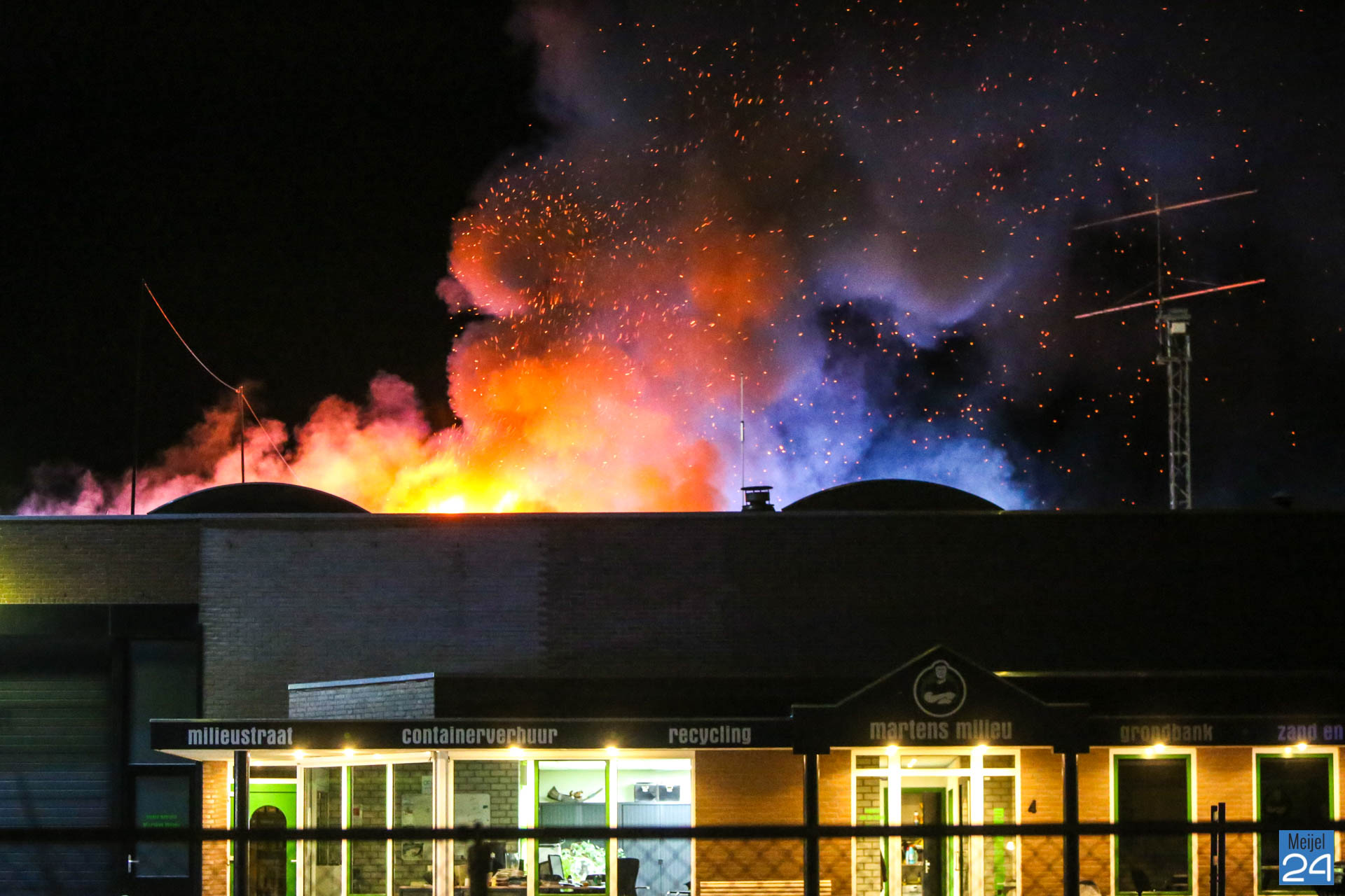 In de nacht van vrijdag op zaterdag heeft er een zeer grote brand gewoed in een bedrijfsverzamelgebouw aan de Simonshoek in Meijel. In het gebouw zijn vier bedrijven gevestigd; een stukadoorsbedrijf, een zeilmakerij, een timmerbedrijf en een afval inzamelingsbedrijf, zo meldde een woordvoerder van de brandweer. Of er bij alle vier de bedrijven ook daadwerkelijk brand heeft gewoed, is niet duidelijk.