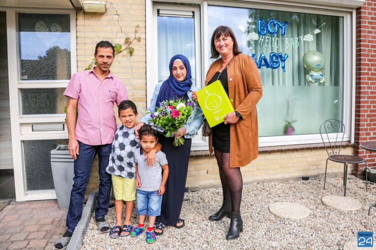 Burgemeester Op de Laak bracht een bezoek aan de familie Moree om het eerste Geboortekoffer persoonlijk te overhandigen. “De kleine Omar en ik zijn ongeveer tegelijkertijd in Nederweert aangekomen”, vertelde ze aan de heer en mevrouw Moree. Omar lag lekker te slapen, maar zijn broertjes Mohammad en Yousef wilden graag mee op de foto.