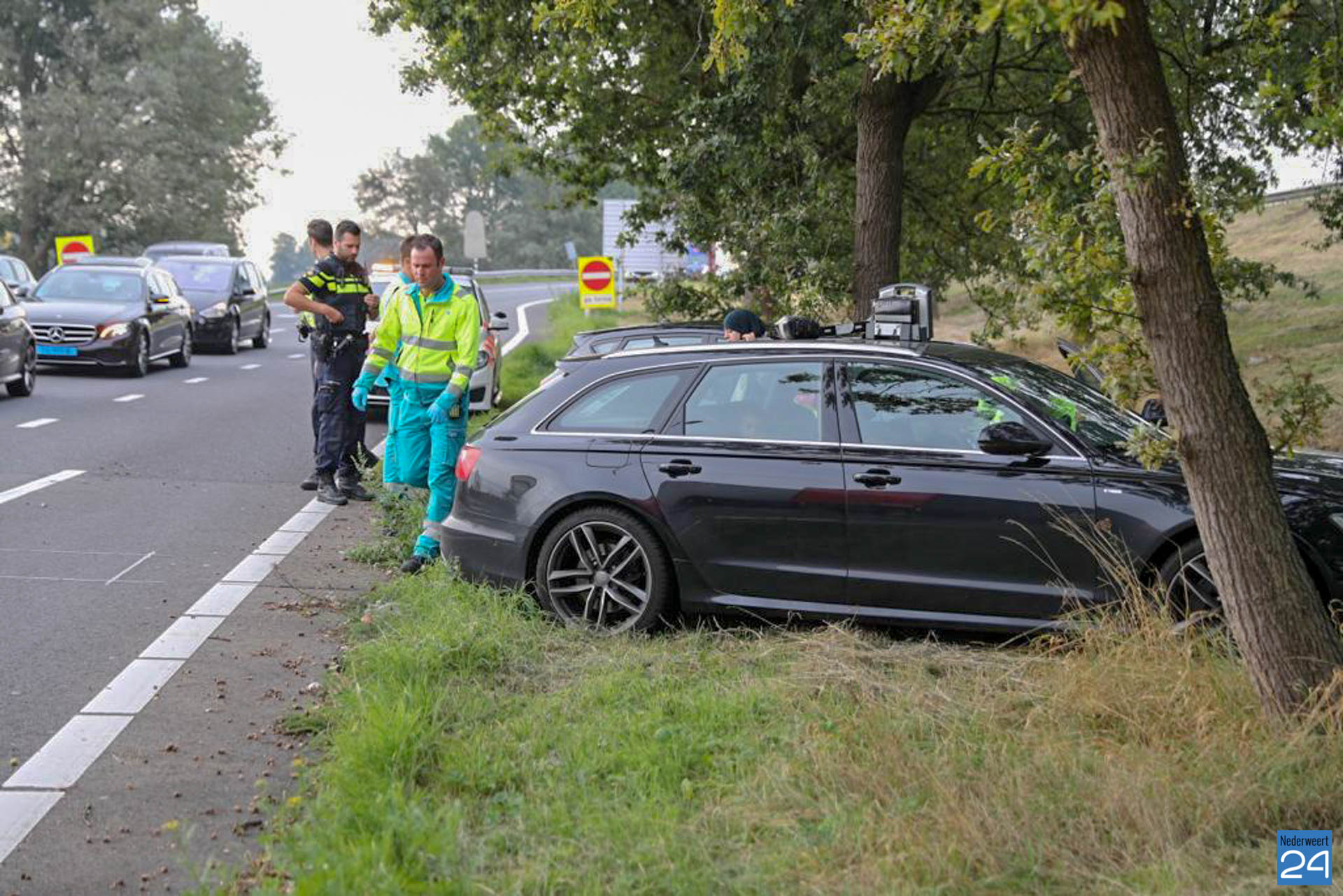 Beide personenauto’s reden vanuit Maastricht richting Eindhoven en verlieten bij afslag Nederweert de snelweg. Voor de verkeerslichten ging het mis. Uit voorzorg werd een ambulance opgeroepen, maar niemand raakte gewond. De kinderen achterin kregen van de ambulancebroeders een knuffel.