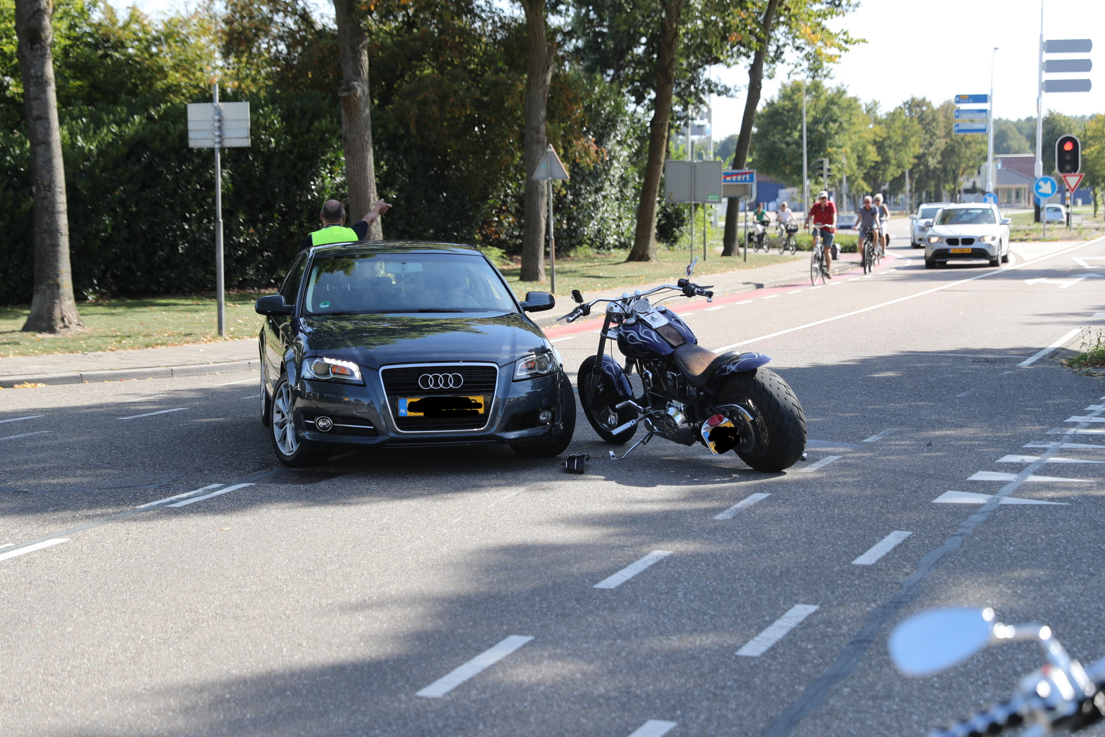 De motorrijder raakte lichtgewond en is nagekeken door het ambulancepersoneel. Hoe het ongeval heeft kunnen gebeuren is onbekend. De politie hoort getuigen.
