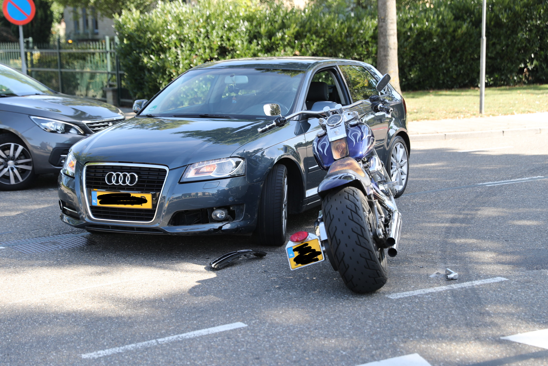 Zondagmiddag zijn een personenauto en een motor met elkaar in botsing gekomen op de Lindenstraat in Nederweert.