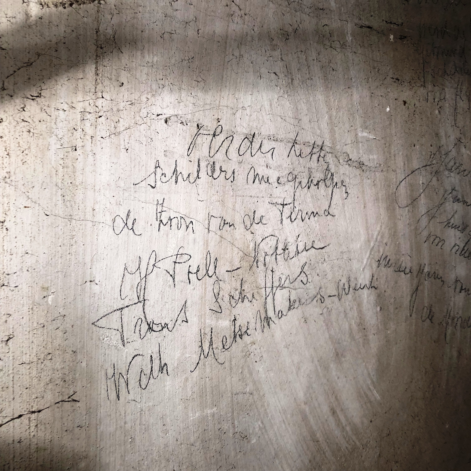 Je zult maar lekker aan het klussen zijn bij het verbouwen van je pas aangeschafte huis. Boven de keldertrap haal je een oud stukje plafond weg. En dan valt je oog op een drietal inscripties die met timmermanspotlood op de gestucte muren zijn geschreven. Die verrassing overkwam Stefan Knapen van Staat 17, een paar dagen geleden.