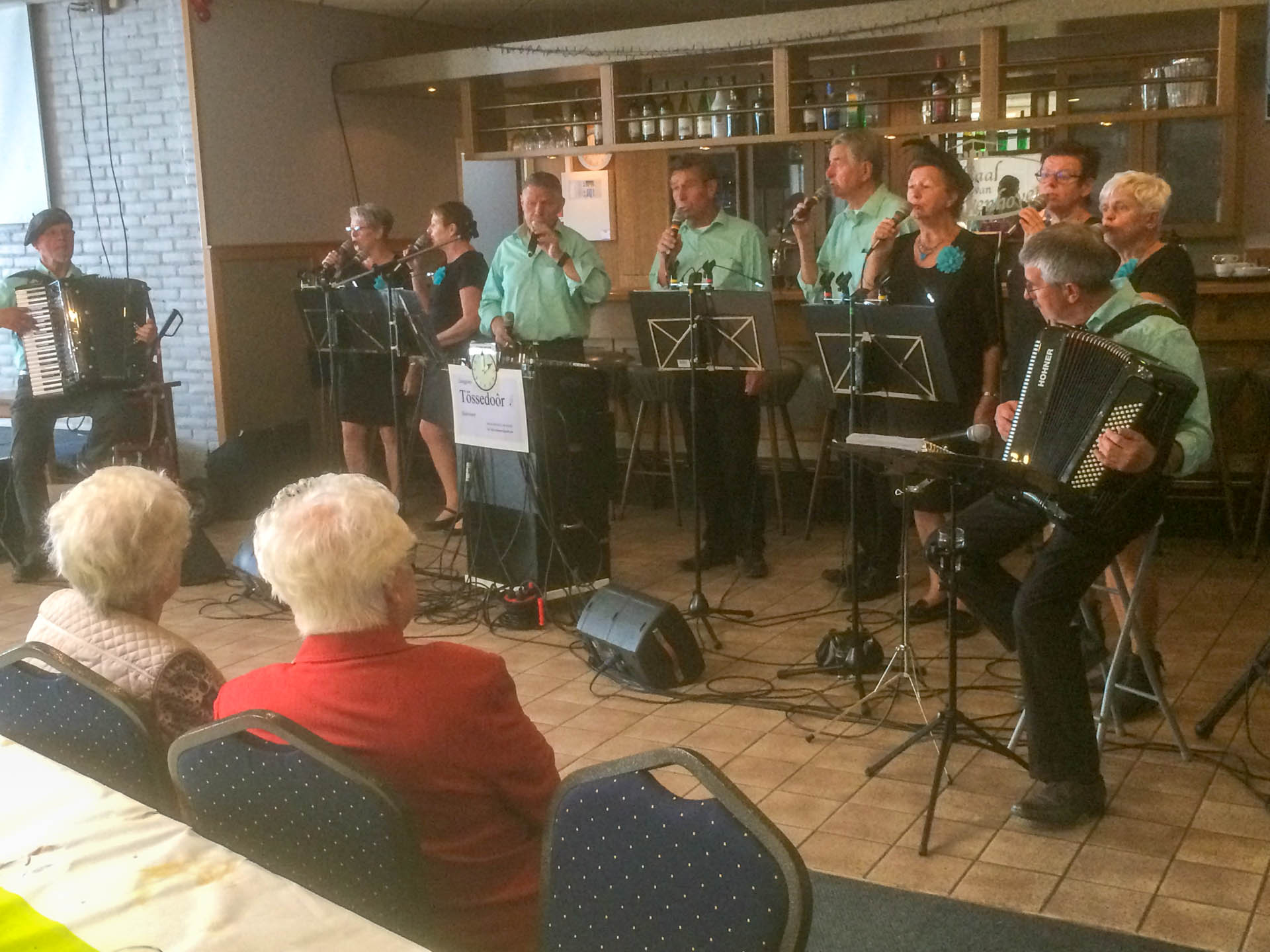 Het middag programma bestond uit een bijna 2 uur durend optreden van de Nederweertse Zanggroep Tössendoor, die begeleid door twee virtueus spelende accordeonisten, de zaal trakteerde op een goed gezongen muziek programma met afwisselend mooie luister- en vrolijke meezingliedjes. De gasten in de zaal genoten zichtbaar en hoorbaar. Met nog een drankje naar keuze werd de geslaagde Zonnebloemdag afgesloten met een woord van dank aan de gastvrouw Desiree en gastheer/ kok Frans van Nieuwenhoven én aan de vrijwilligers die deze dag samen weer mogelijk hebben gemaakt.