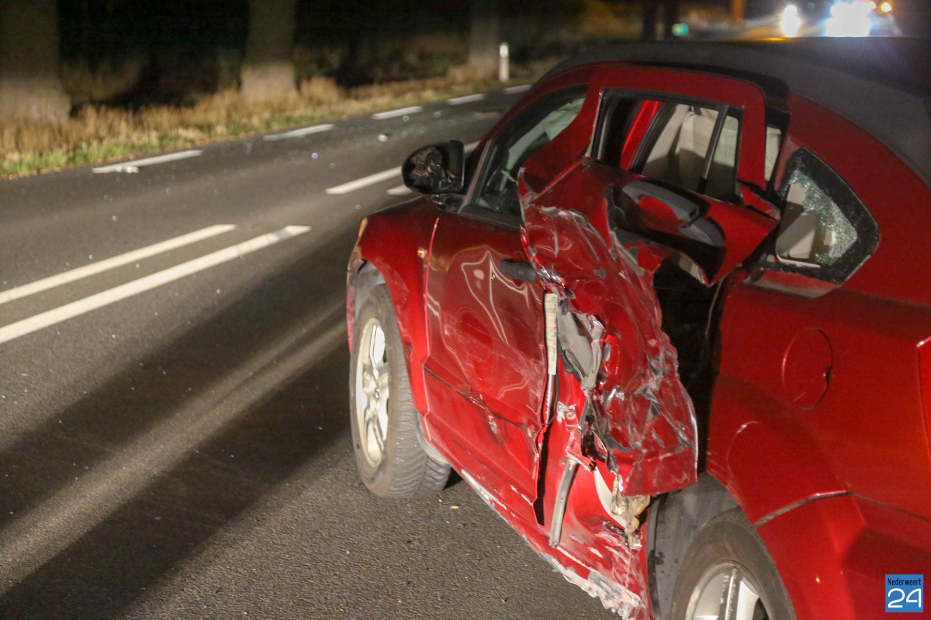 Twee personenauto’s zijn in de nacht van dinsdag op woensdag hard met elkaar in botsing gekomen op de Roermondseweg (N280) in Weert. Eén van de bestuurders, mogelijk de veroorzaker, nam de benen.