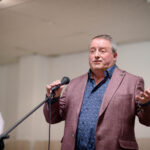 ‘Kleuren vervagen, vergeten, verward, de sleutel kwijt zijn, herinneringen die verdwijnen‘. Zomaar een aantal onderwerpen die tijdens deze expositie aan bod kwamen, in kunstvorm maar ook bij de sprekers op deze avond. Wethouder Henk Cuijpers weet ook een aantal ervaringen op te halen rondom dementie in zijn directe omgeving. “Wist je trouwens dat er in Nederland al ruim 12.000 patiënten zijn die hun 65e verjaardag moeten vieren“.