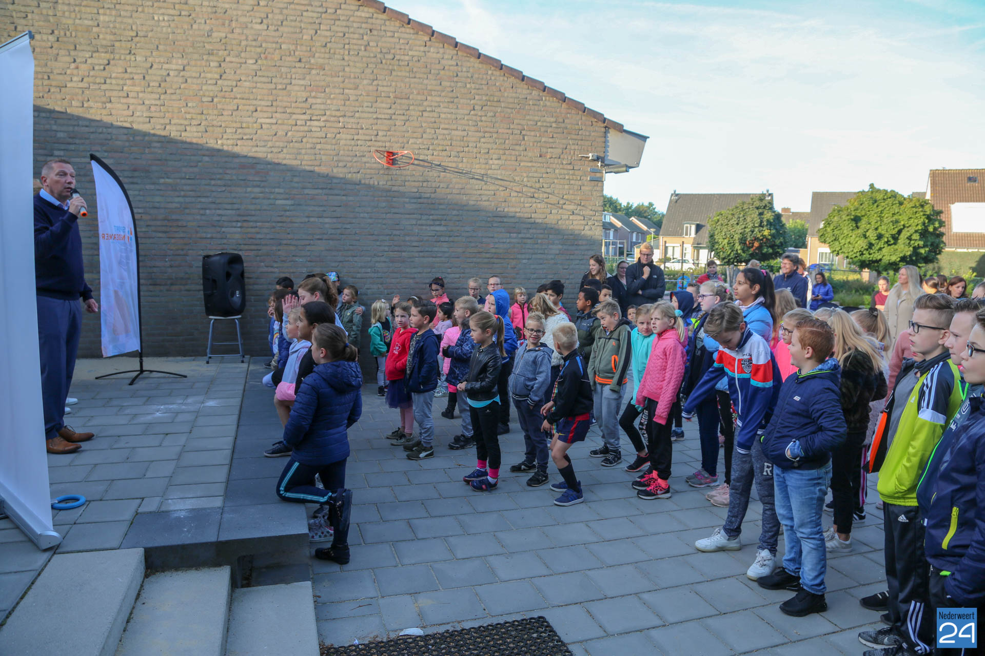 De Nationale Sportweek werd vrijdagmorgen afgetrapt met een warming up bij BS De Bongerd in Nederweert. De kinderen, juffen, burgemeester Op de Laak en wethouder Koolen deden hieraan enthousiast mee. Op www.sportnederweert.nl vind je alle activiteiten van Sport Nederweert en de verenigingen tijdens de Nationale Sportweek.