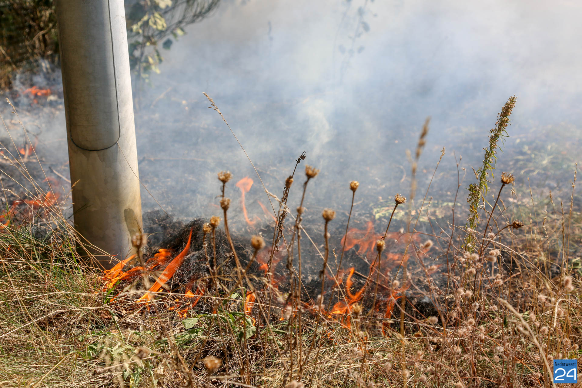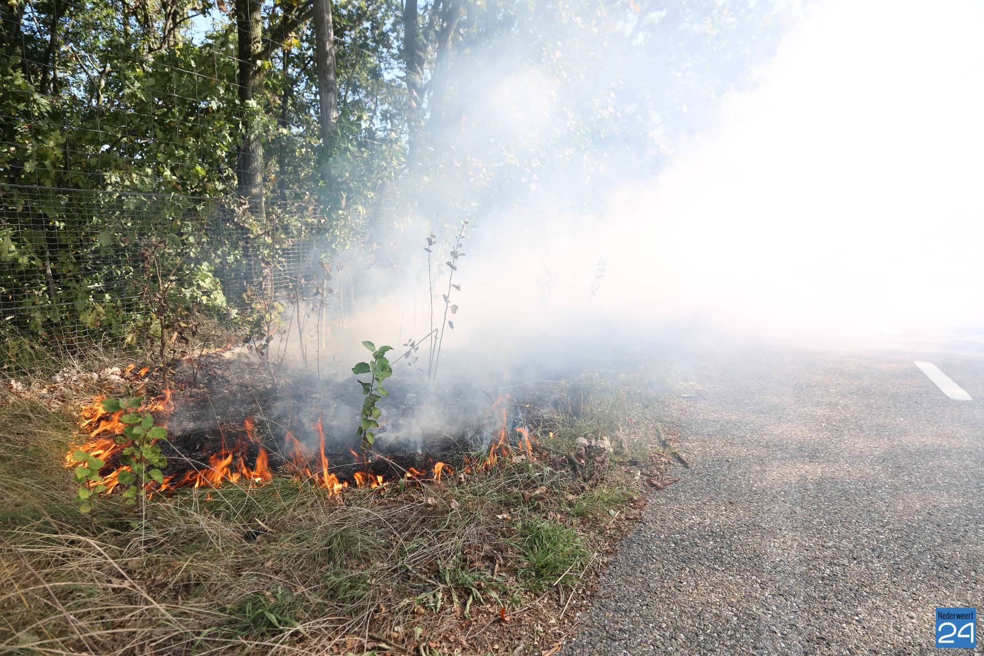 De brandweer heeft zaterdagmiddag een flinke bermbrand geblust op de kruising Doctor Anton Philipsweg met de Maarheezerhuttendijk in Weert.