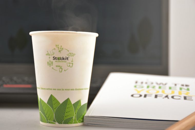 Stack-it is een koffieconcept en dus meer dan een beker alleen. Maar uiteraard wordt de beker ook gemaakt van duurzame, hernieuwbare grondstoffen. “De beker is gemaakt van bagasse. Bagasse is het restproduct van de suikerriet winning. Als de suiker geoogst is, blijft een groot gedeelte van de plant over als ‘afval’. Dit afval heeft echter dezelfde vezels als hout en is daardoor bij uitstek geschikt voor het maken van papier en karton. De beker wordt gecoat met PLA, een composteerbare laag gemaakt van maïszetmeel. Dit is nodig, want karton en vloeistoffen gaan niet goed samen. Door gebruik te maken van een biologische coating is de beker volledig composteerbaar,” aldus Gé Moonen, directeur Moonen Packaging.