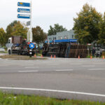 De omgevallen aanhanger vernielde de fietsverkeerslichten met als gevolg dat alle verkeerslichten op de kruising buitenwerking zijn. Een verkeersregelaar die toevallig voorbij kwam heeft zijn veiligheidsjas aan gedaan en is het verkeer aan het regelen waardoor het verkeer redelijk goed door kan rijden.