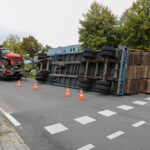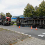 Aanhanger vrachtwagen belandt op zijkant Nederweert