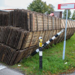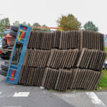 Maandagmiddag is een aanhanger van een vrachtwagen op zijn zijkant belandt op de Staterweg in Nederweert. De aanhanger was geladen met vloerplaten.