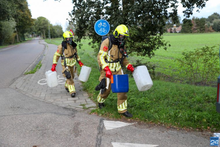 De meldkamer had een melding gekregen dat het om gedumpt afval zou gaan en dus werden zowel de brandweer als de politie gewaarschuwd. Waarschijnlijk zijn de jerrycans van een aanhanger afgewaaid. De brandweer heeft de vaatjes aan de kant gezet. De gemeente zal de vaatjes opruimen.