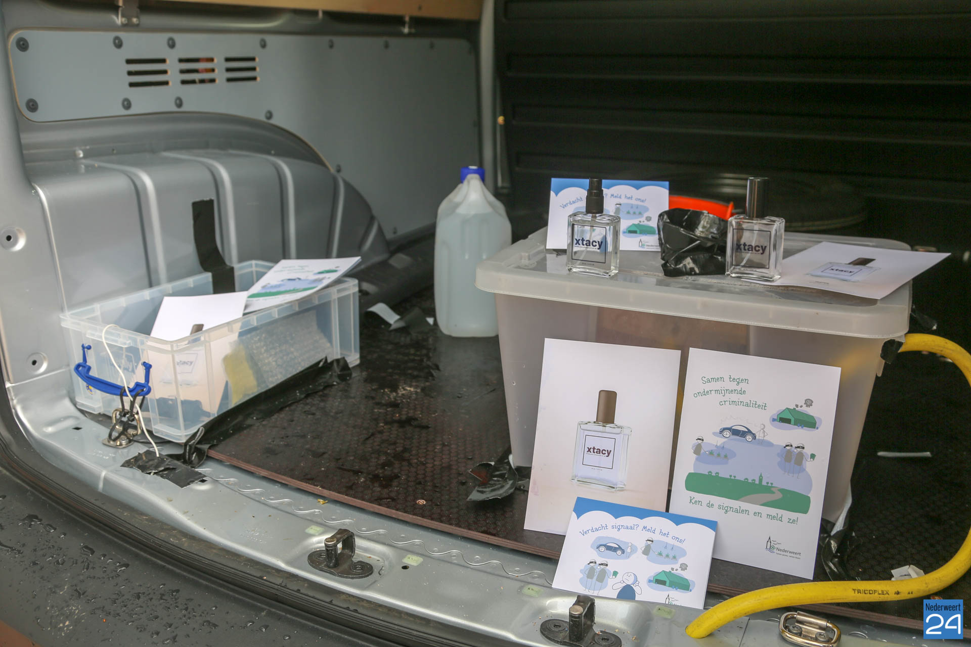 De politie plaatste het busje voor een woning in de Onze Lieve Vrouwestraat in het kader van de ‘Week van de Veiligheid‘. In het busje, met afgeplakte ramen, stond een reuksimulator die de xtc-geur verspreidt. “Als je erlangs loopt kun je de anijsgeur goed ruiken“, zegt wijkagent Dennie Joosten. “Blijkbaar koppelen mensen die geur niet aan drugs.” De politie had gehoopt dat mensen een melding zouden maken van de geur of de afgeplakte ramen. Ze roepen mensen op altijd melding te maken als ze iets verdachts zien. Ook nadat het busje aan het Raadhuisplein tijdens de weekmarkt werd geplaatst, ontving de politie geen enkele melding.