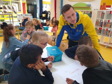 De kinderen vonden het een erg interessante en leerzame gastles en gingen uiteraard met Jeroen op de foto en ook de handtekeningen mochten niet ontbreken.