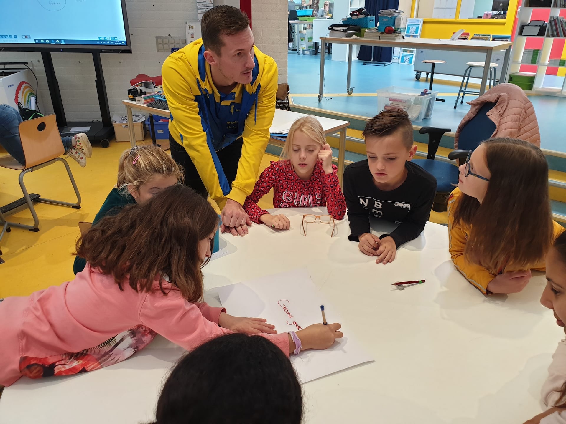 De kinderen vonden het een erg interessante en leerzame gastles en gingen uiteraard met Jeroen op de foto en ook de handtekeningen mochten niet ontbreken.