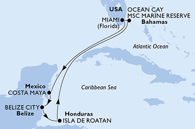 Het schip MSC Meraviglia vaart van 29 maart t/m 5 april 2020 door het Caribisch gebied met vertrek vanuit Miami. Deze reis, uitgevoerd door MSC Cruises, wordt begeleid door een medewerkster vanuit Reisburo Mackus Nederweert. Voorafgaand aan de cruise verblijven ze 2 nachten in Miami waarna ze aan boord gaan van het prachtige schip MSC Meraviglia voor een route langs o.a. Mexico, Belize & Honduras.