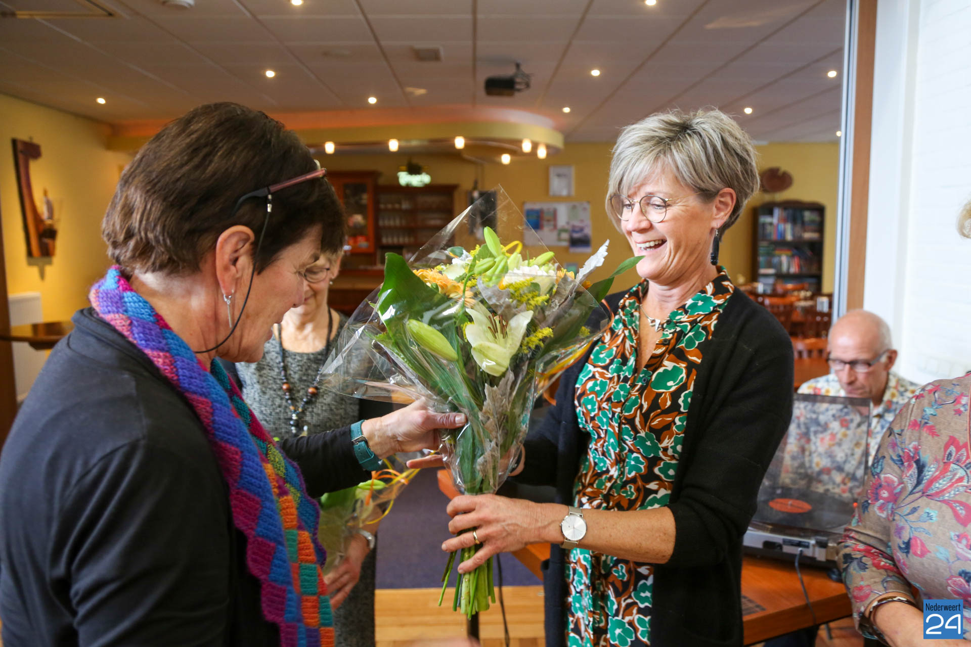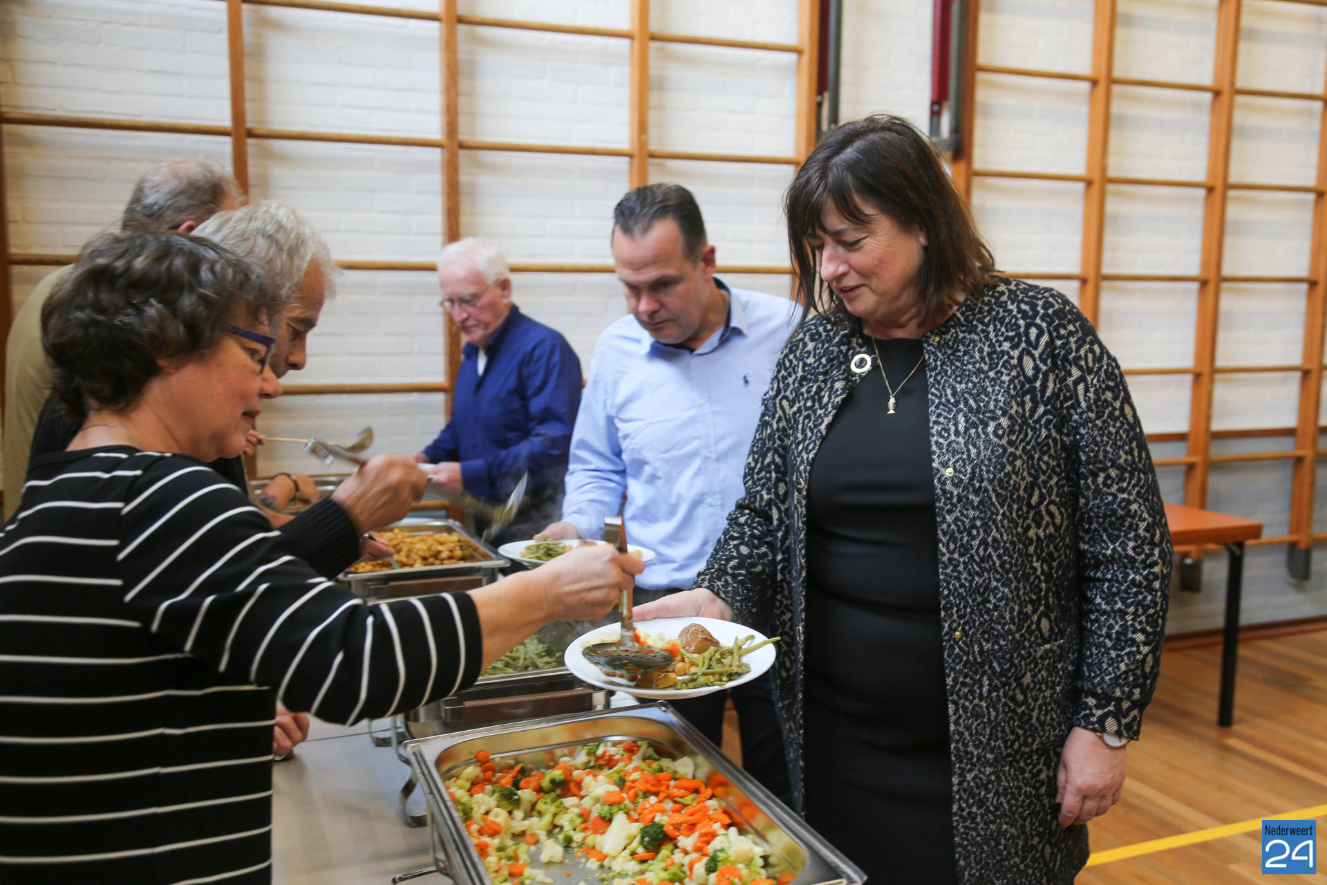 Burgemeester Birgit Op de Laak mocht samen met de regisseurs leefbaarheid vanuit de gemeente Nederweert aanschuiven in gemeenschapshuis Pestoeërskoel. Uit handen van de burgemeester kregen de vrijwilligers een doosje chocolade ter waardering van het werk wat zij verrichten. Ook was er een delegatie vanuit Stichting Gemeenschapsraad Leveroy aanwezig. Tijdens het dessert werden de aanwezige vrijwilligers naar voren geroepen. Zij kregen daar een woord van dank en mochten een bloemetje in ontvangst nemen. In totaal zetten zich 14 vrijwilligers in voor de Open Eettafel Leveroy.