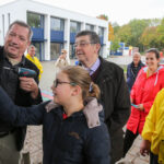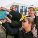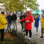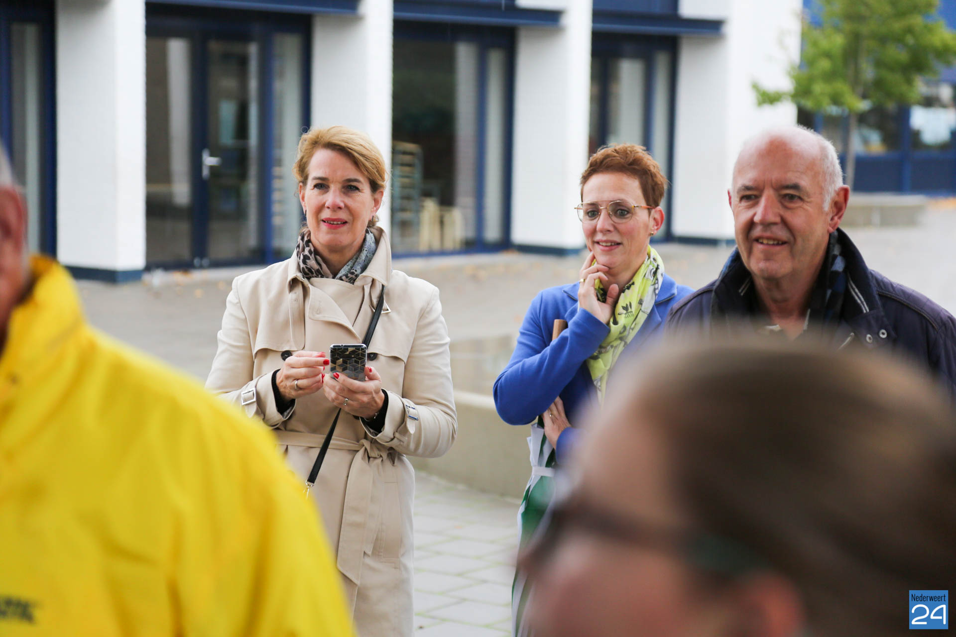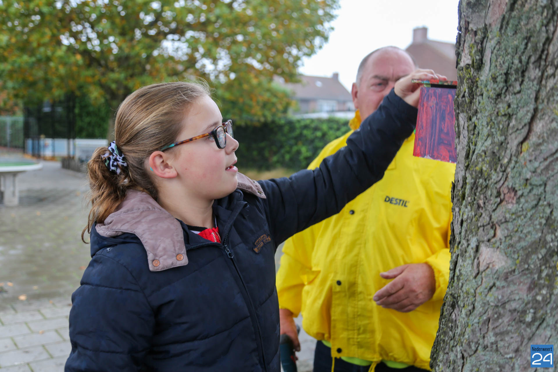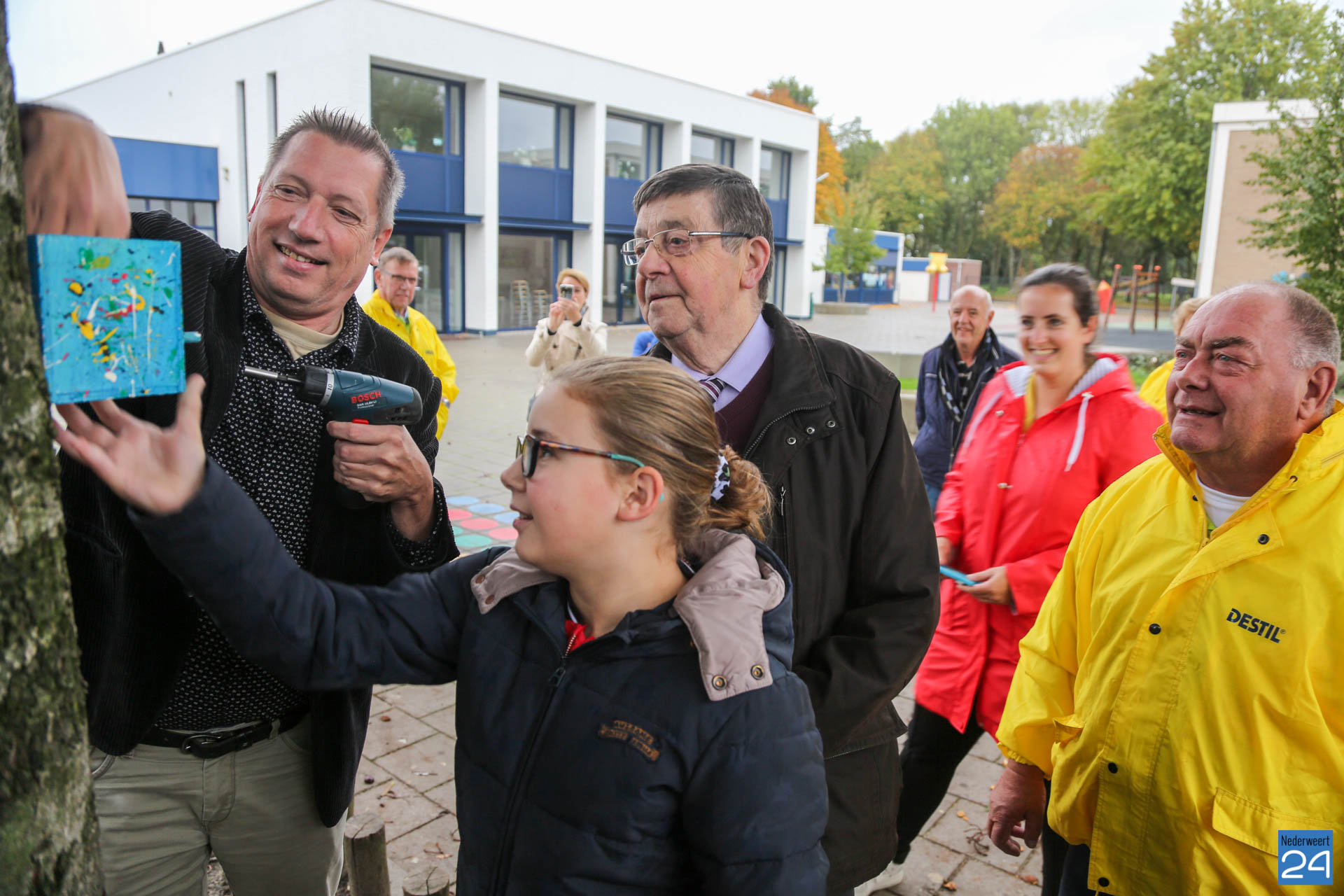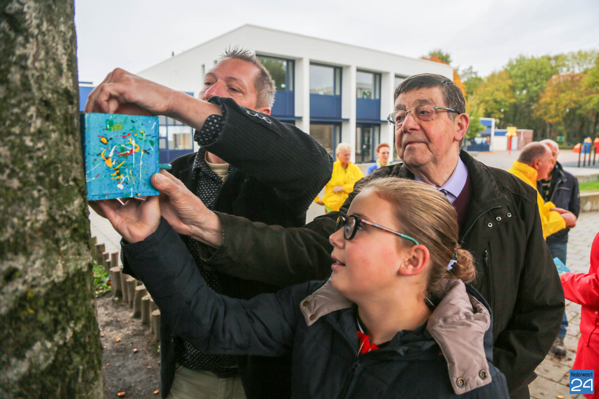 Om het eerste nestkastje op te hangen waren aanwezig Pastoor Koumans, wethouder Koolen, leden van de vogelwerkgroep en KVW Nederweert en mevr. Ans Hermans van de Schrank. Het door Diede Keulen gepimpte nestkastje werd als eerste opgehangen. Ondanks dat wethouder Koolen aangaf drie linkerhanden te hebben is het hem toch gelukt, om samen met Past. Koumans en Diede, het nestkastje op te hangen.