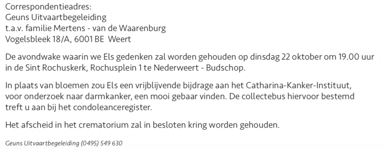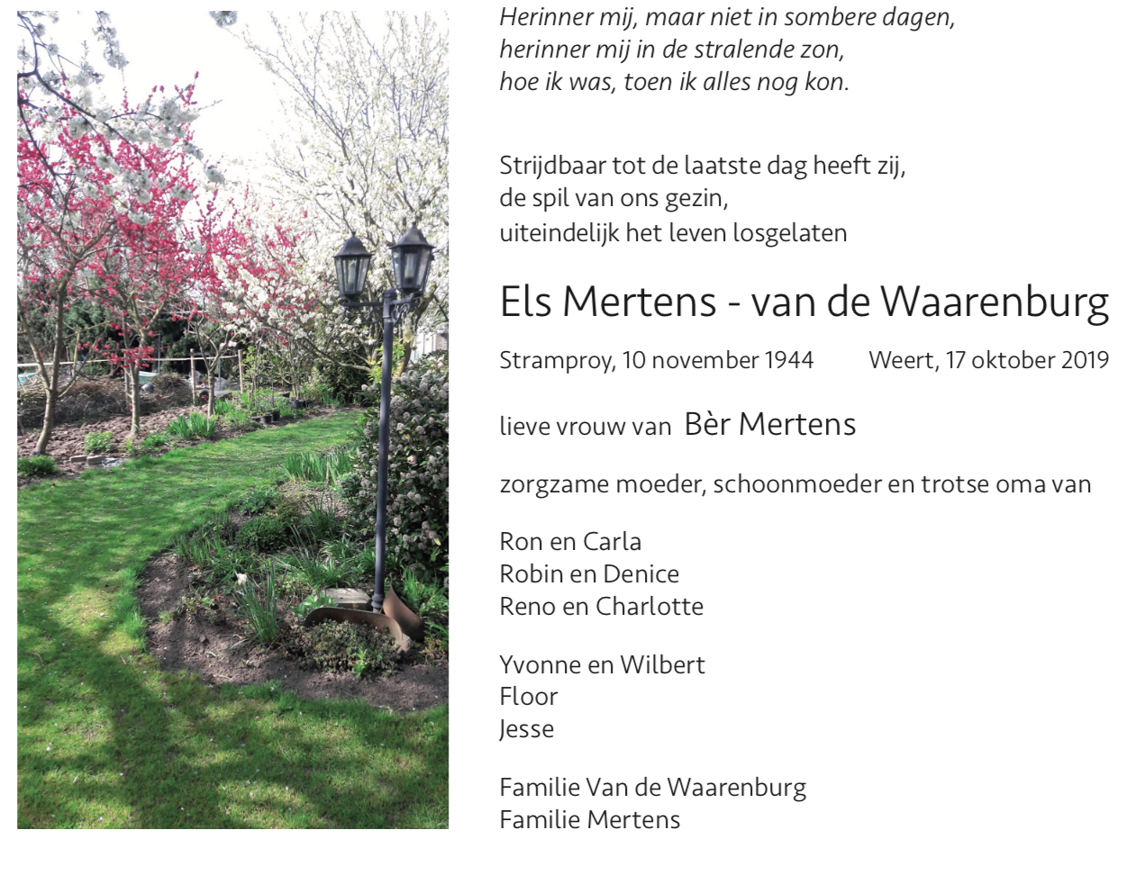 Overlijdensbericht: Els Mertens – van de Waarenburg