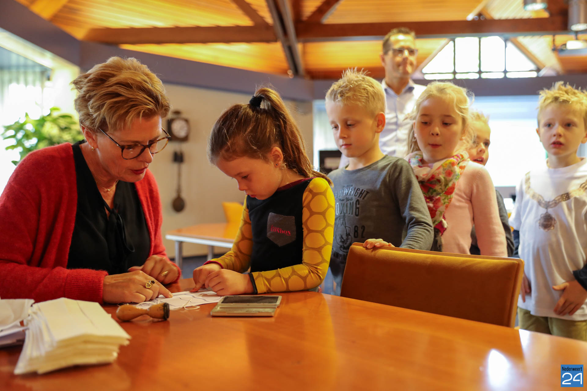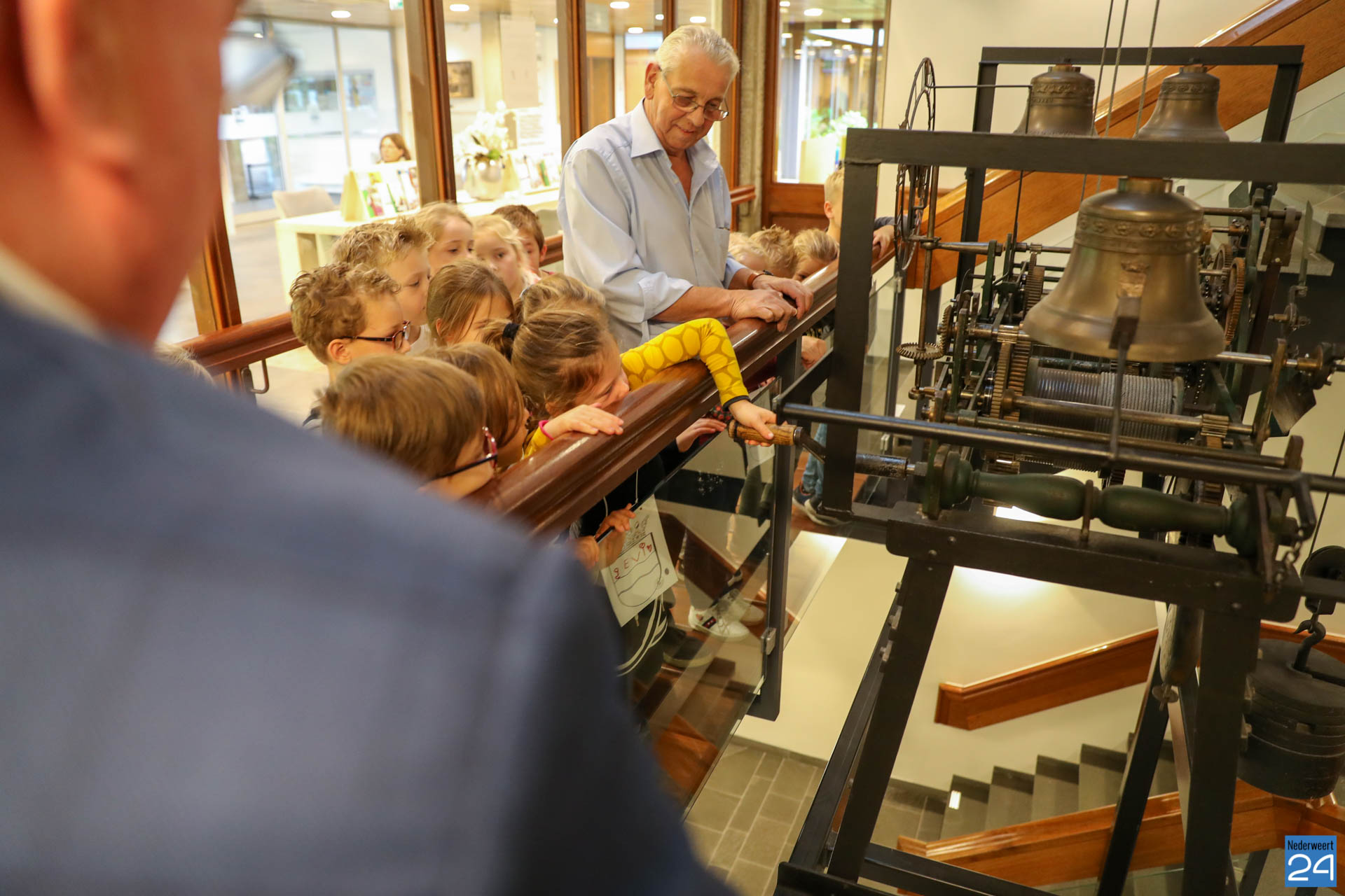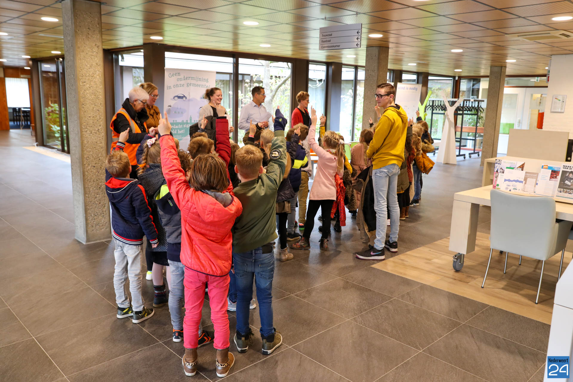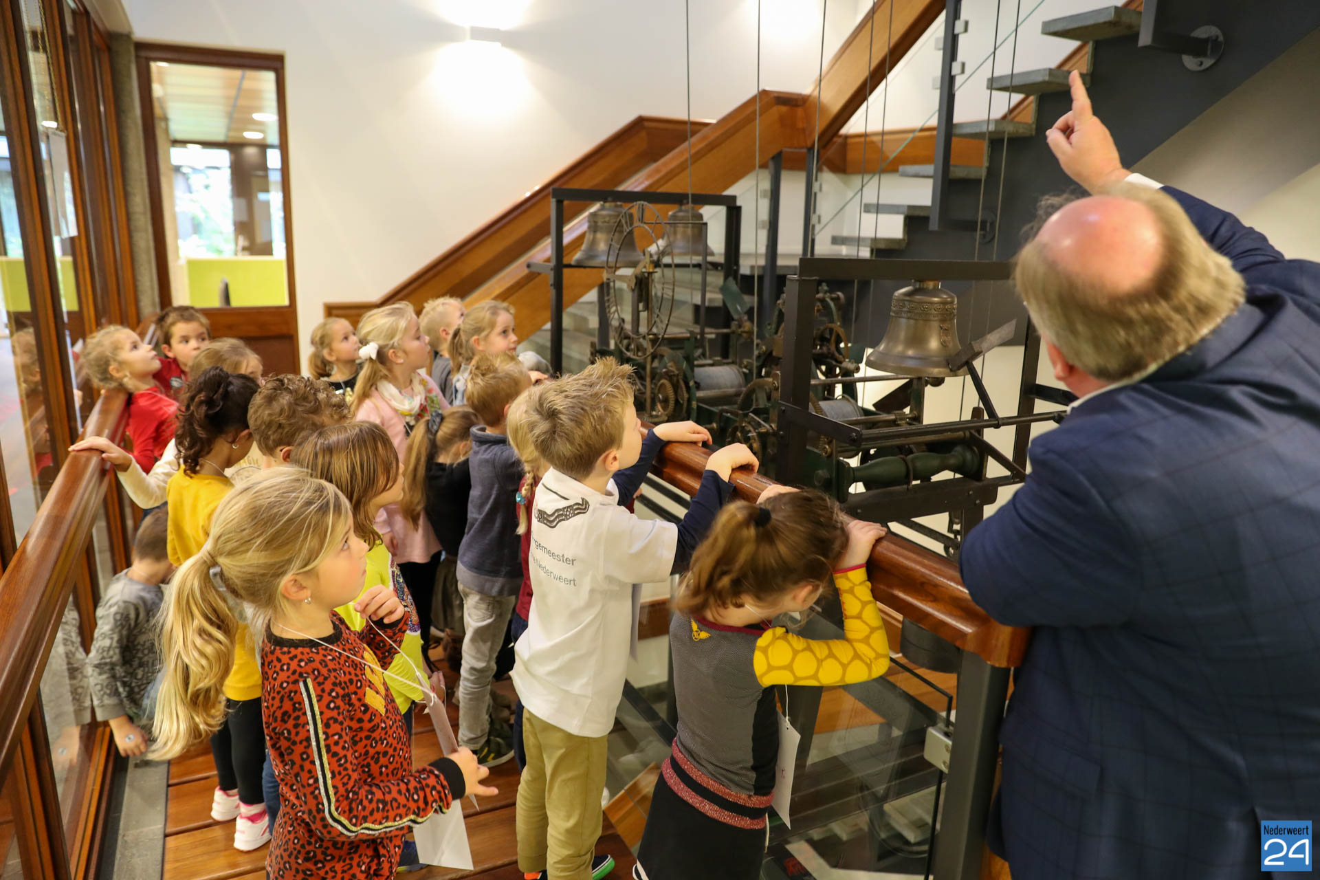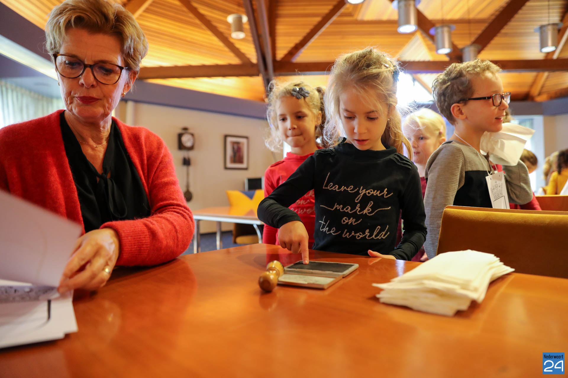 Na een ontvangst en welkomstwoord van burgemeester Birgit Op de Laak kregen de leerlingen een ‘tijdelijk gemeentehuis paspoort‘ met een echte vingerafdruk. Daarna startte de verkenningstocht door het gemeentehuis. Ze kregen een kijkje in de raadszaal van het gemeentehuis. Hier werd uitleg gegeven over paspoorten en identiteitskaarten. Daarna kregen ze een uitleg over de klok in het gemeentehuis en mochten de kinderen zelf de klok opdraaien. Een van de klokken heeft de tekst “Eendrachtig de tijd verstaan zal welvaart en welzijn doen samengaan“. Deze tekst komt van oud-gemeentesecretaris Biezenaar.
