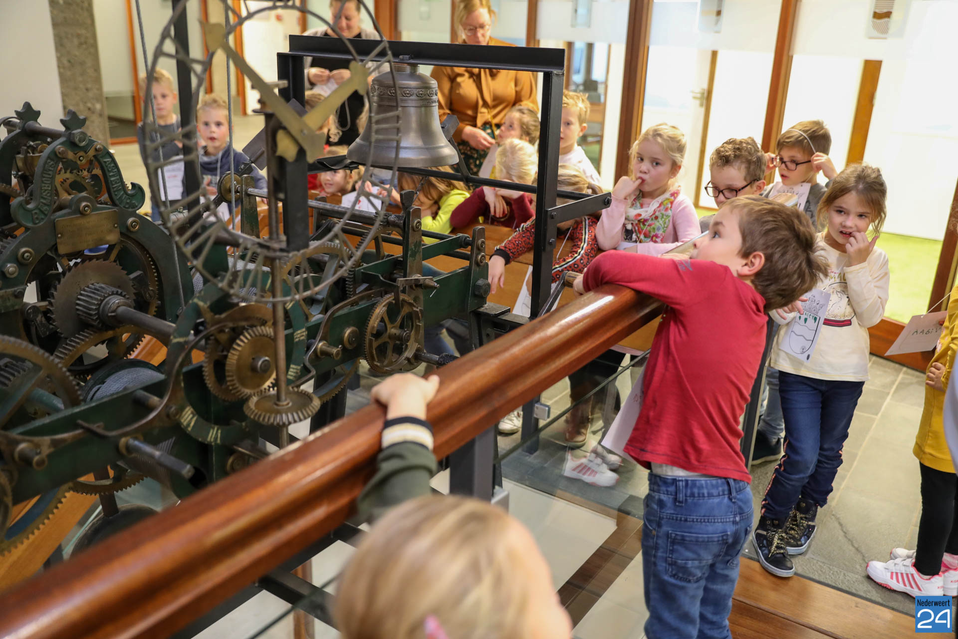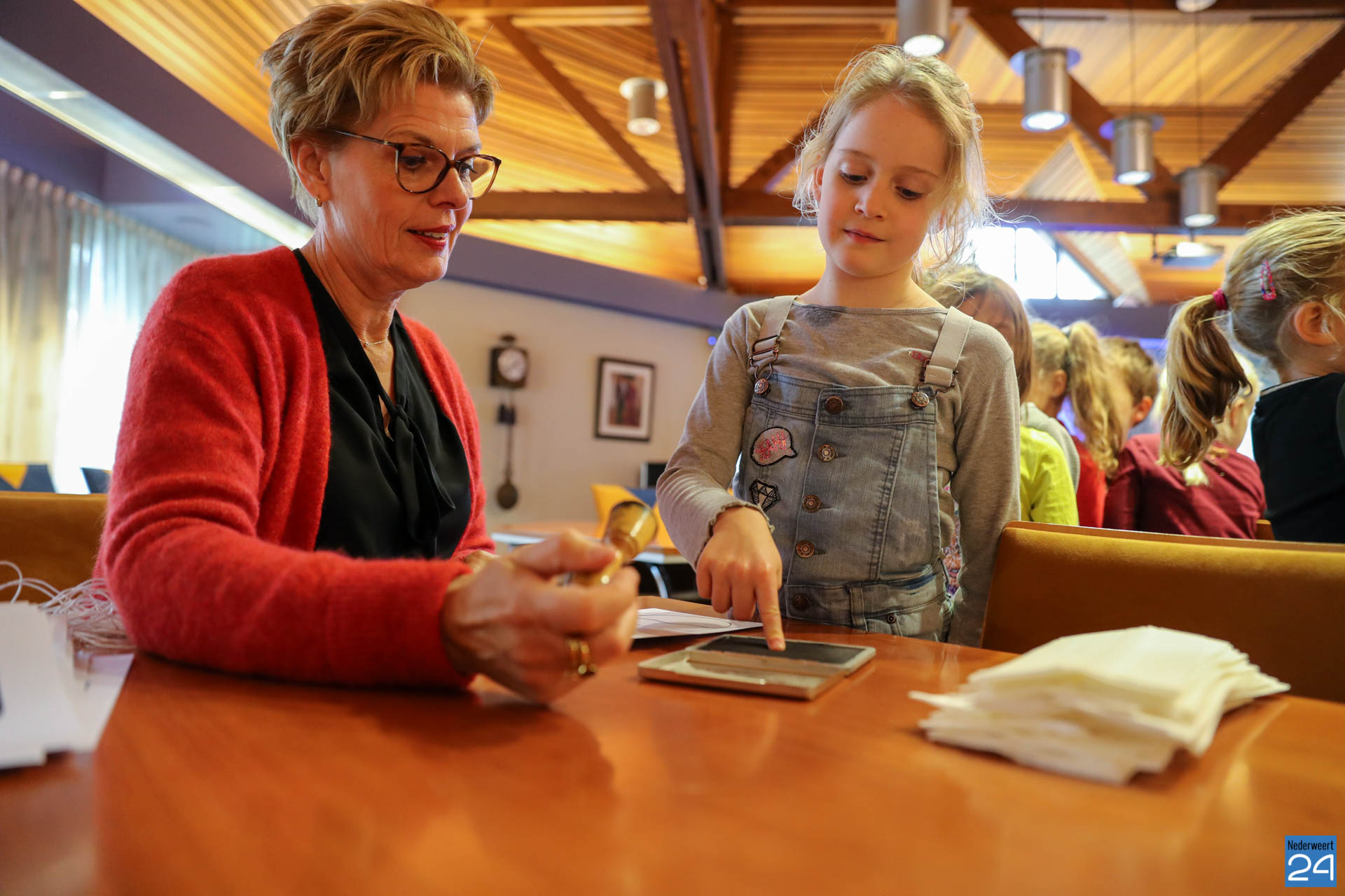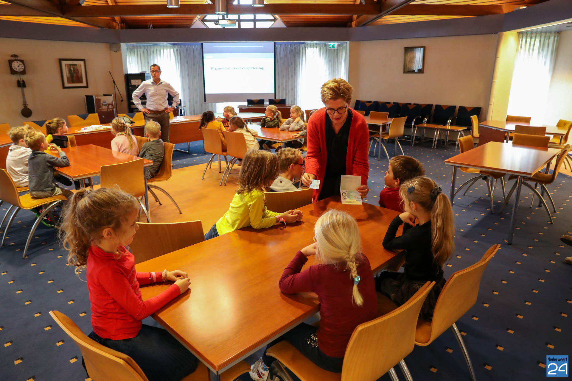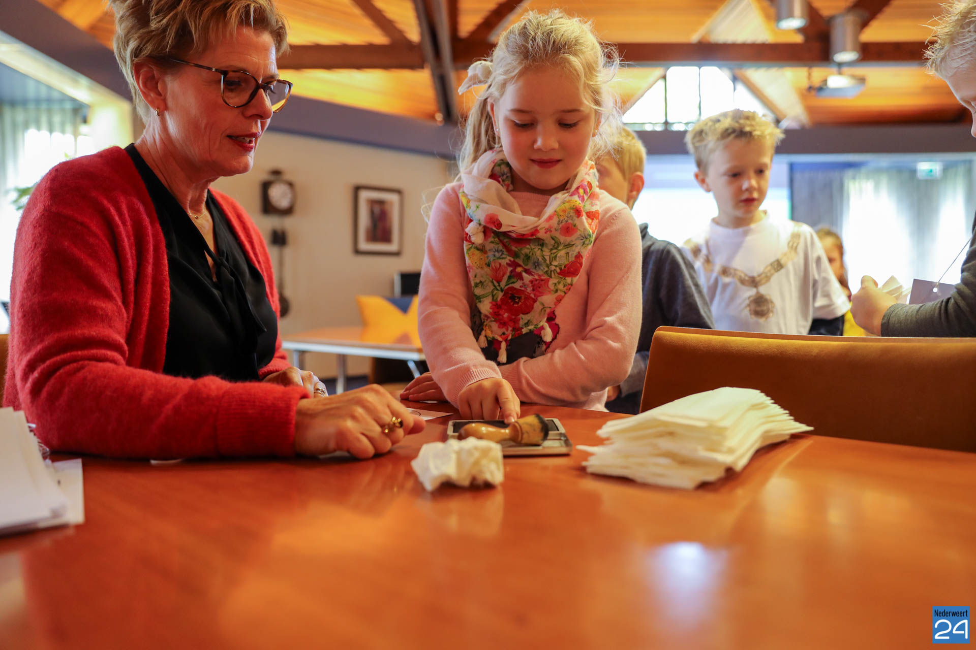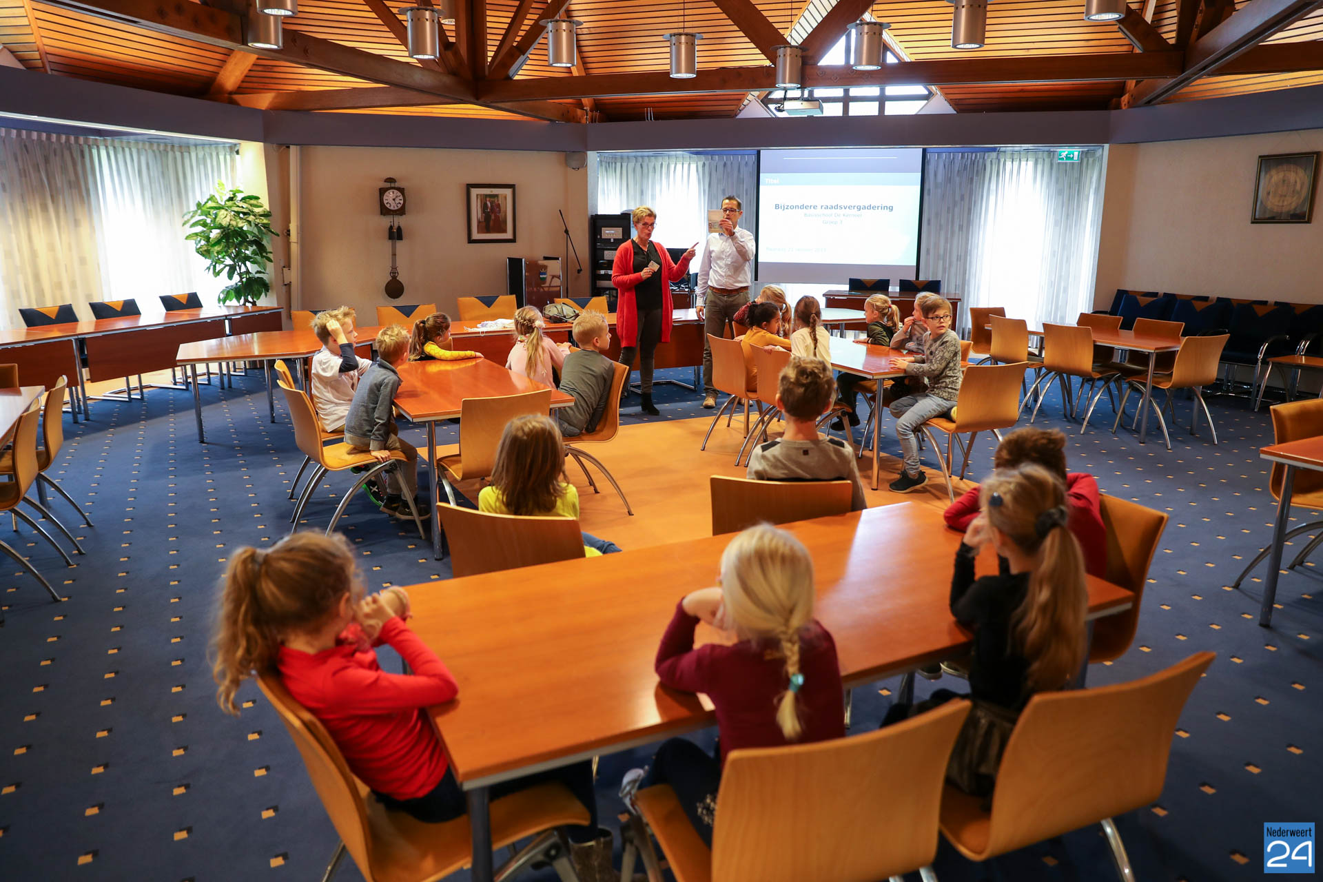 Na een ontvangst en welkomstwoord van burgemeester Birgit Op de Laak kregen de leerlingen een ‘tijdelijk gemeentehuis paspoort‘ met een echte vingerafdruk. Daarna startte de verkenningstocht door het gemeentehuis. Ze kregen een kijkje in de raadszaal van het gemeentehuis. Hier werd uitleg gegeven over paspoorten en identiteitskaarten. Daarna kregen ze een uitleg over de klok in het gemeentehuis en mochten de kinderen zelf de klok opdraaien. Een van de klokken heeft de tekst “Eendrachtig de tijd verstaan zal welvaart en welzijn doen samengaan“. Deze tekst komt van oud-gemeentesecretaris Biezenaar.